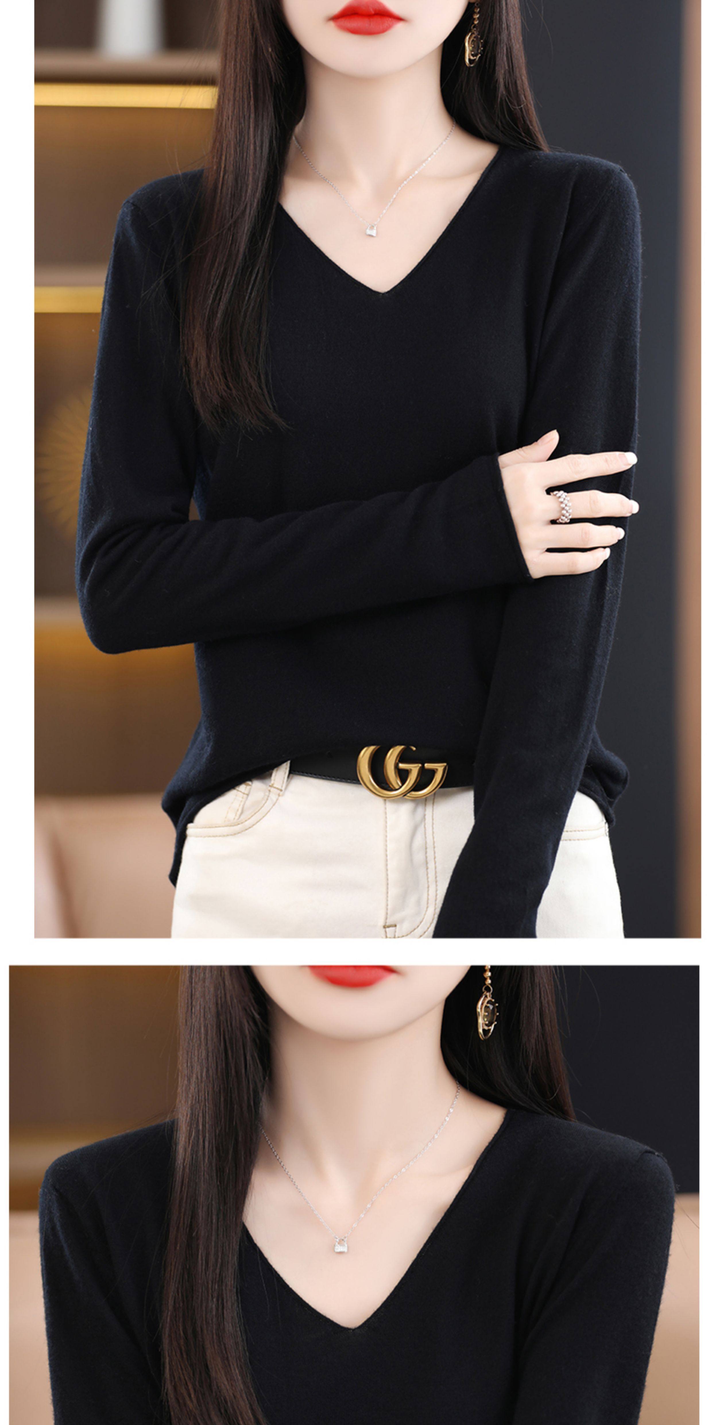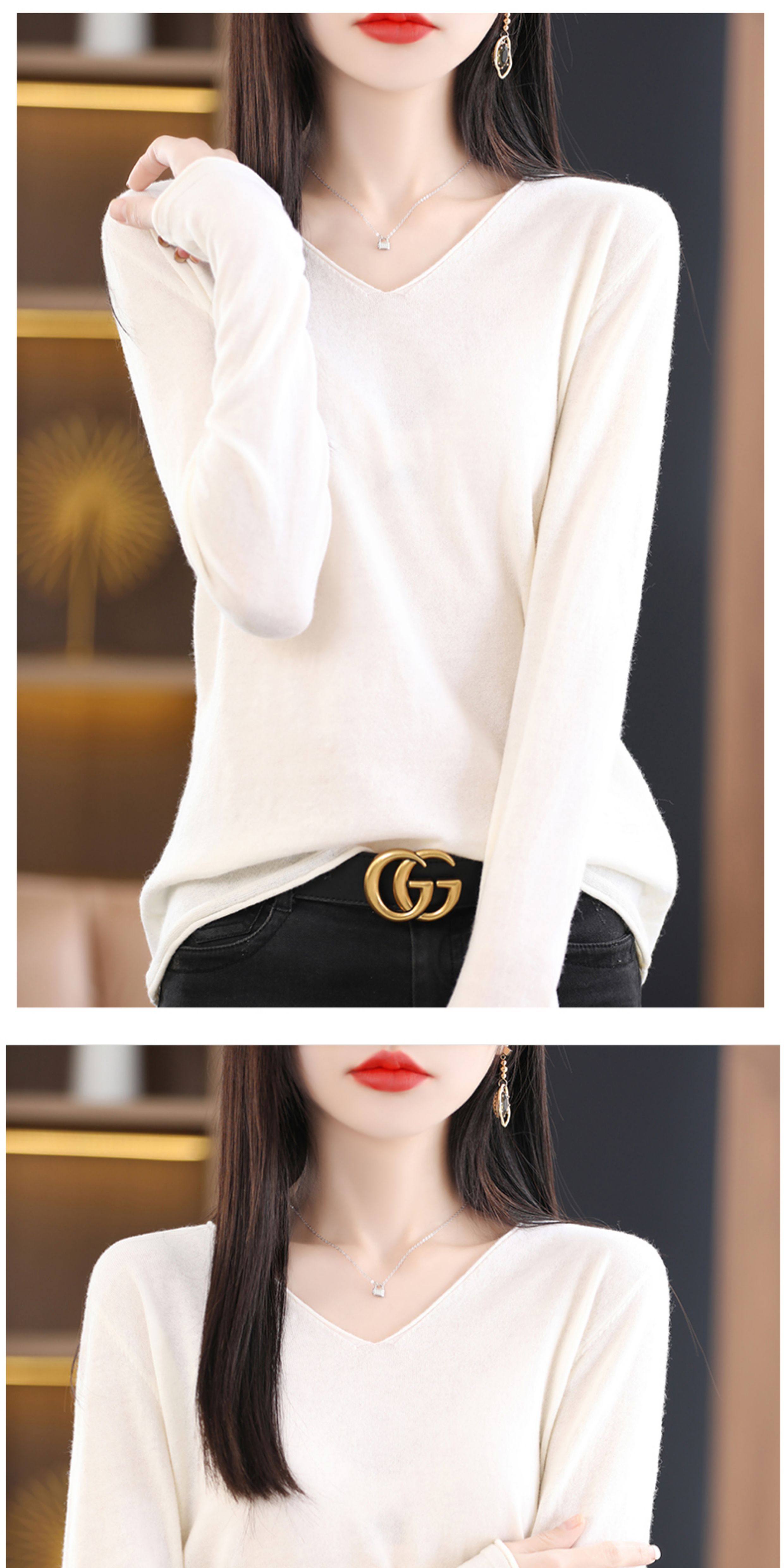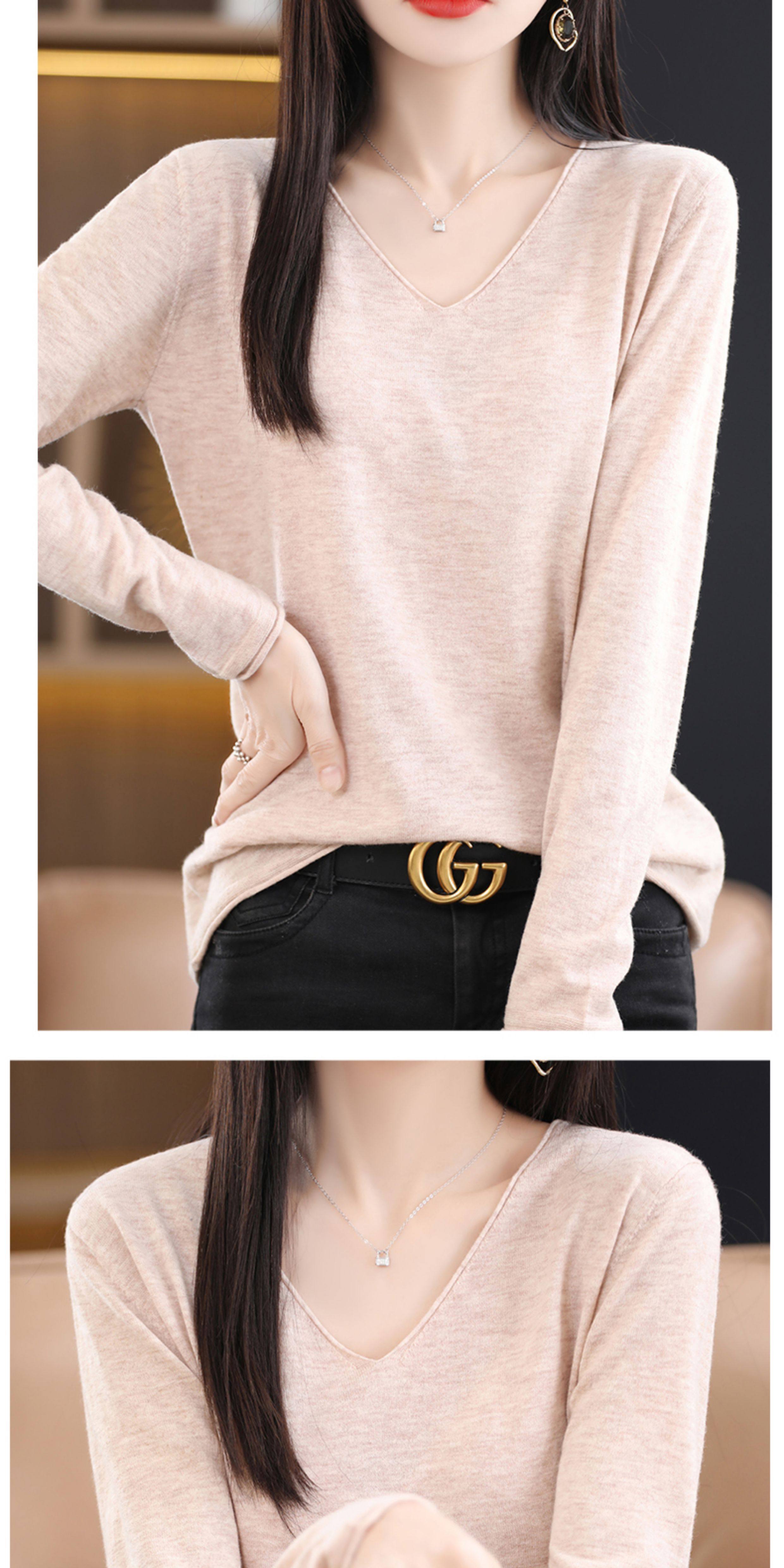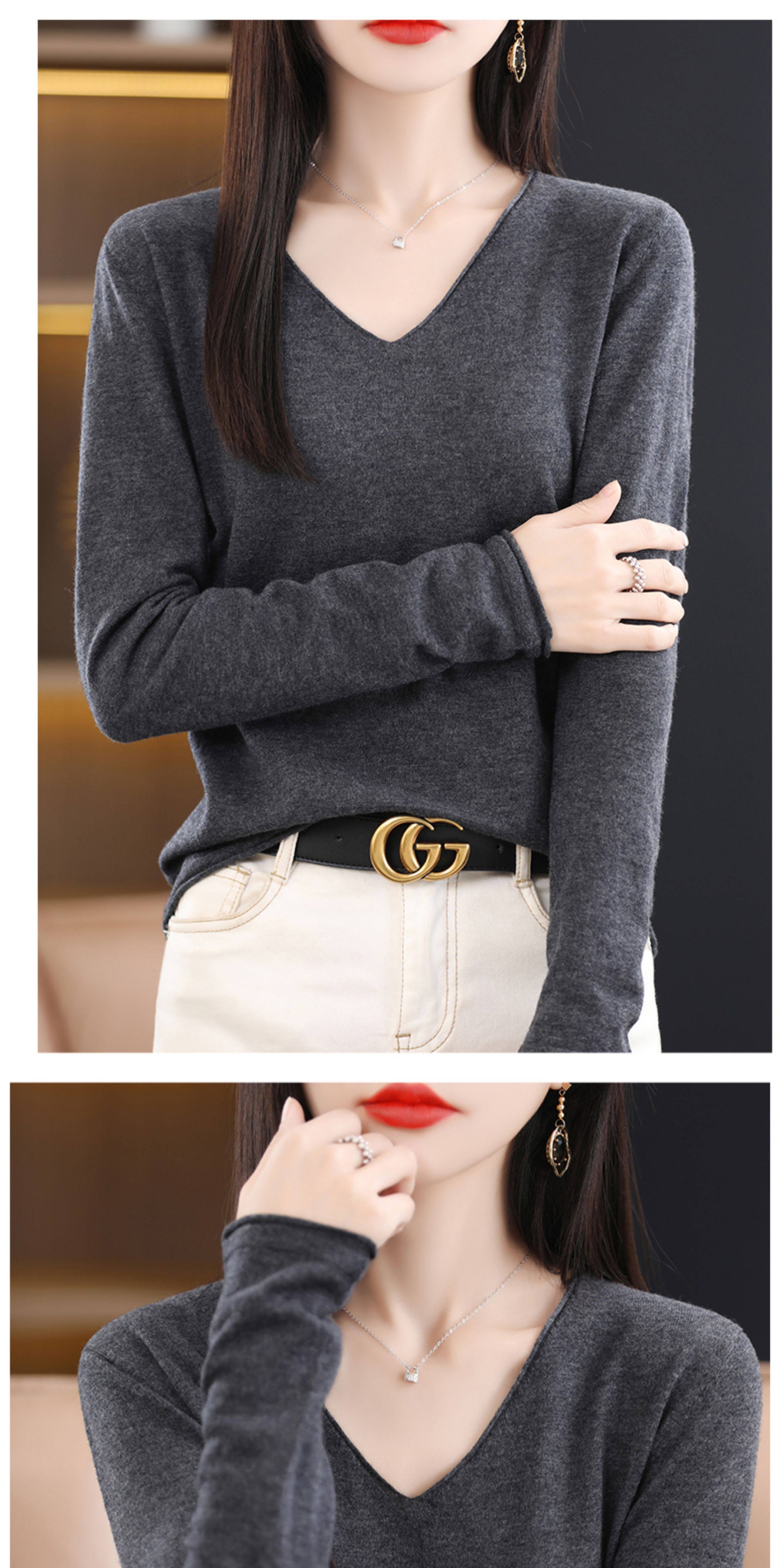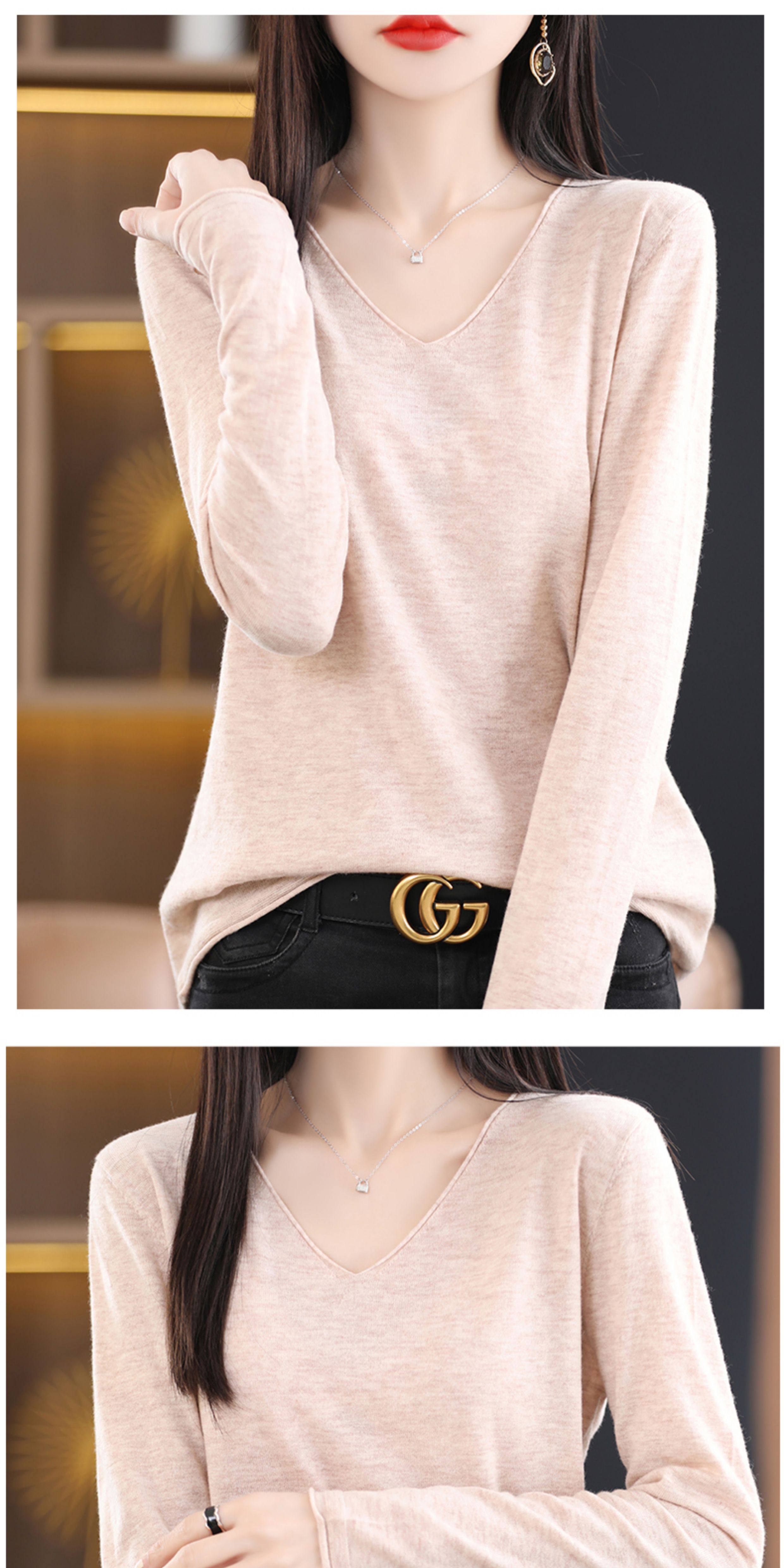 羊絨v領打底衫女內搭毛衣春秋羊毛薄款2026新款長袖針織寬鬆上衣