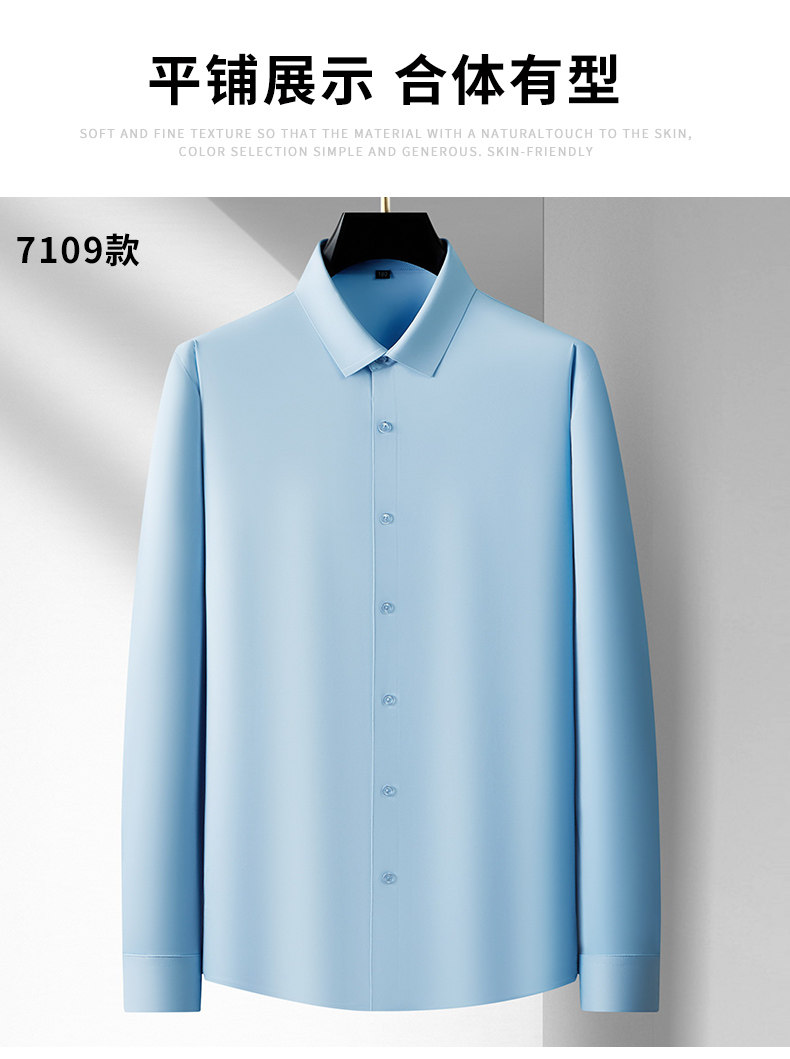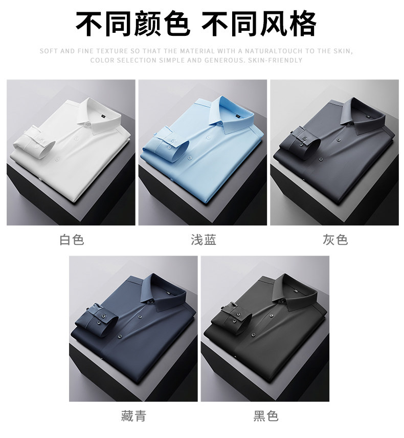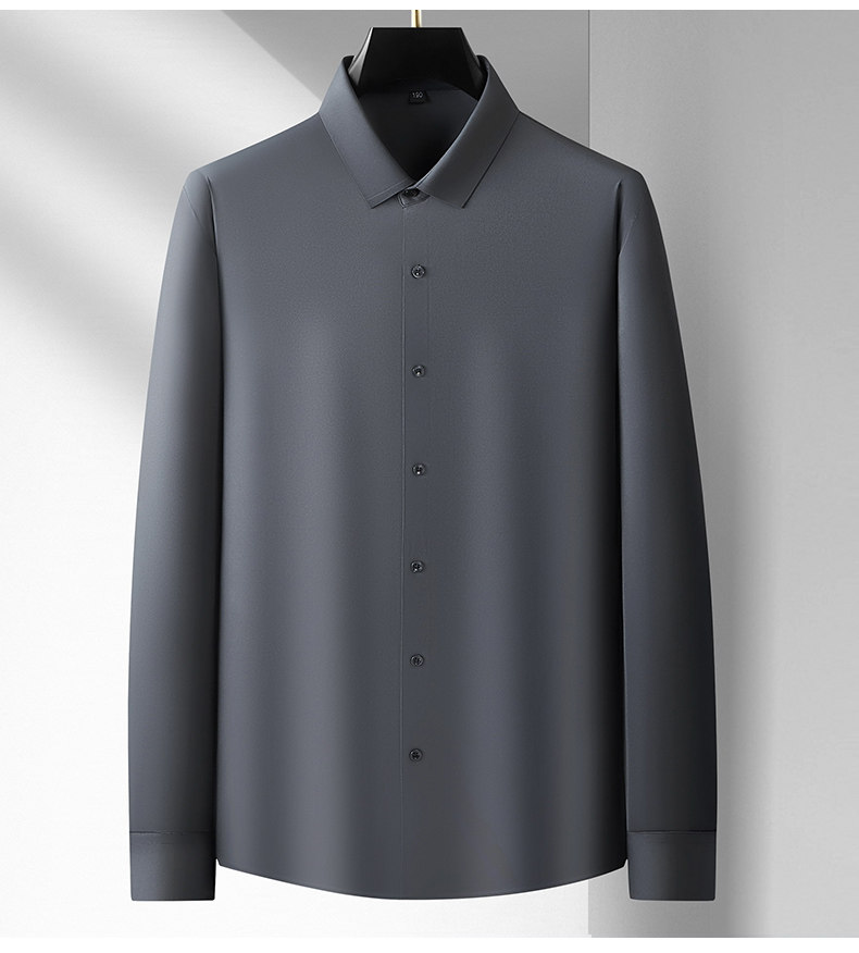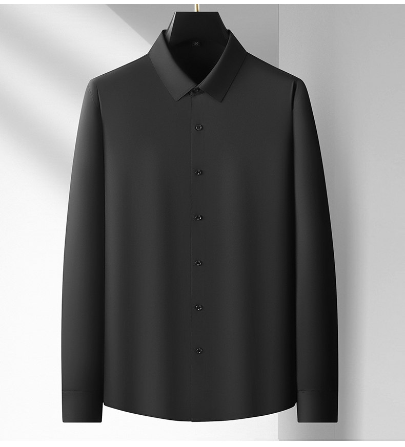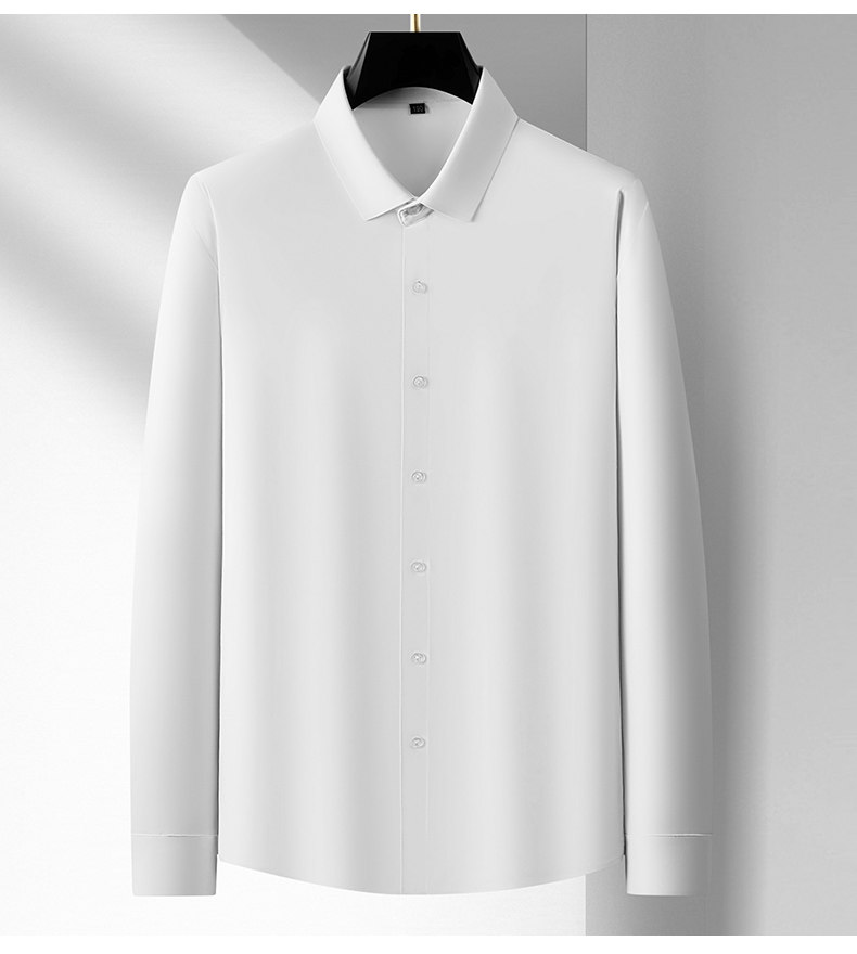 加肥大碼襯衫男純色春季商務裝公務員肥佬寬鬆高彈長袖襯衣打底衫
