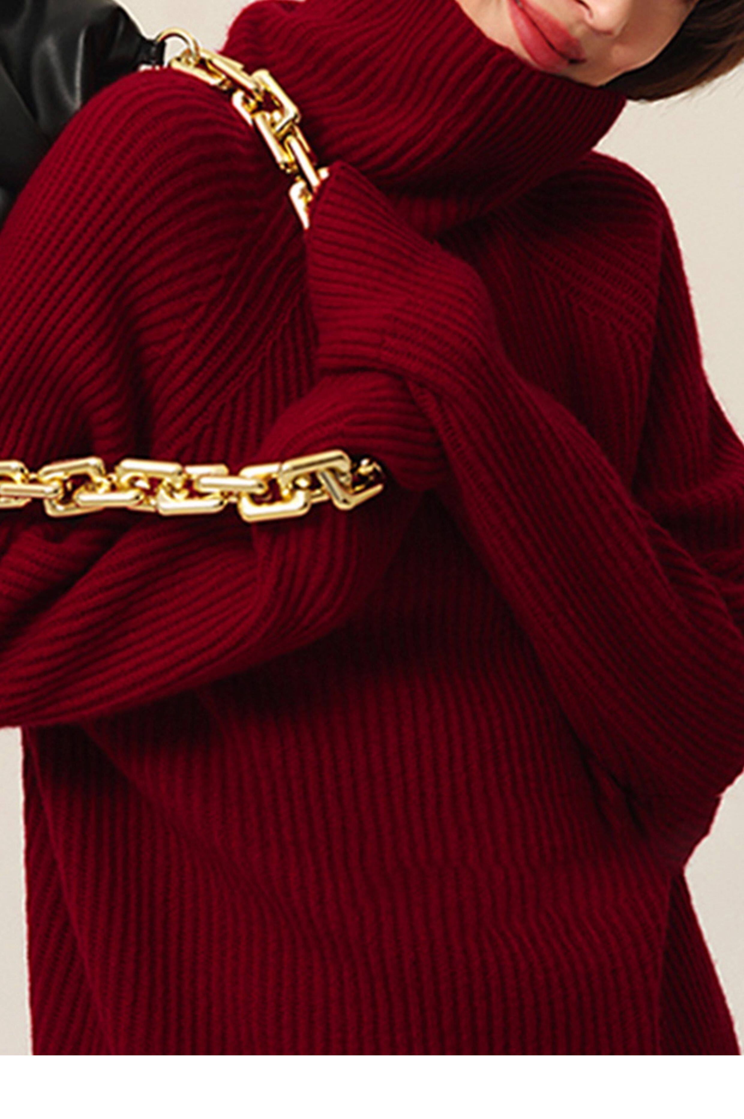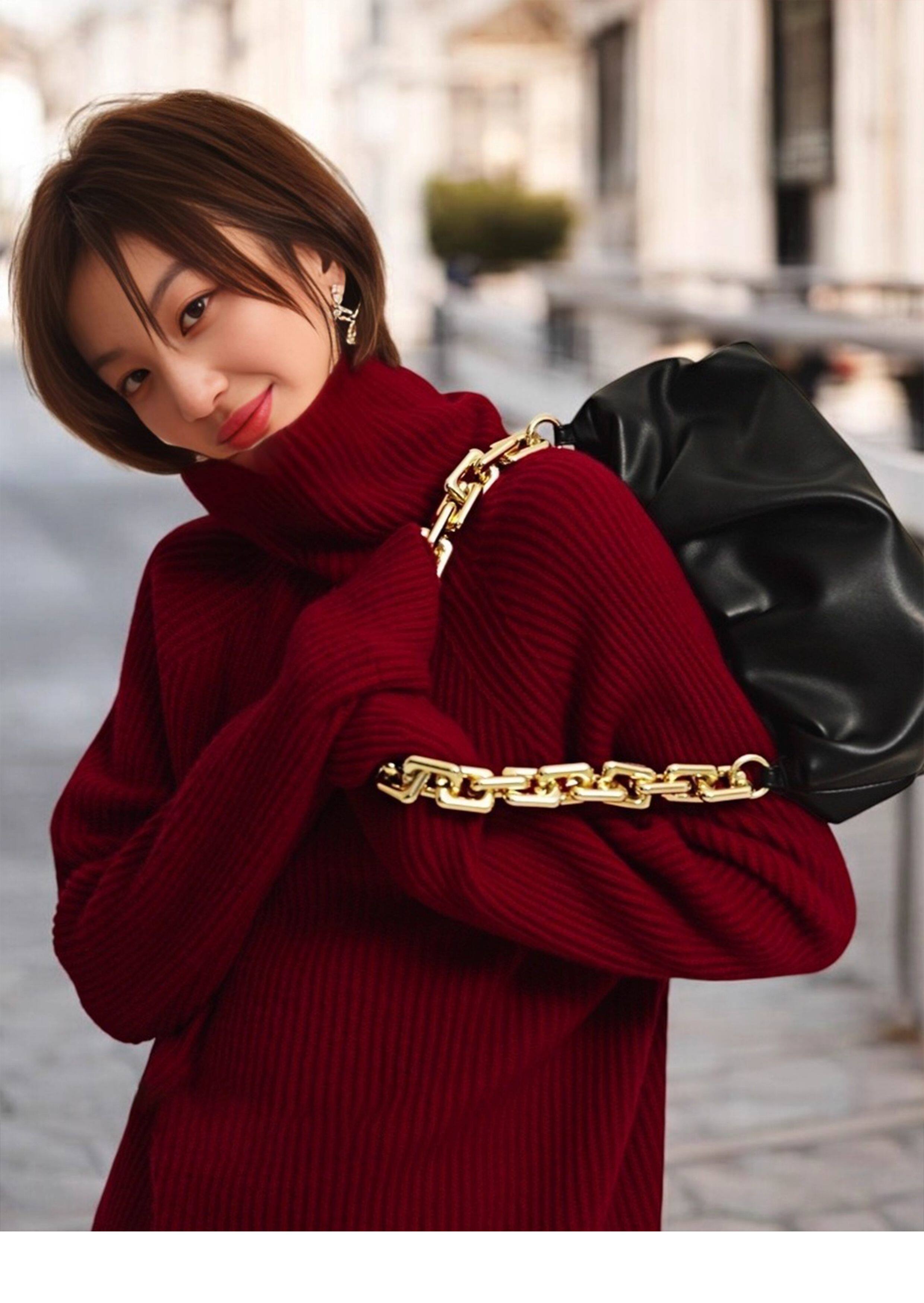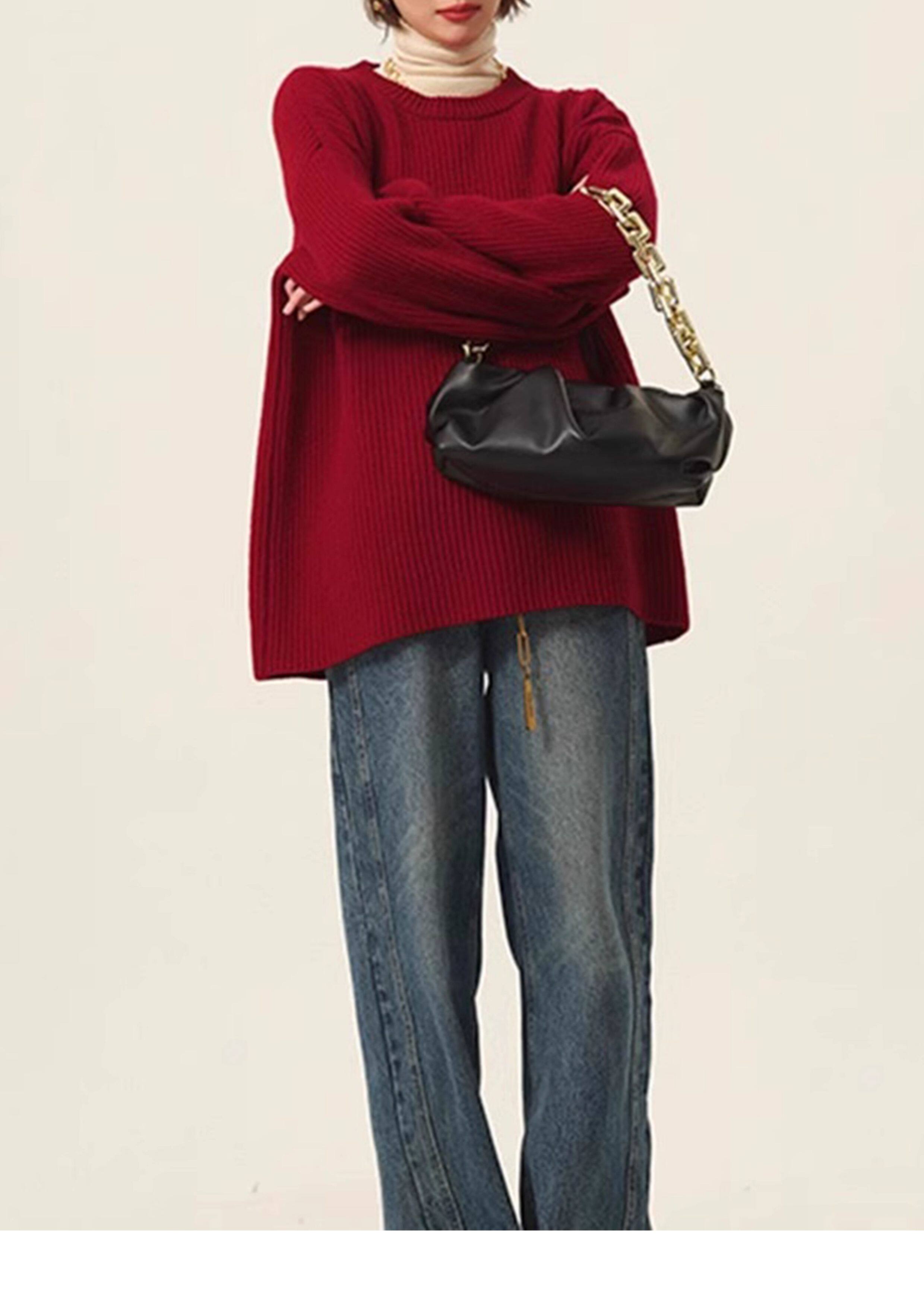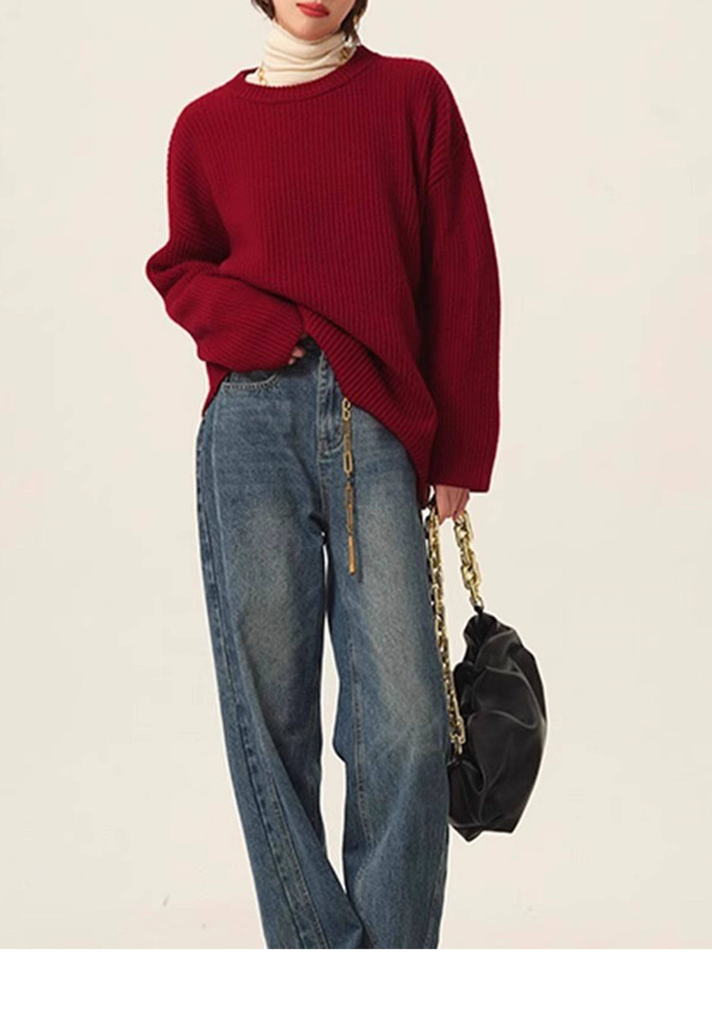 Basic House/百家好新年紅加厚軟糯毛衣女2026春季圓領針織打底衫