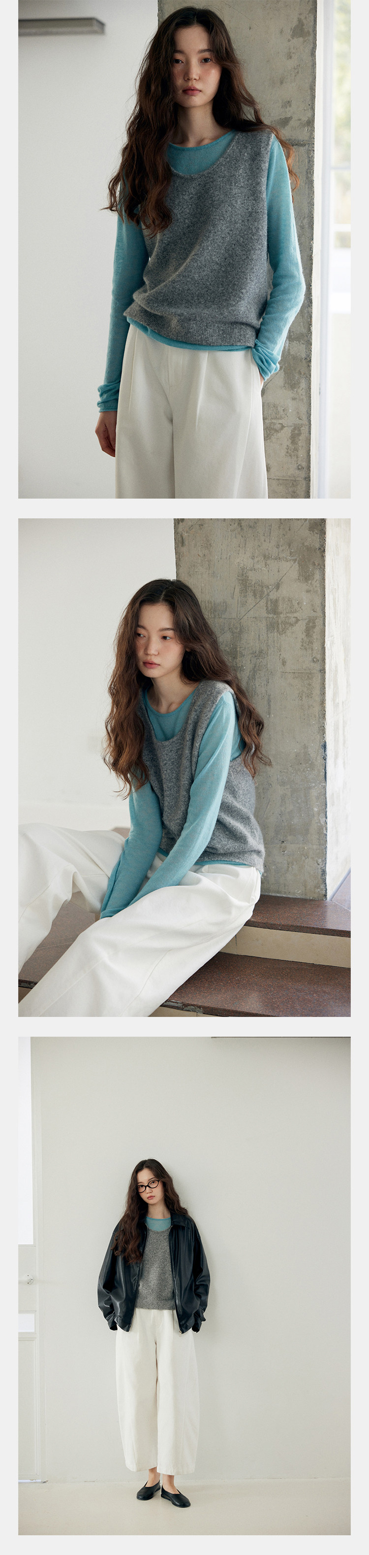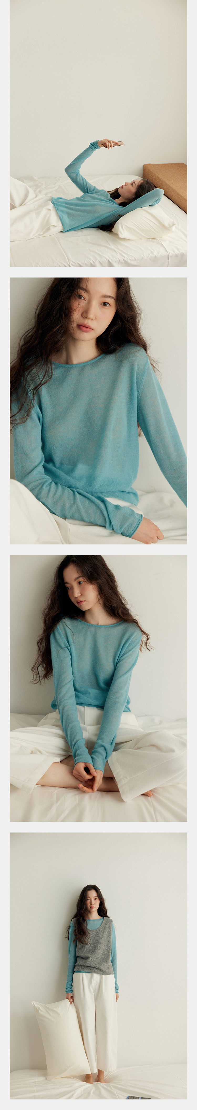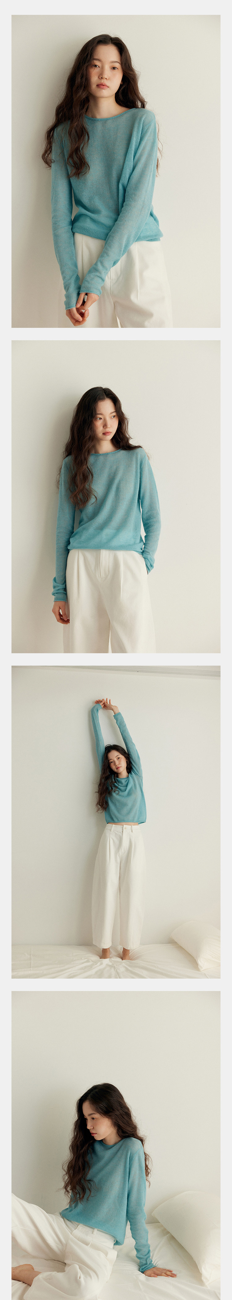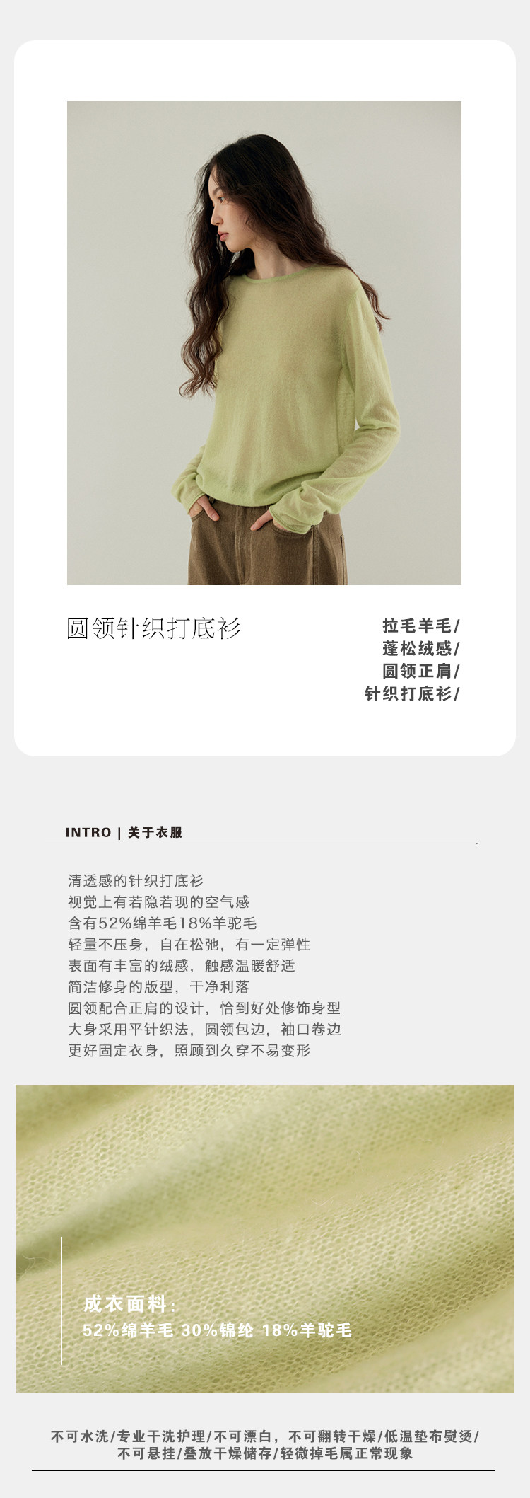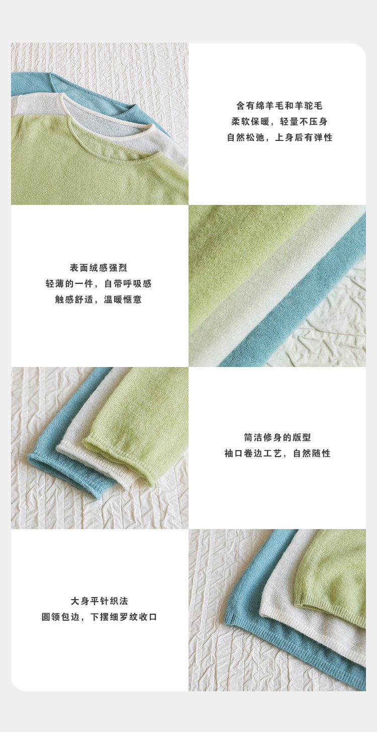 唸白 春夏清透拉毛羊毛蓬松絨感圓領正肩針織打底衫 NW5100
