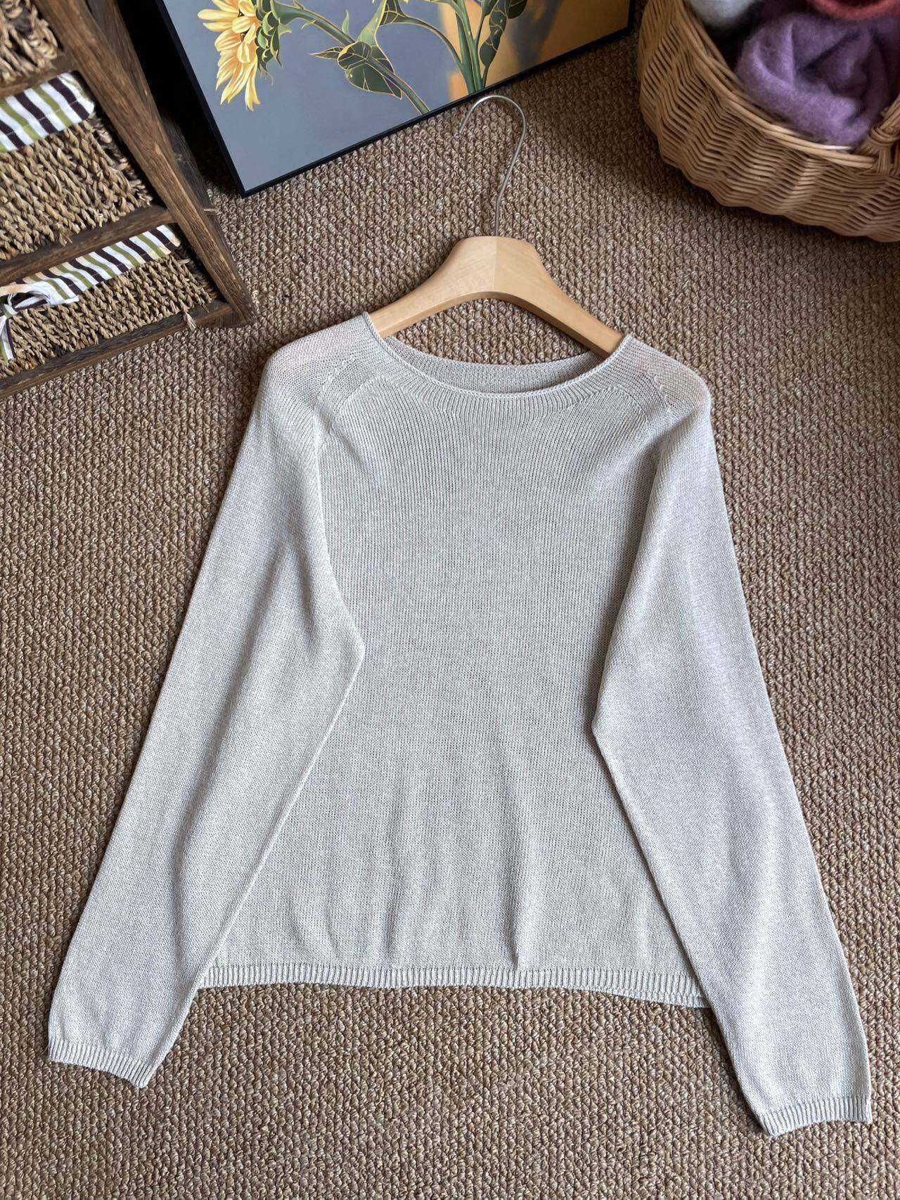 島國jin口和紙紗混紡圓領V領針織衫薄寬鬆顯瘦防曬罩衫套頭打底衫