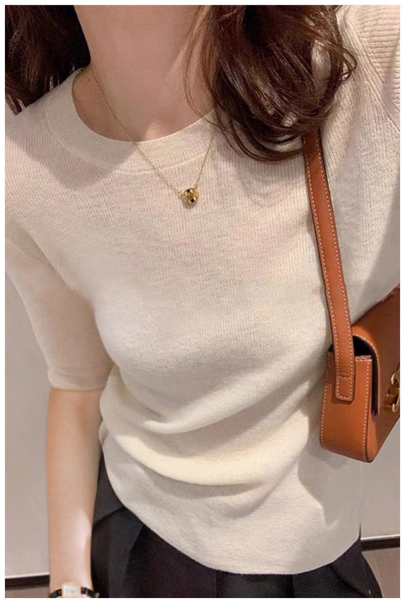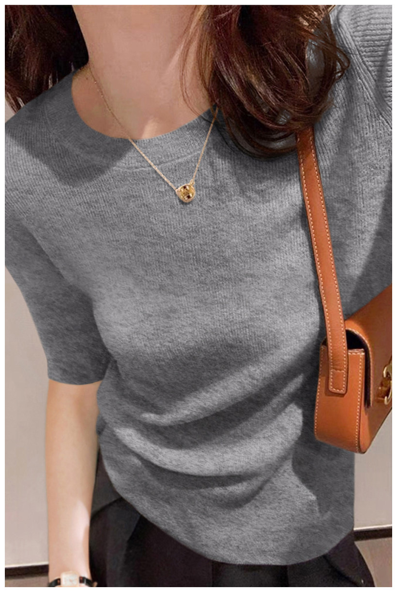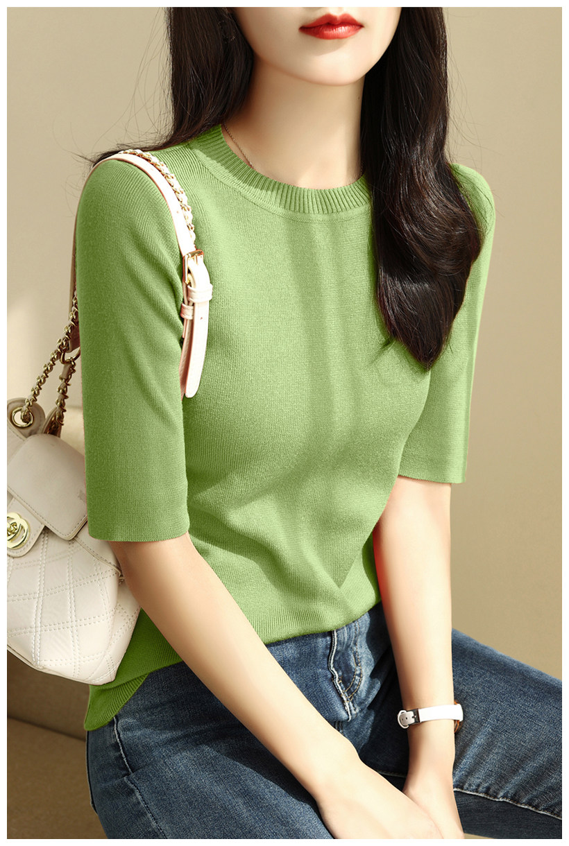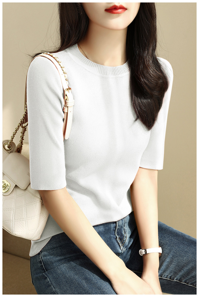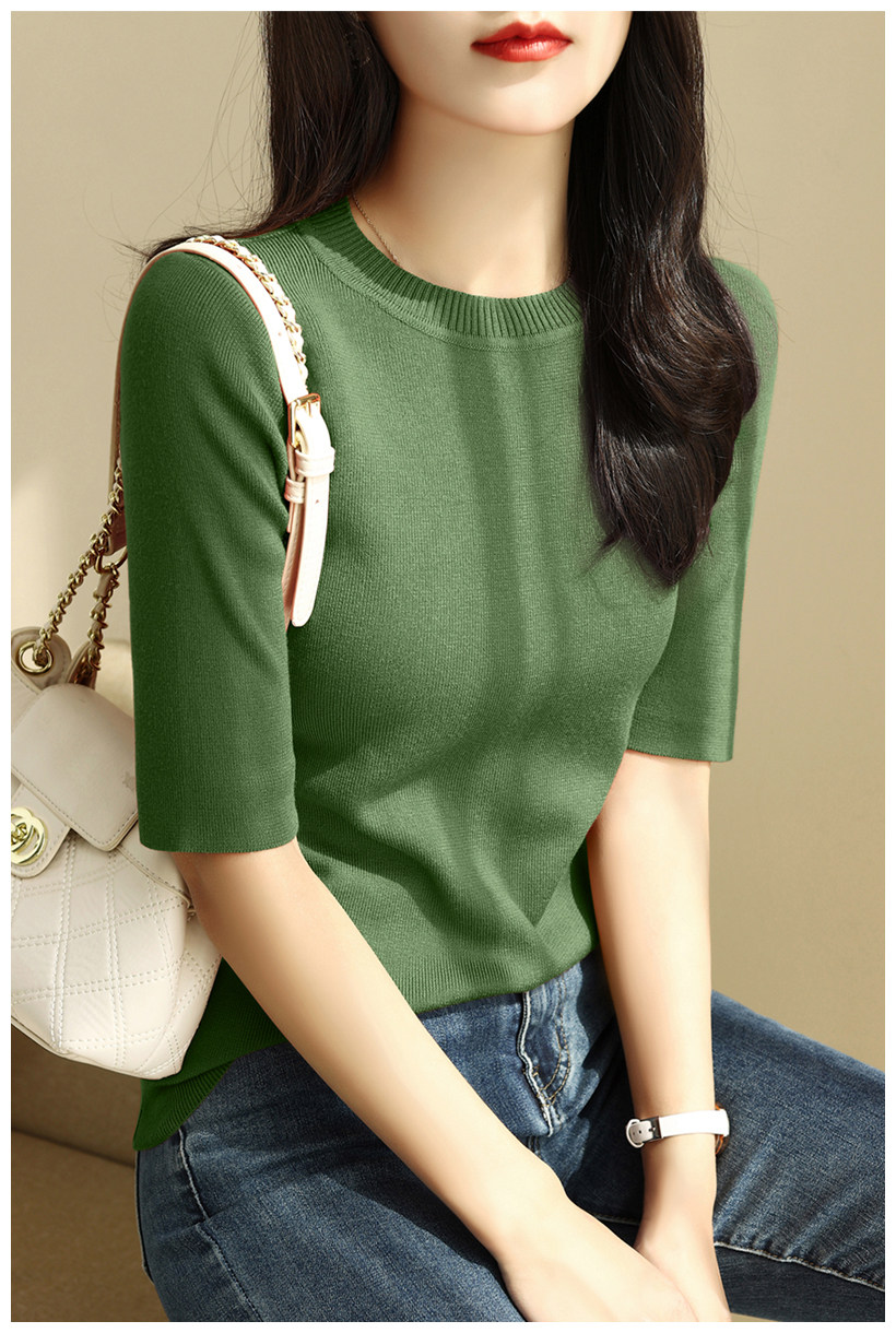 簡約圓領五分袖顯瘦打底衫2025年時尚春秋百搭中袖修身針織衫上衣