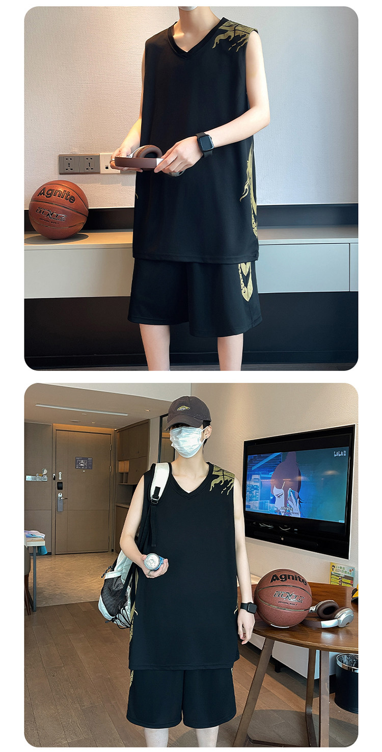 籃球服套裝男夏季速乾無袖球衣胖子運動背心短褲加大碼跑步健身服