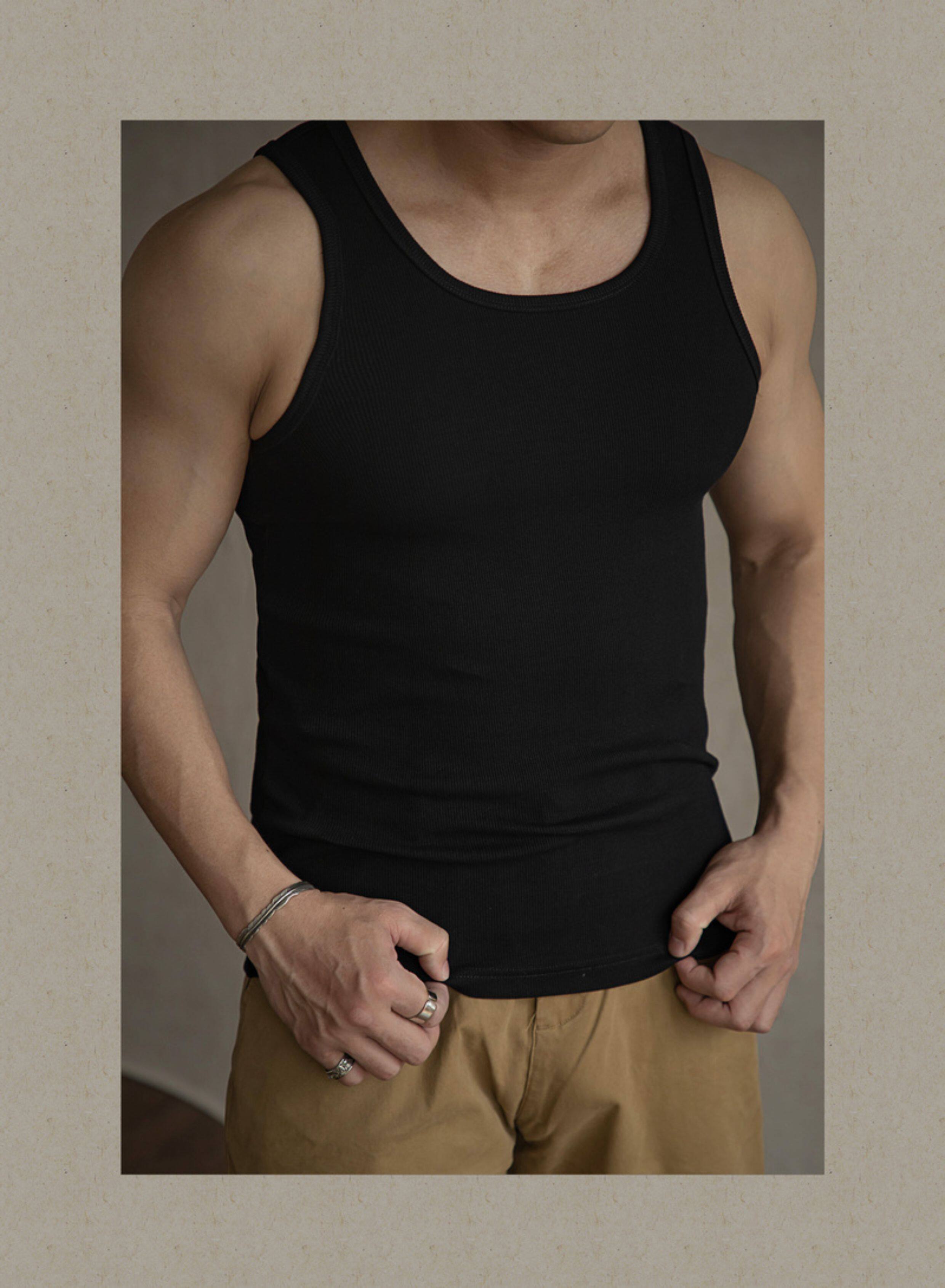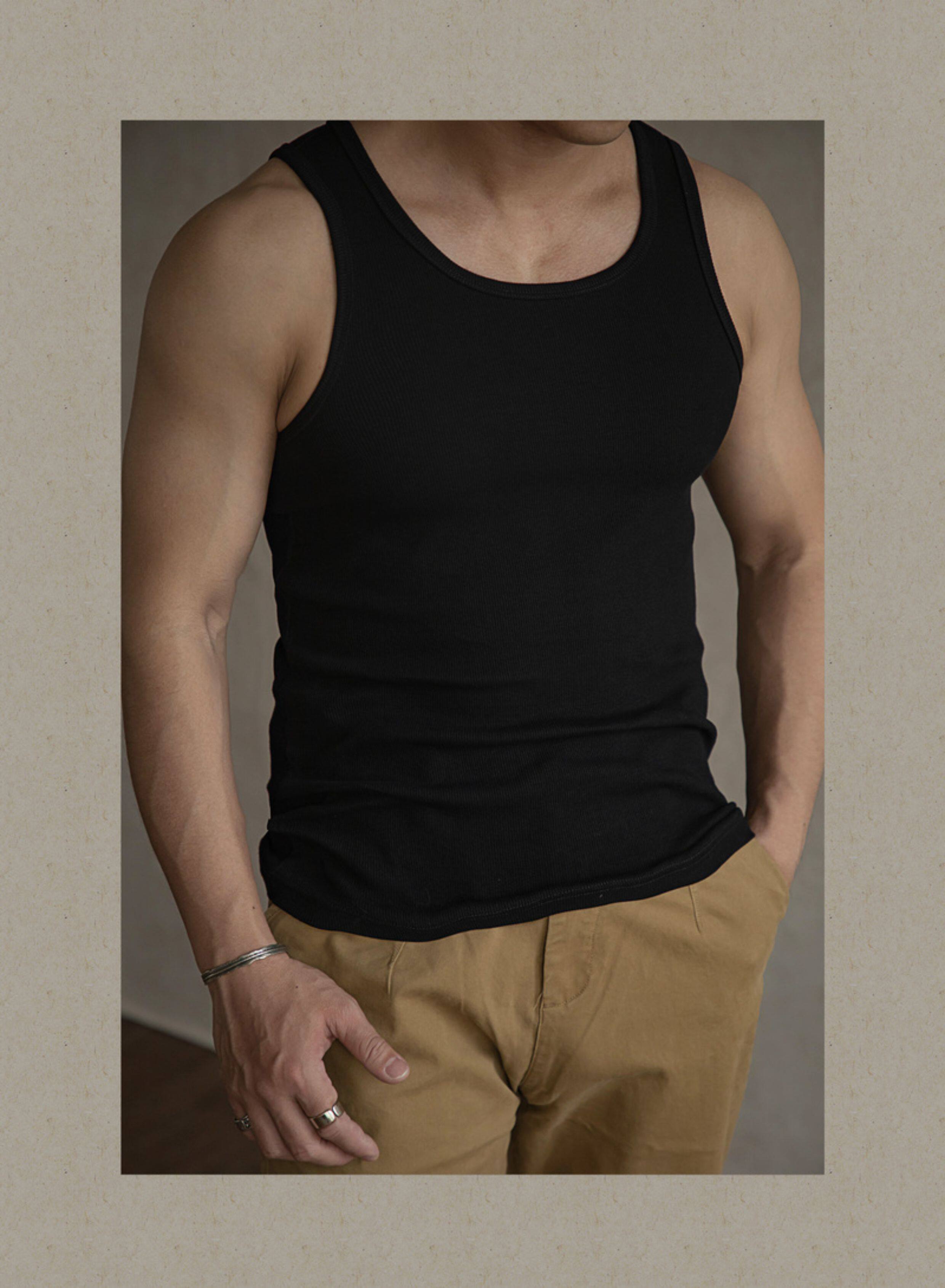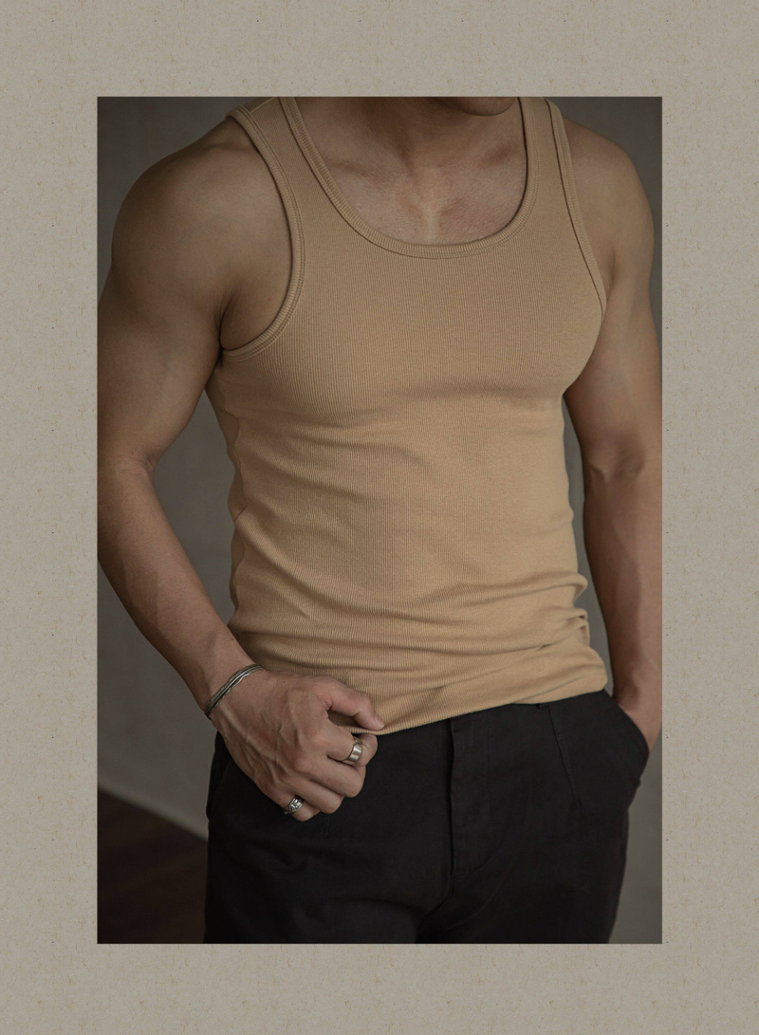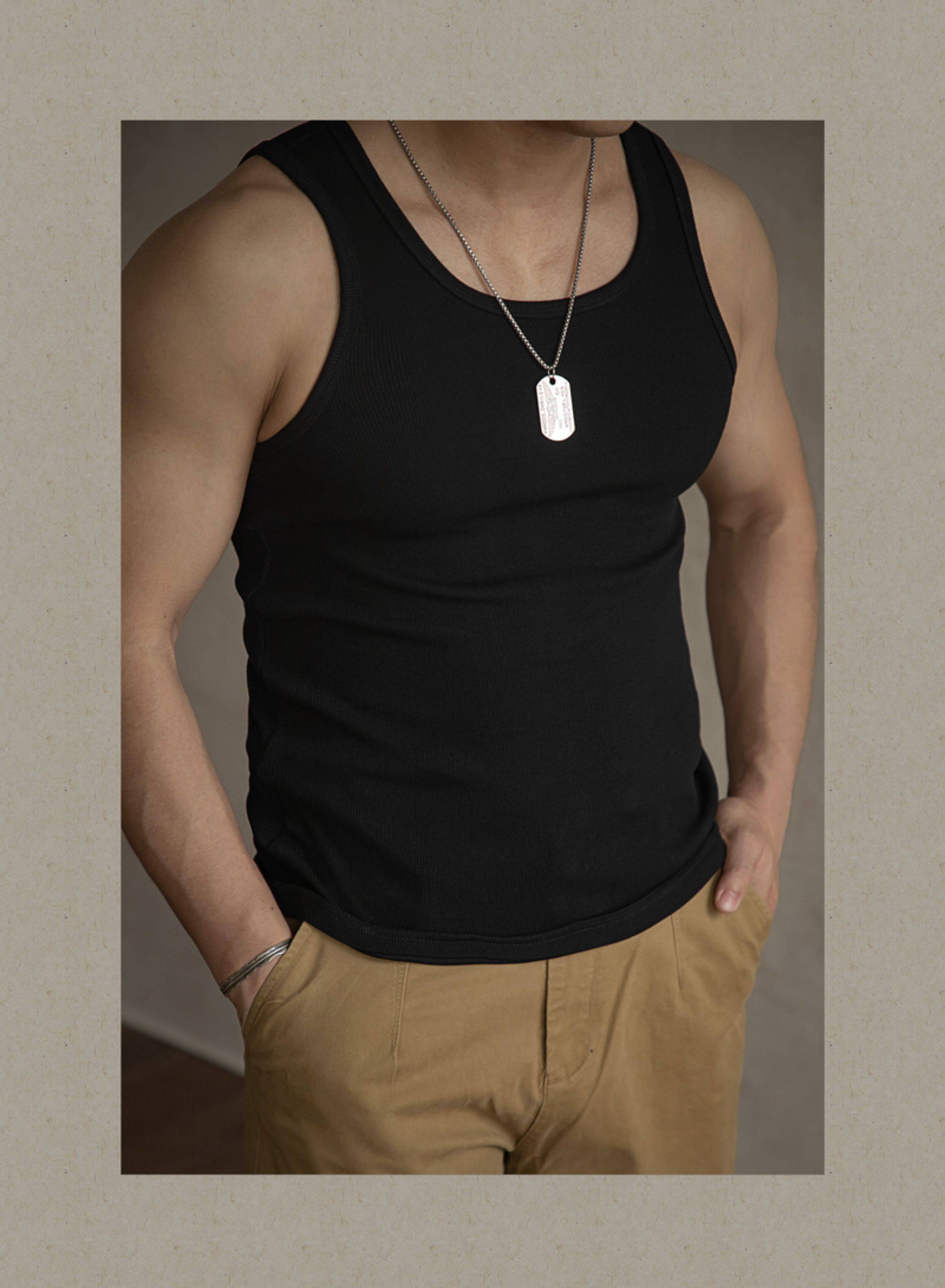 唔刃美式復古彈力棉修身背心無袖T恤打底衫運動吸汗硬漢健身男夏