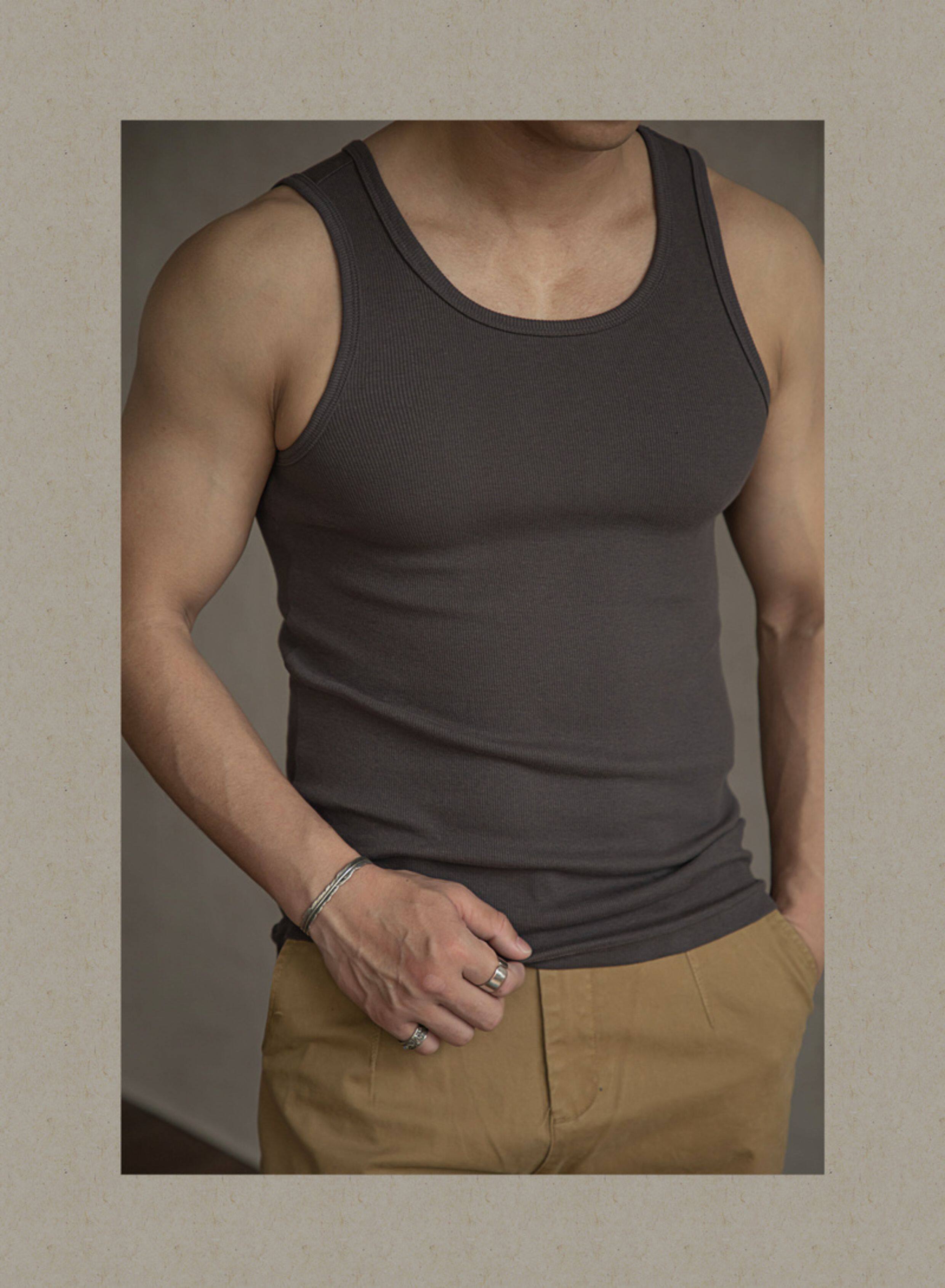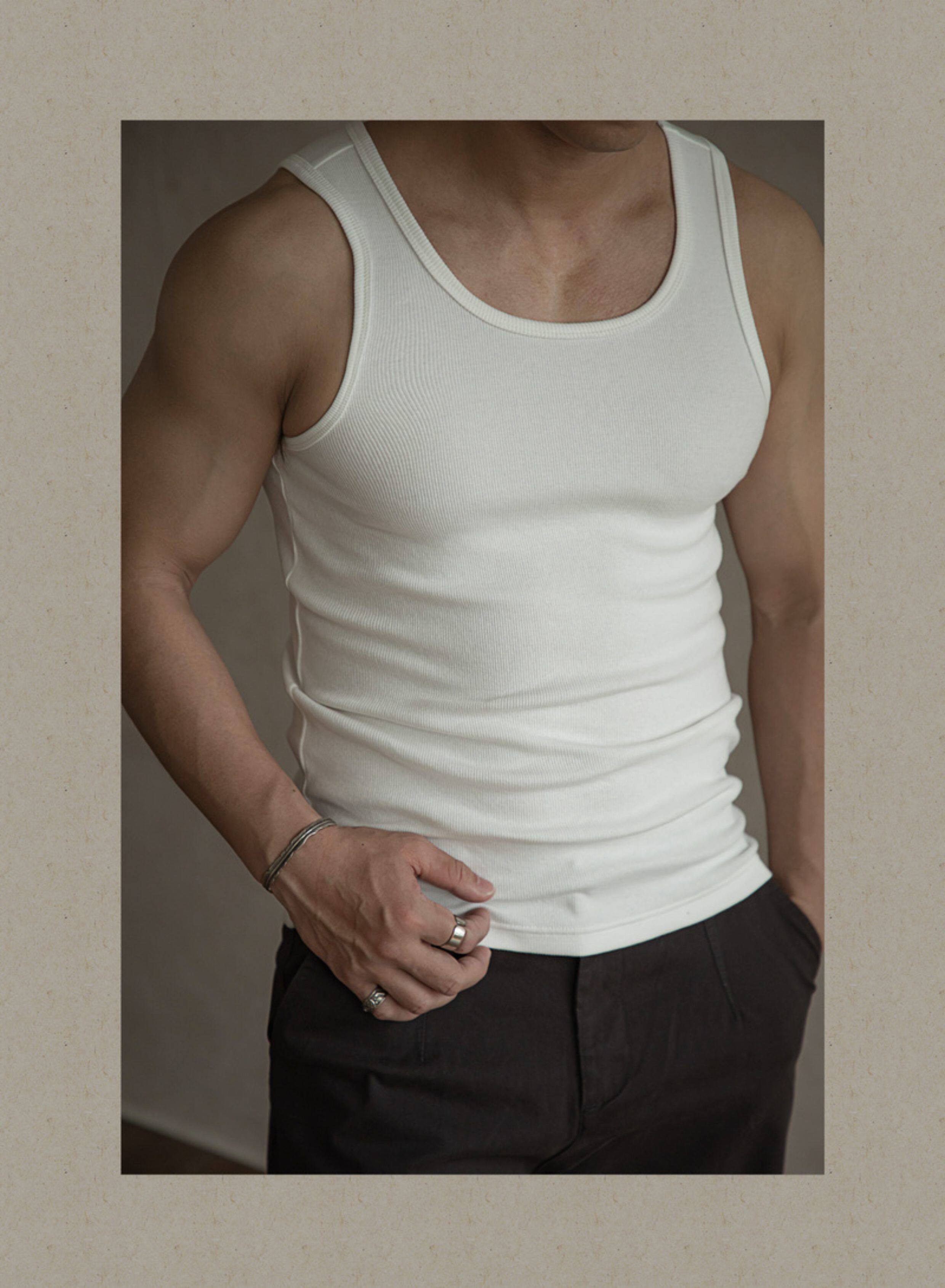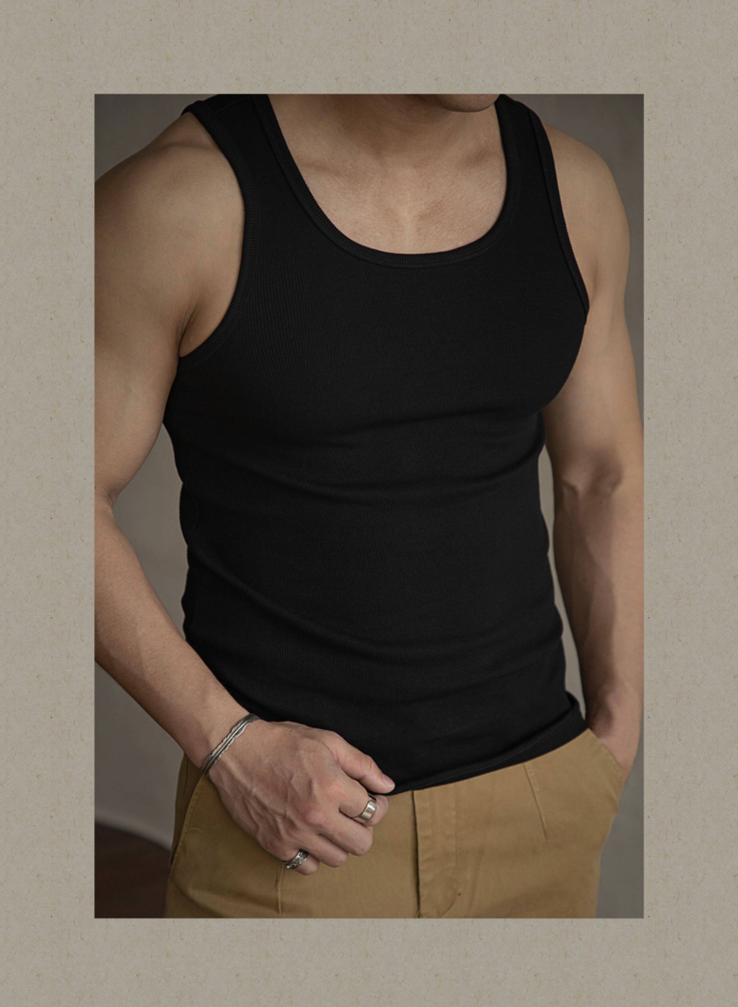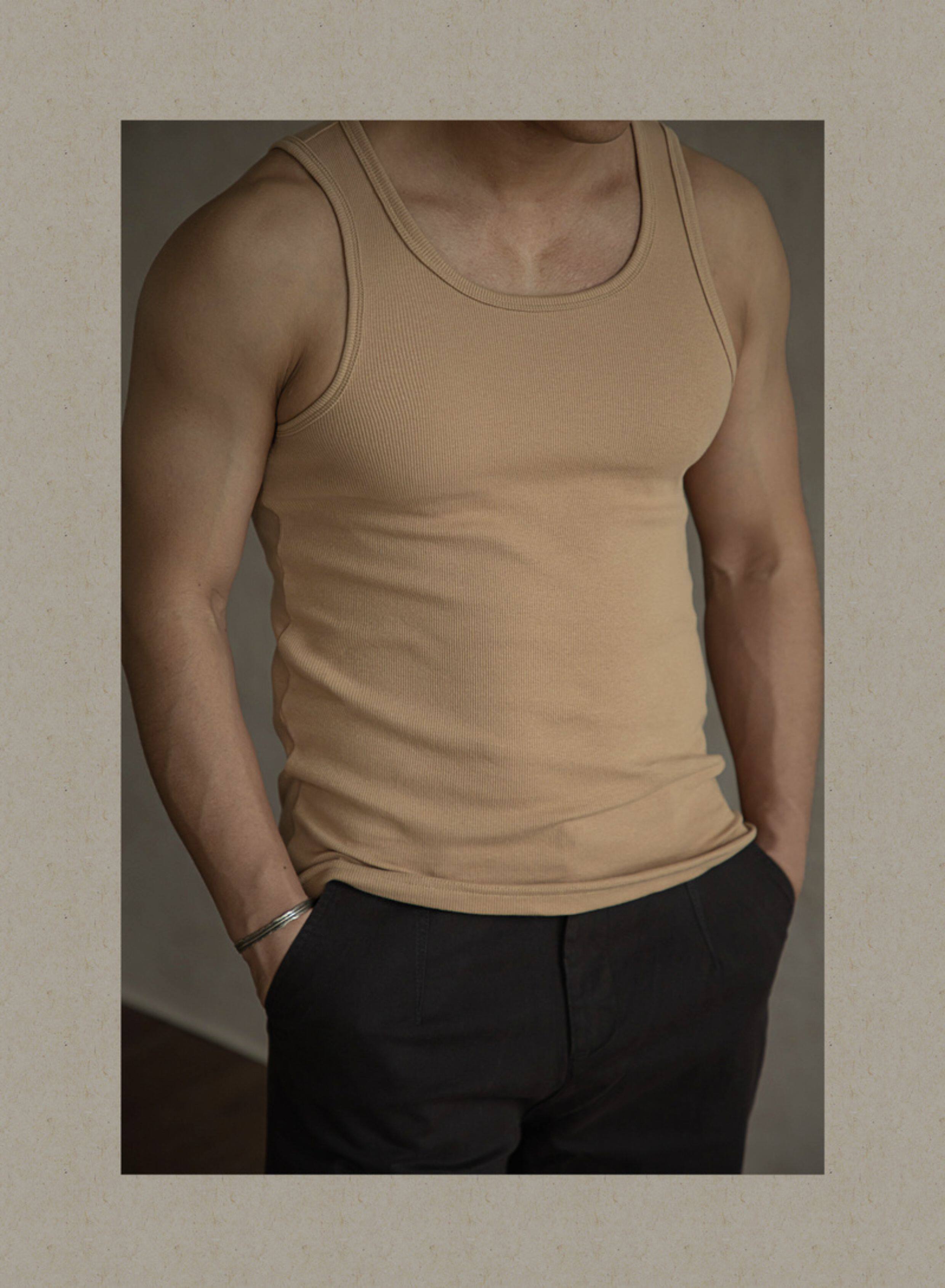 唔刃美式復古彈力棉修身背心無袖T恤打底衫運動吸汗硬漢健身男夏