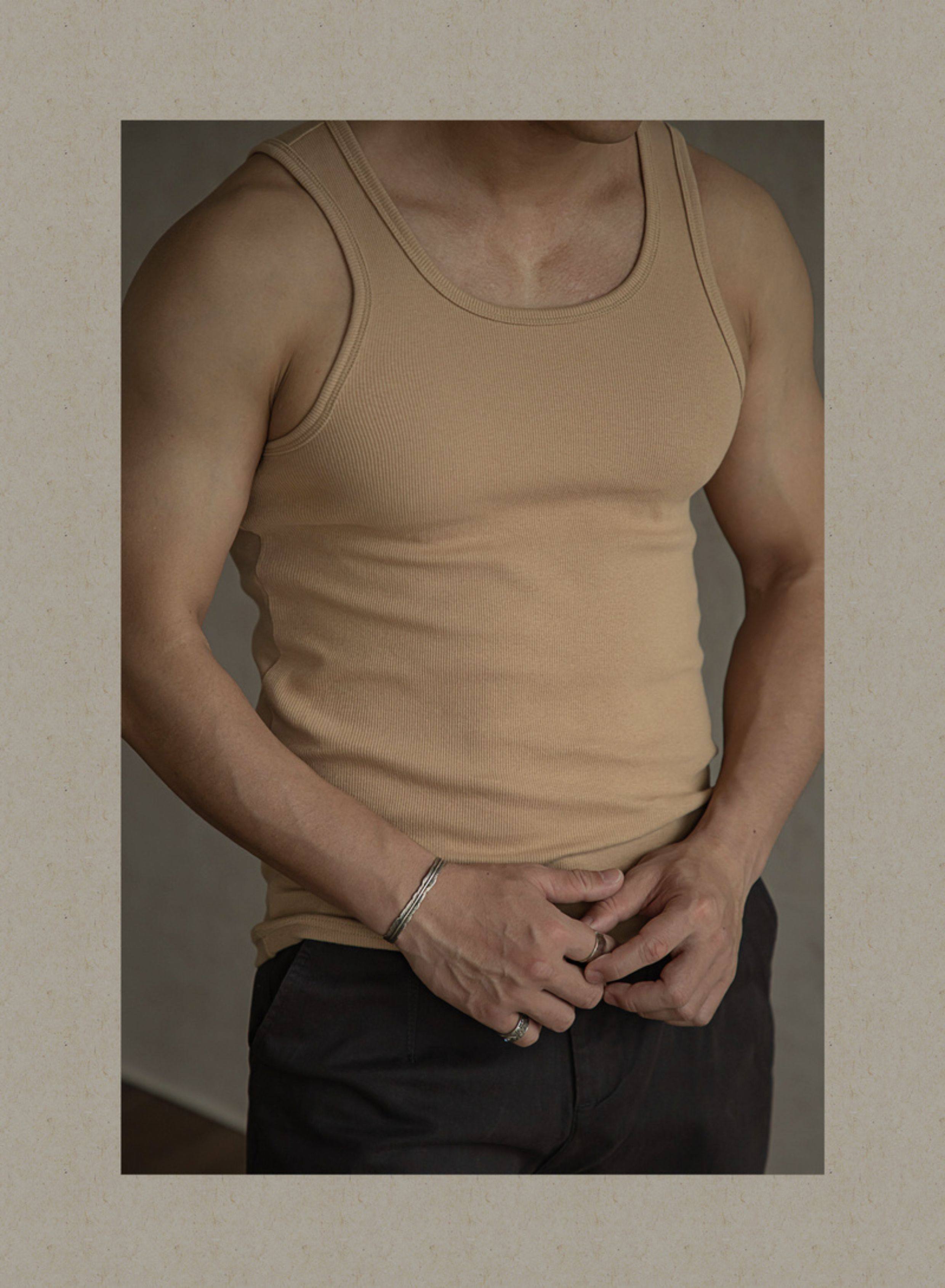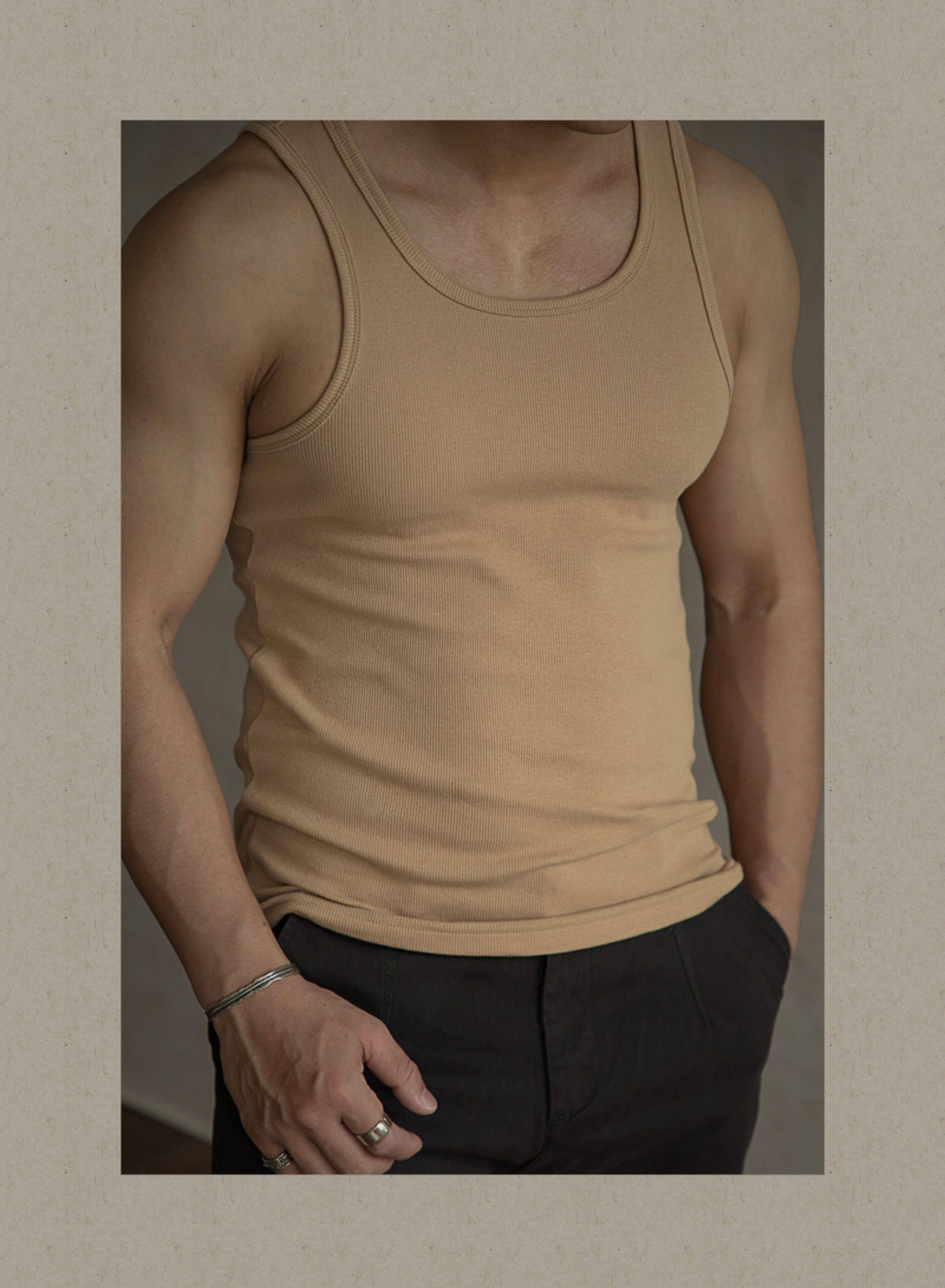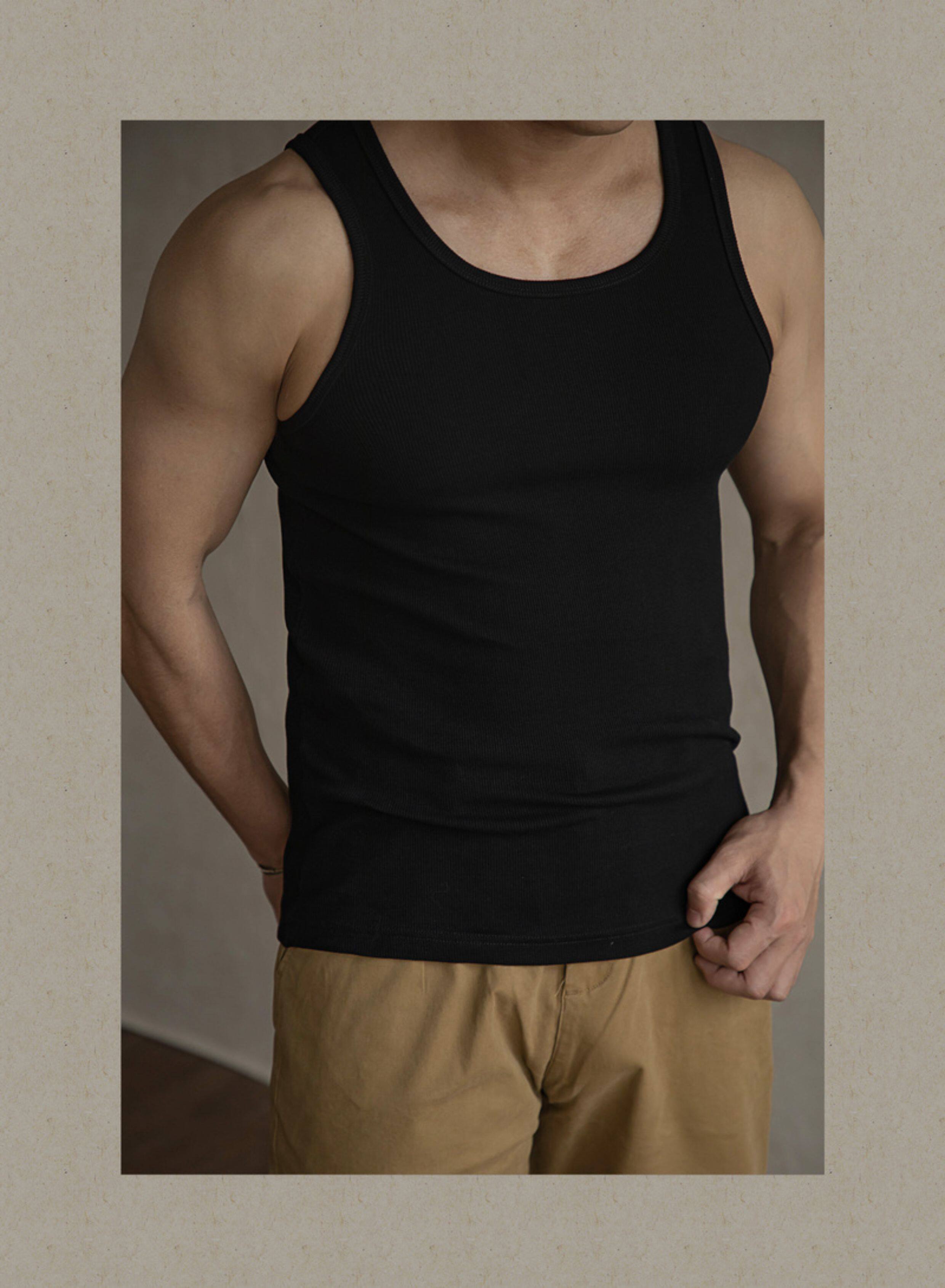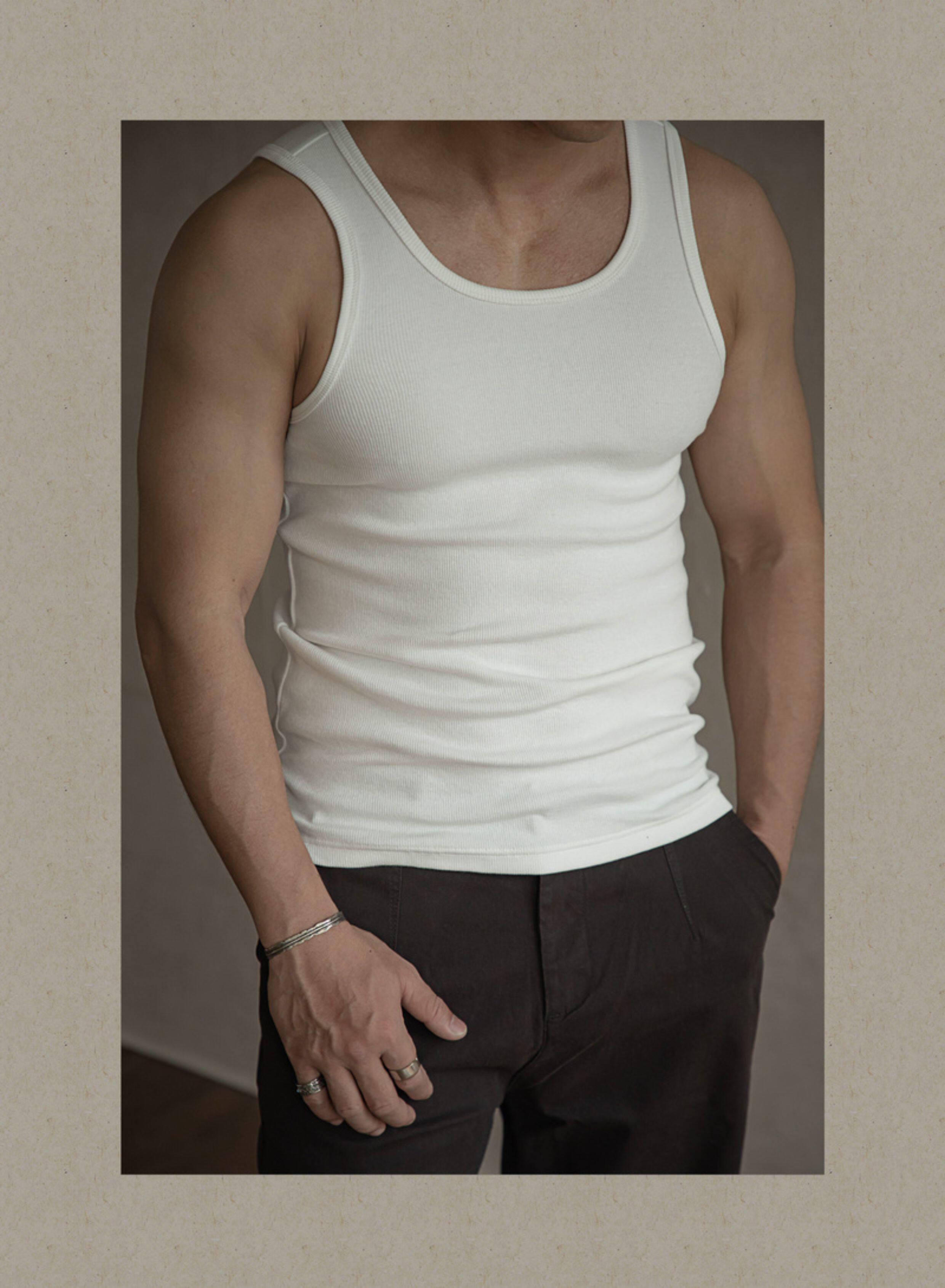 唔刃美式復古彈力棉修身背心無袖T恤打底衫運動吸汗硬漢健身男夏