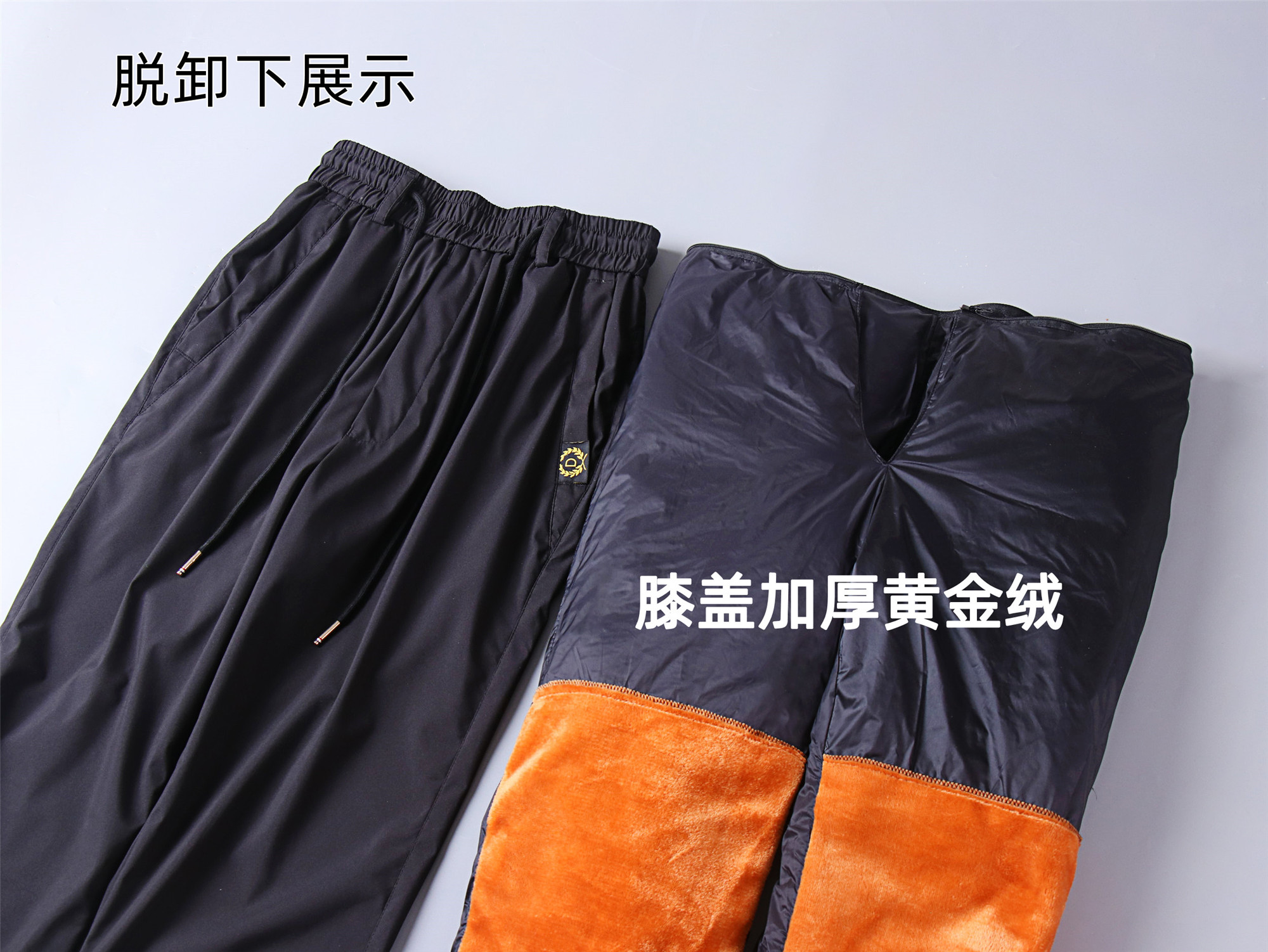 胖子羽絨褲男外穿可拆卸加厚寬松戶外大碼中老年加肥加大東北棉褲