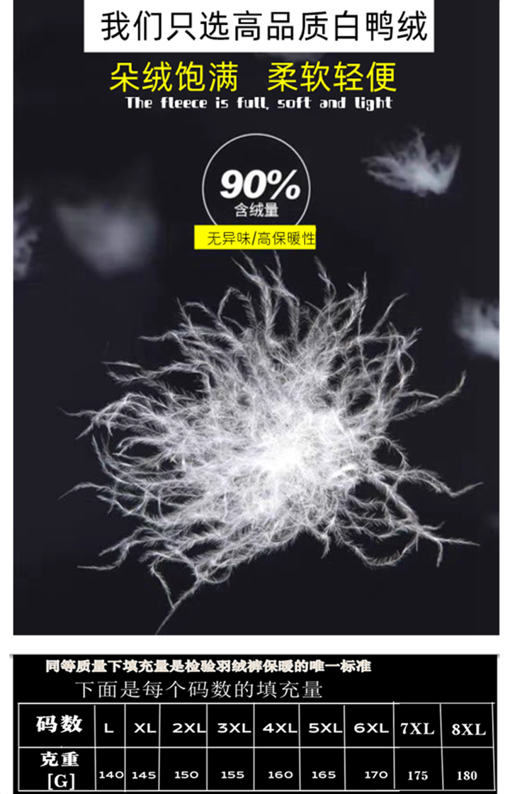 | 填充物 | 80%-89%白鴨羢 |