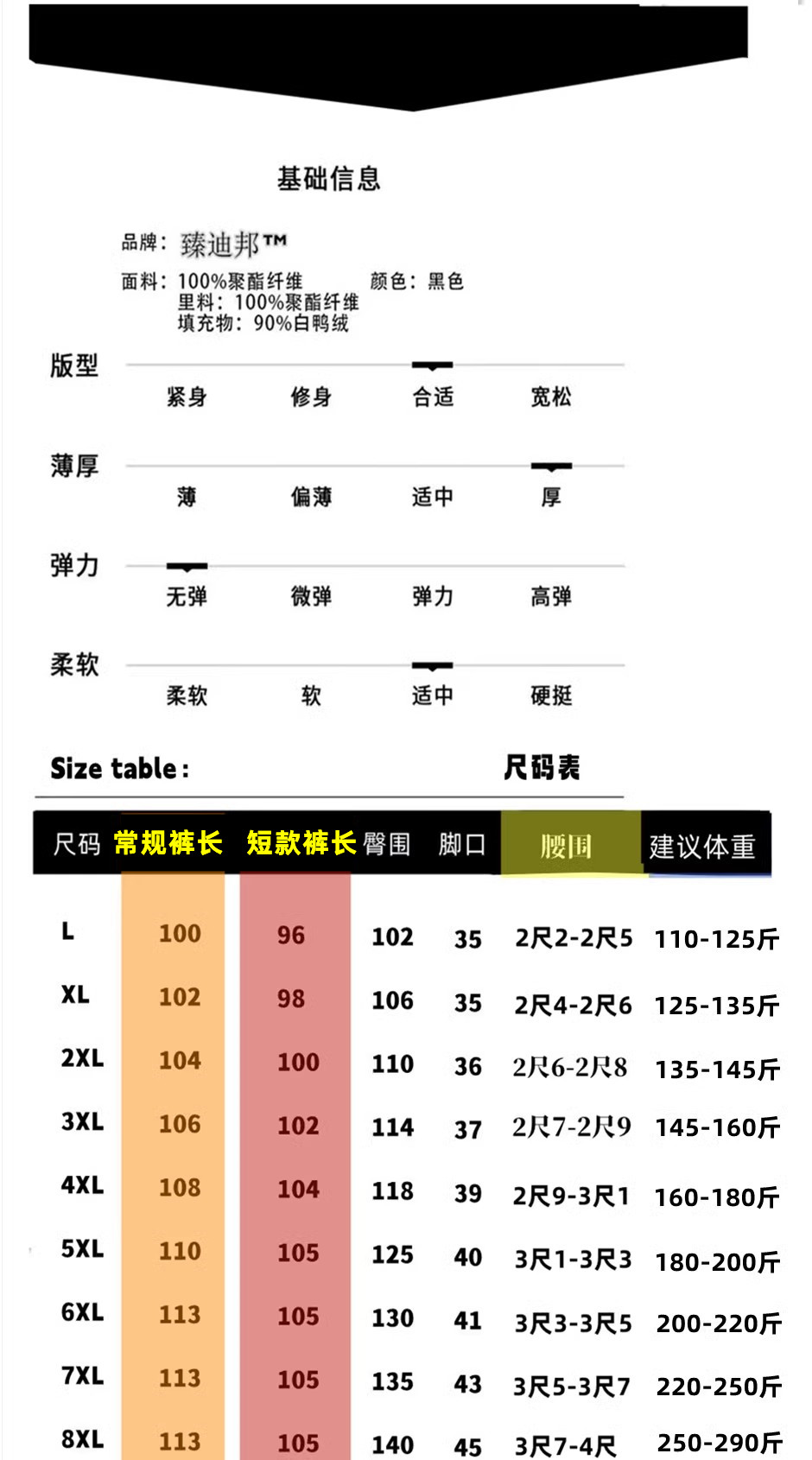 | 褲長 | 長褲 |