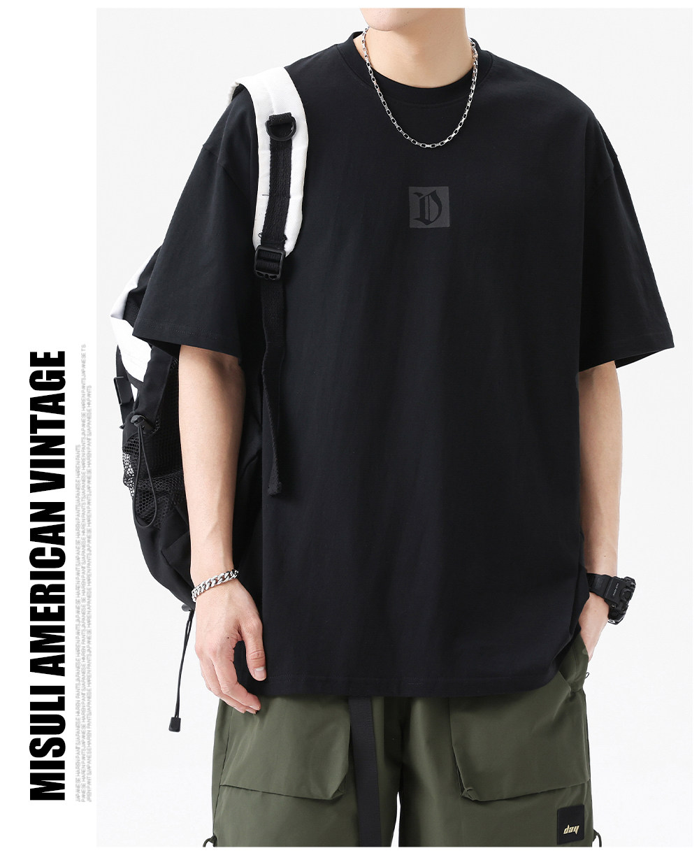 夏季短袖男T恤衫美式高街復古寬鬆大碼圓領半袖男士潮牌重磅半袖