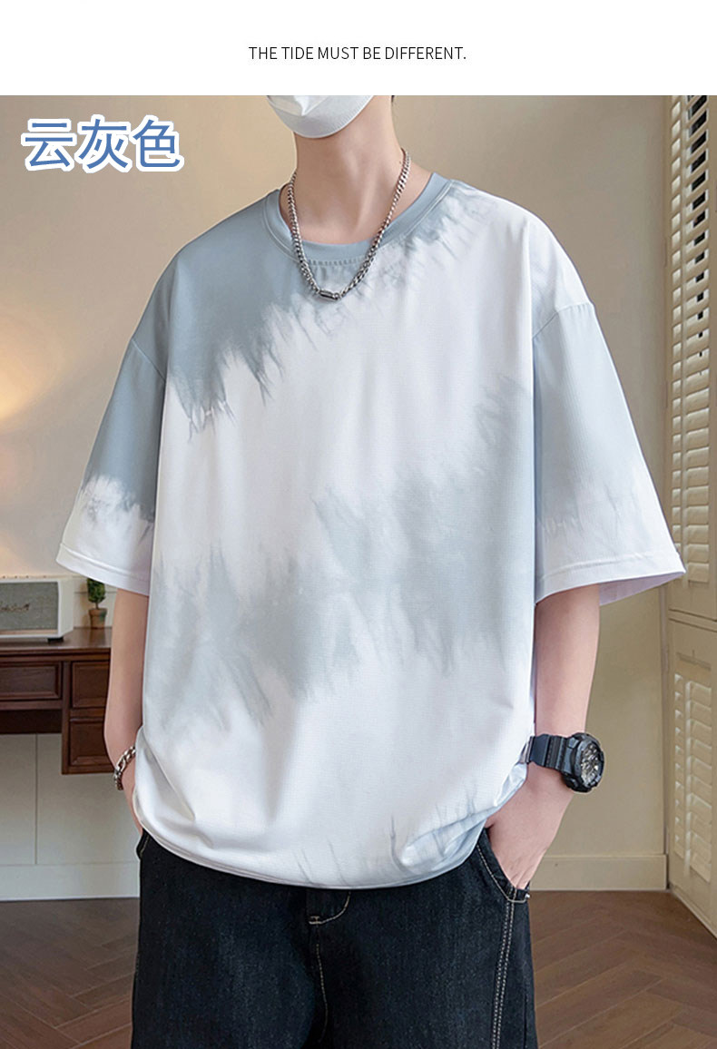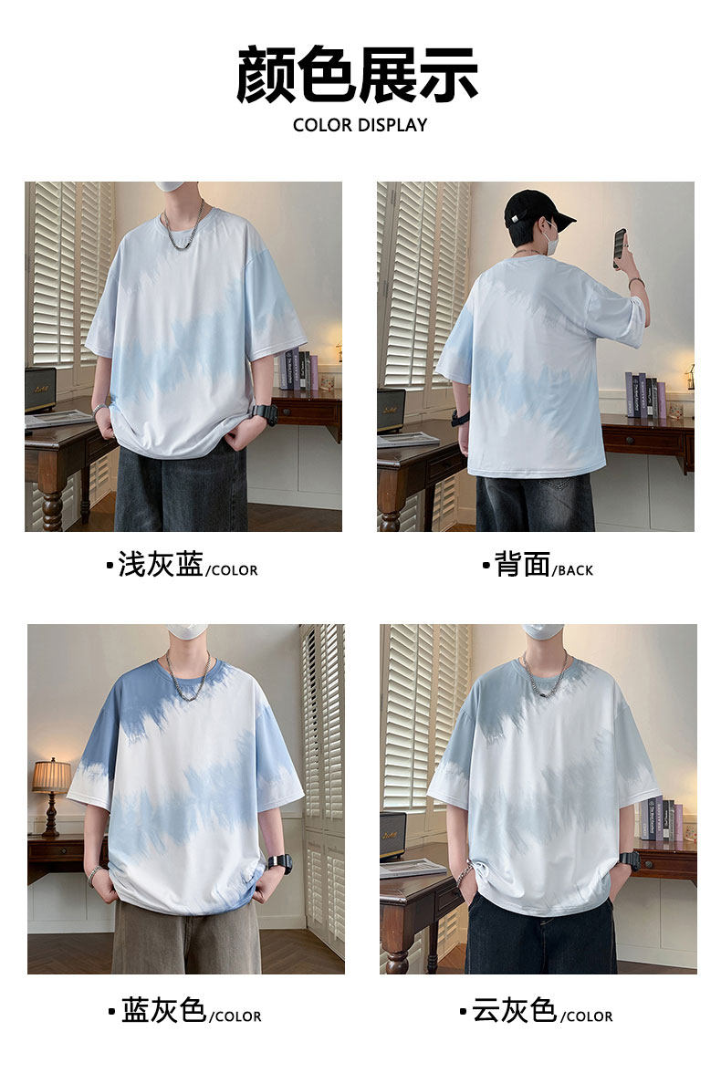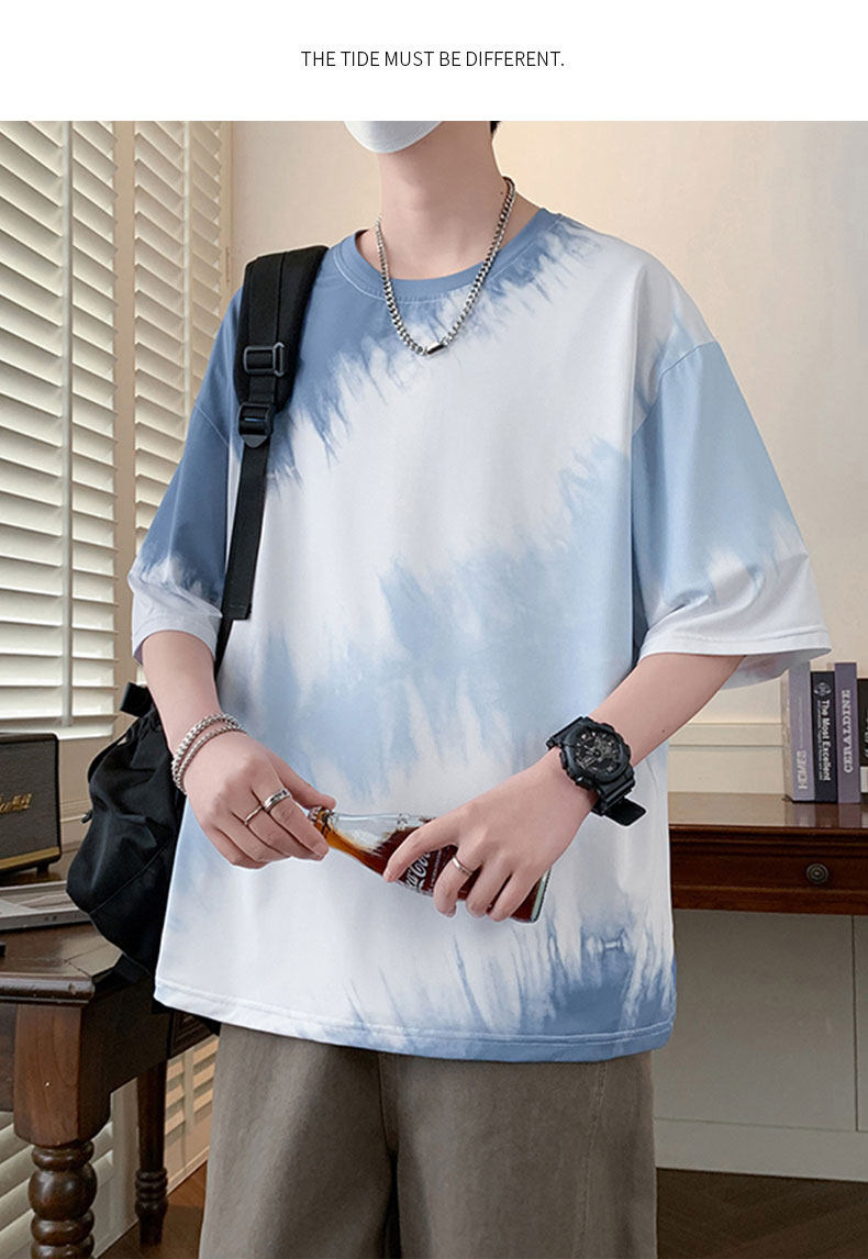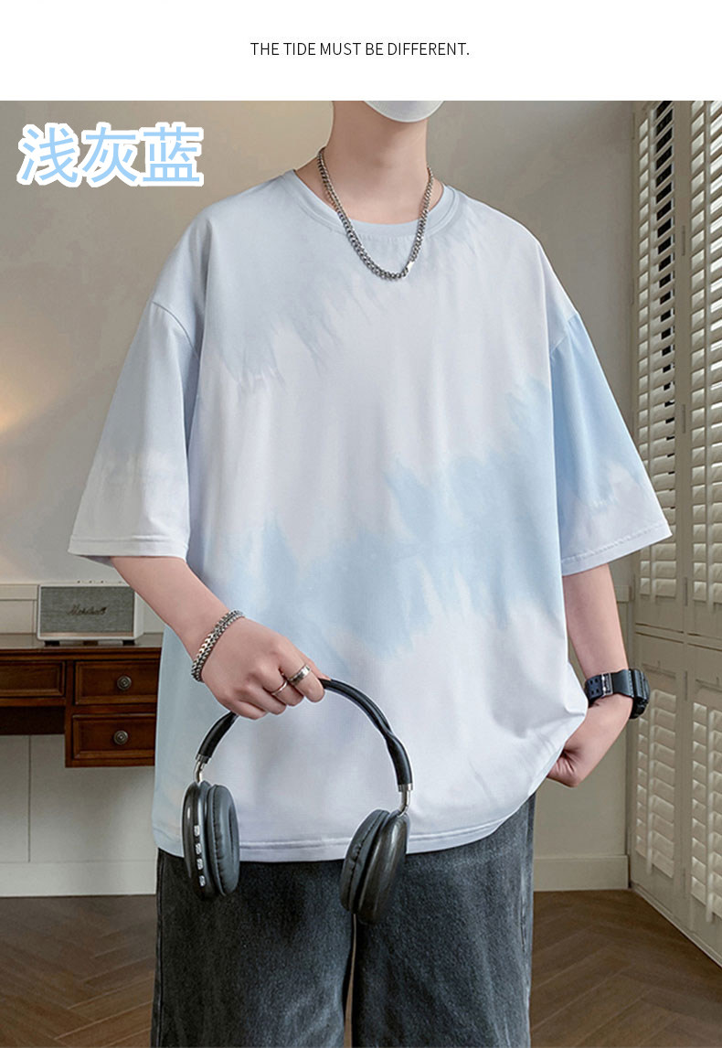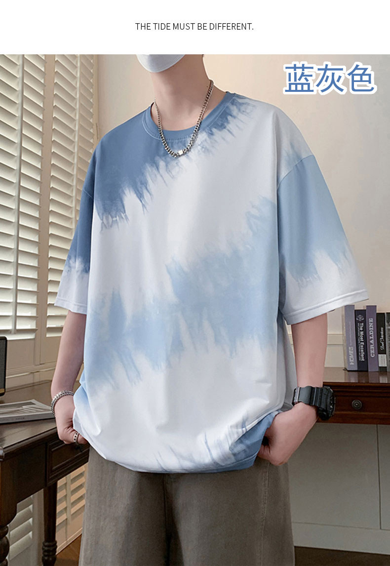 夏季紥染男士t恤寬鬆大碼圓領青春流行戶外短袖體恤潮男免燙夏裝