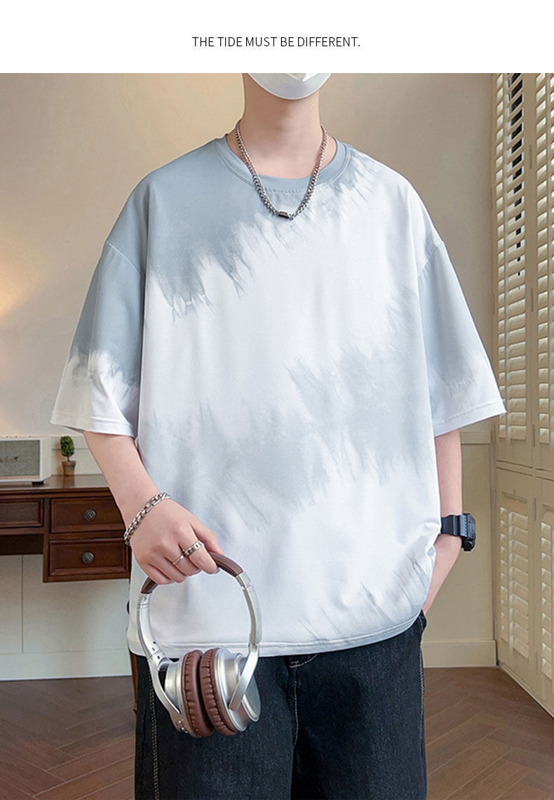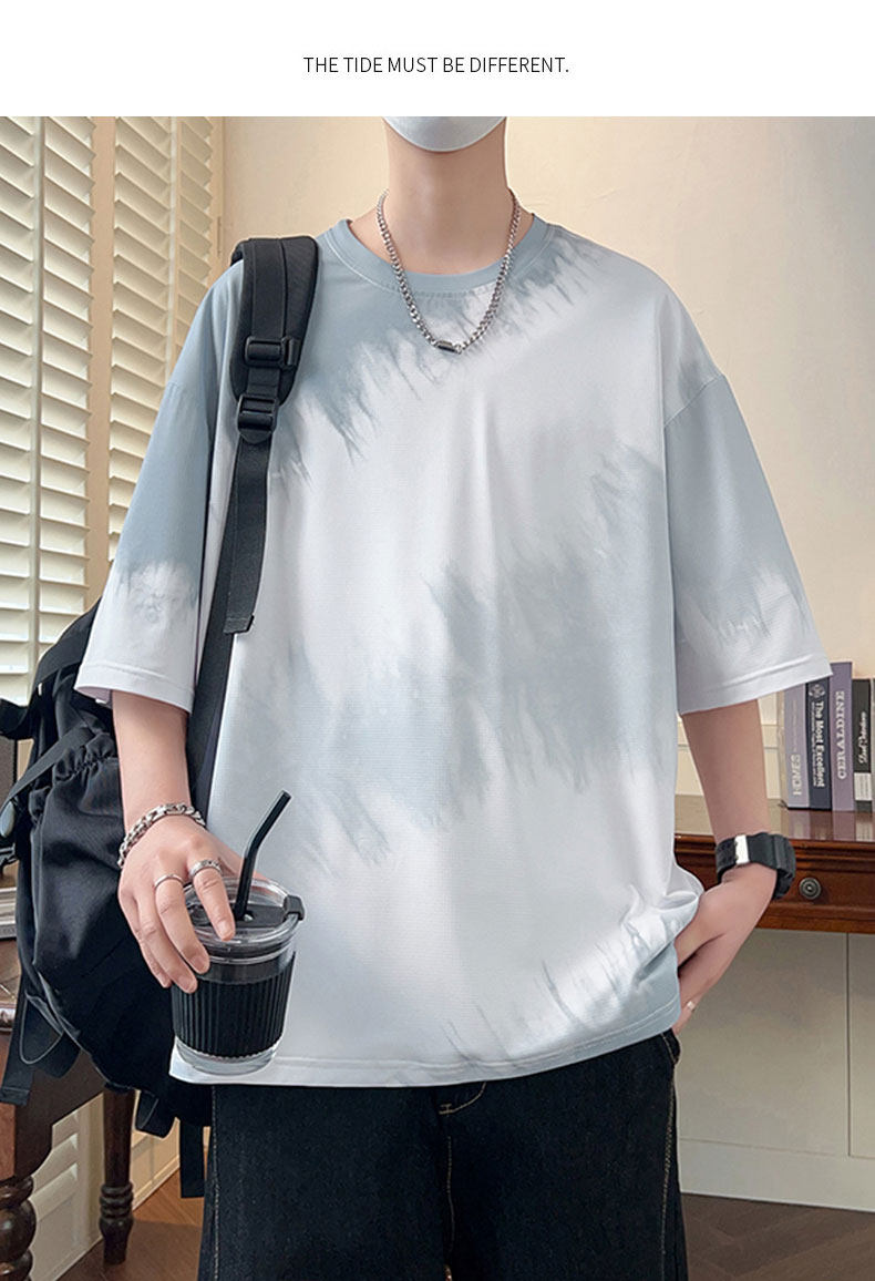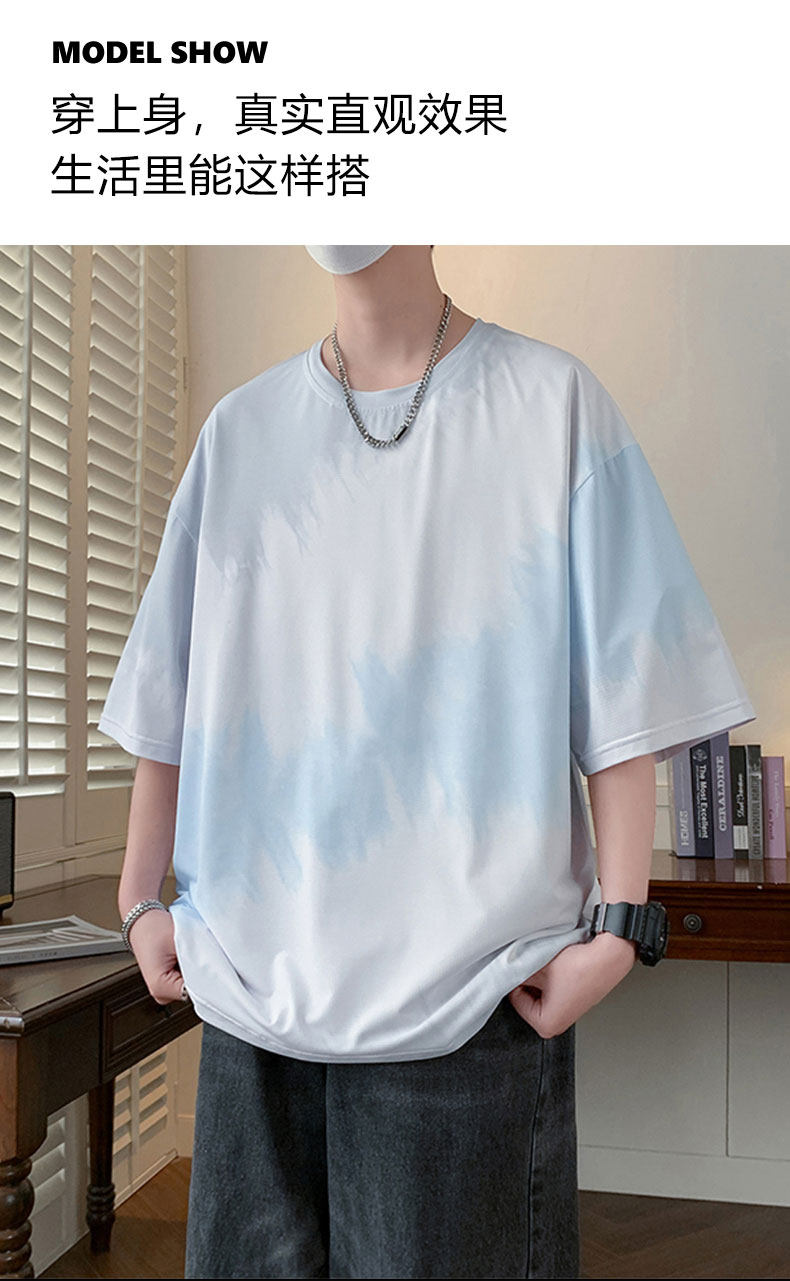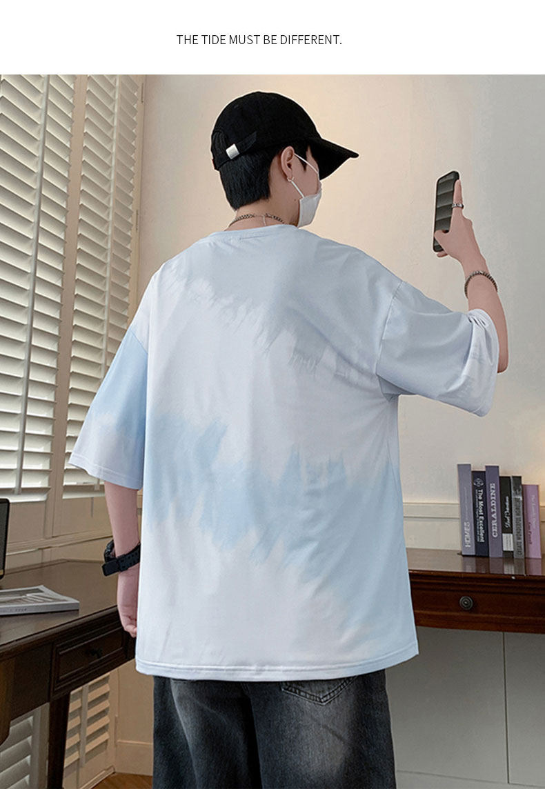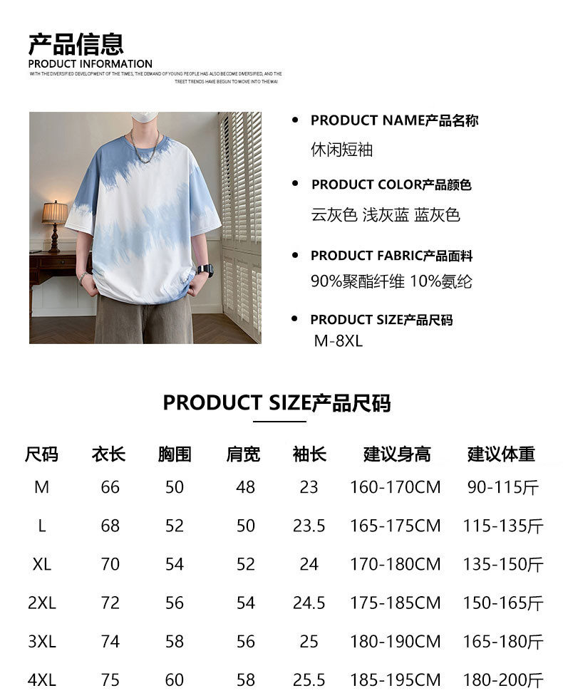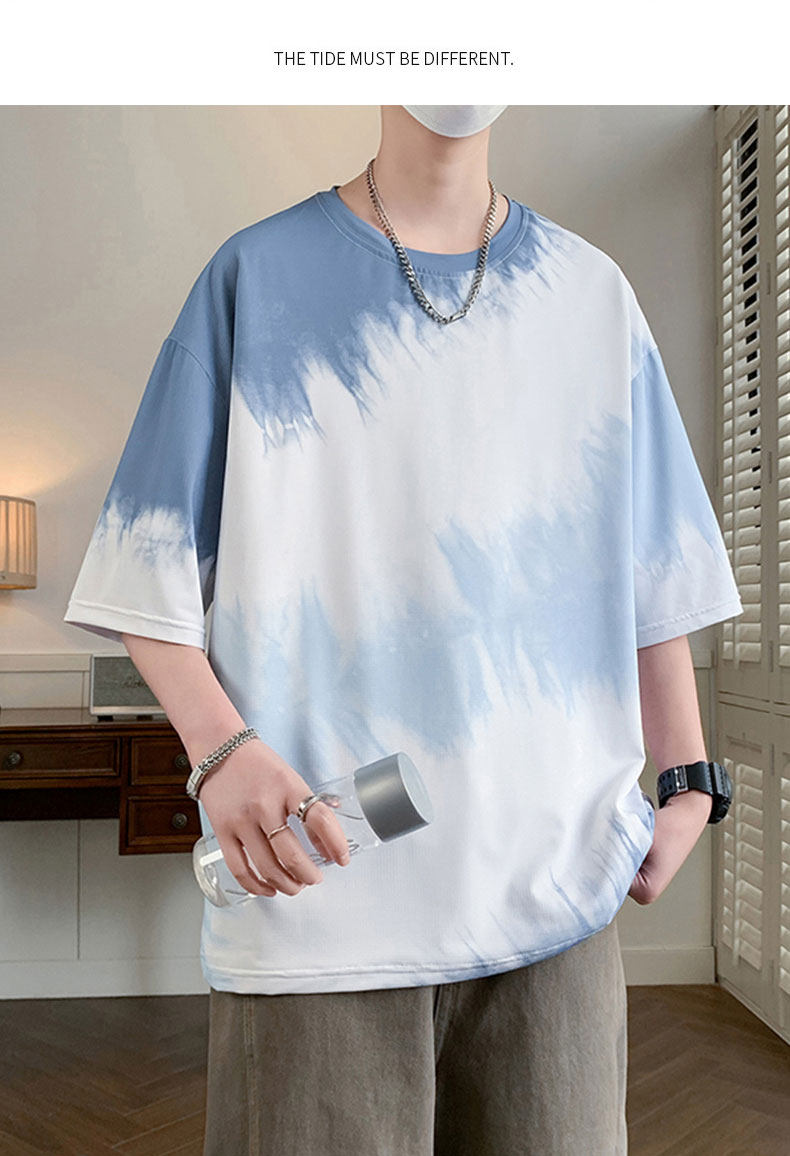 夏季紥染男士t恤寬鬆大碼圓領青春流行戶外短袖體恤潮男免燙夏裝
