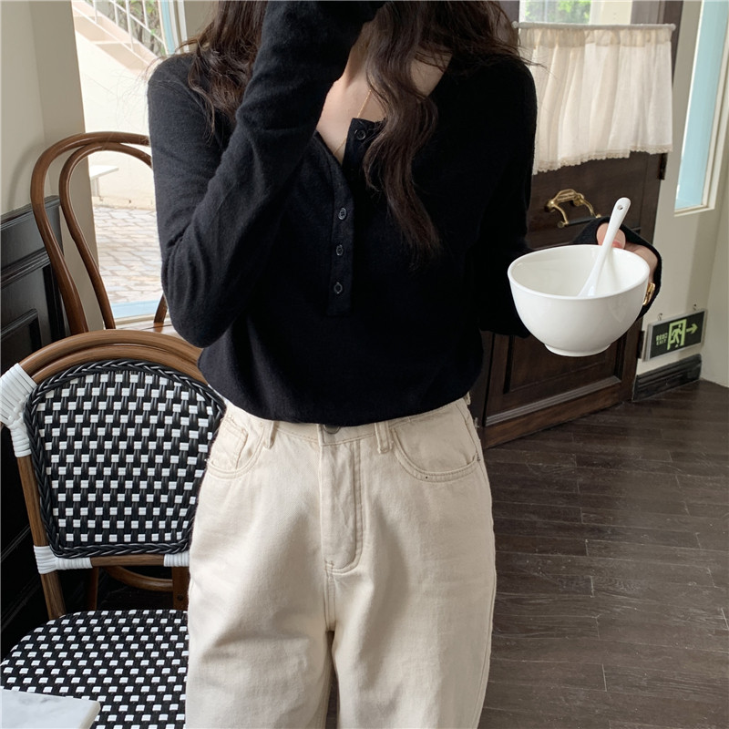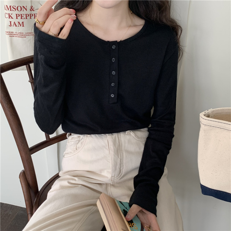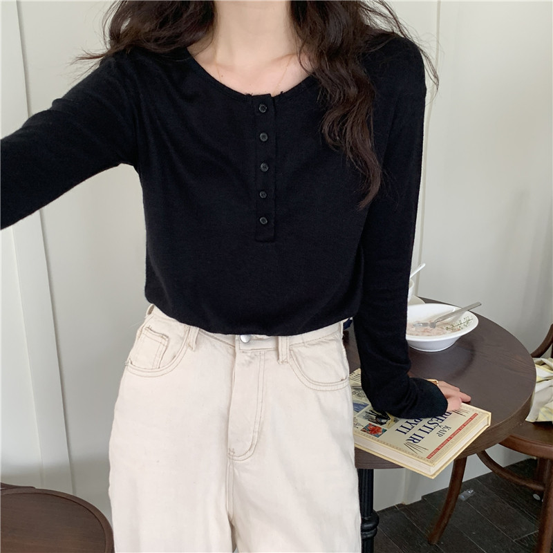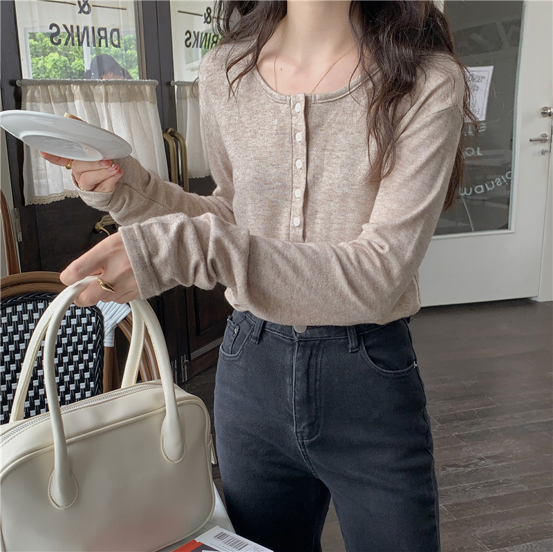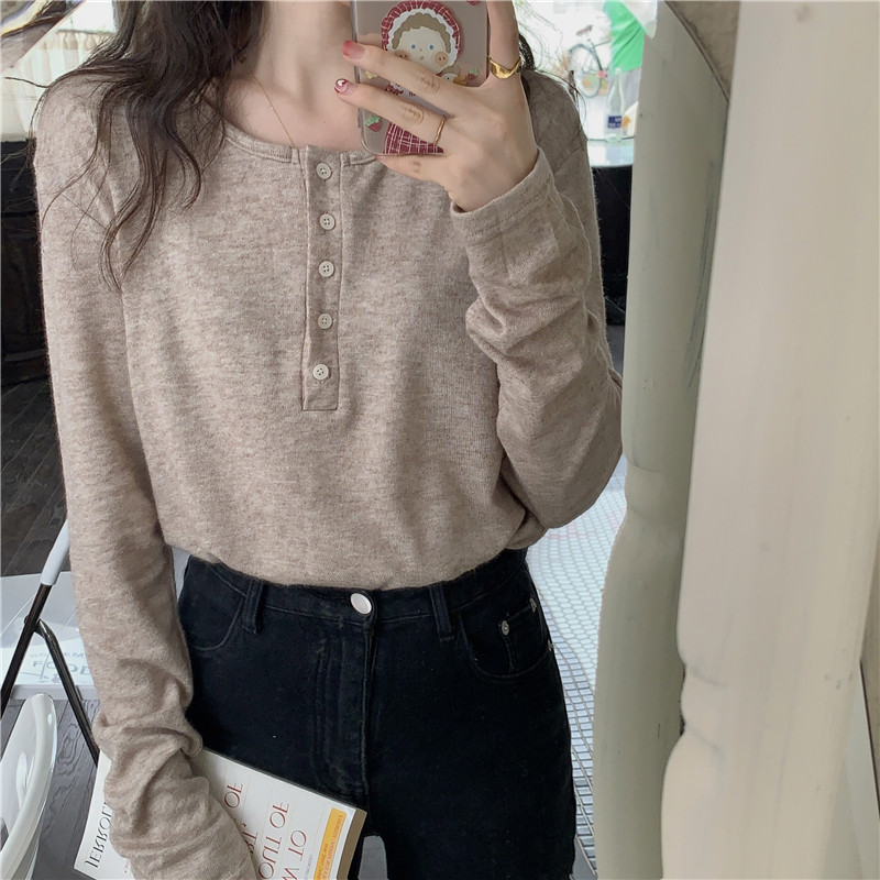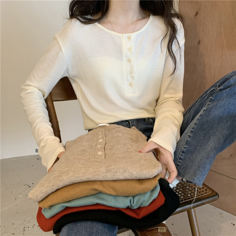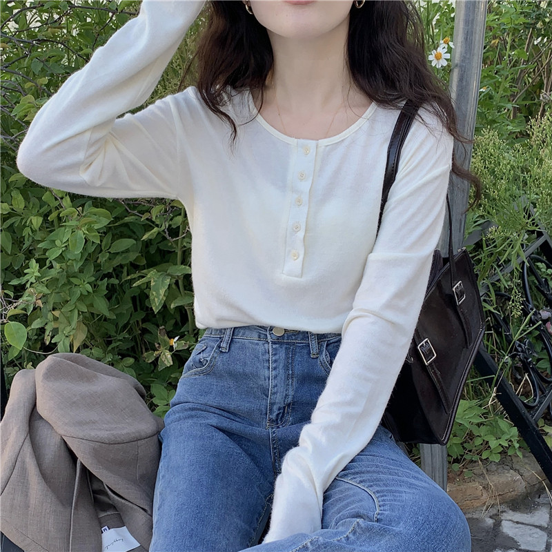 百搭簡約紐釦針織衫女秋季2025新款純色外穿內搭顯瘦打底上衣ins