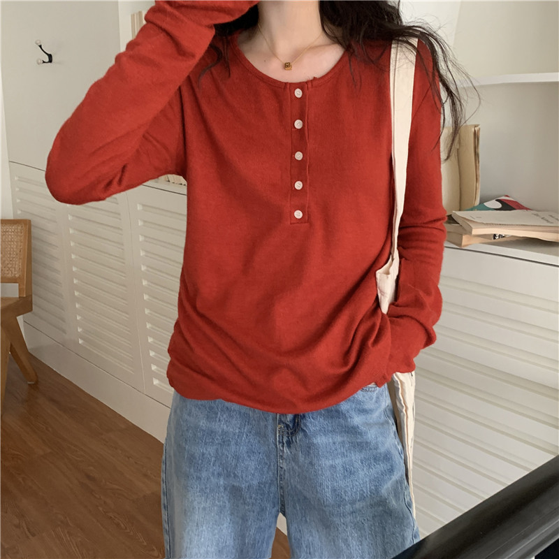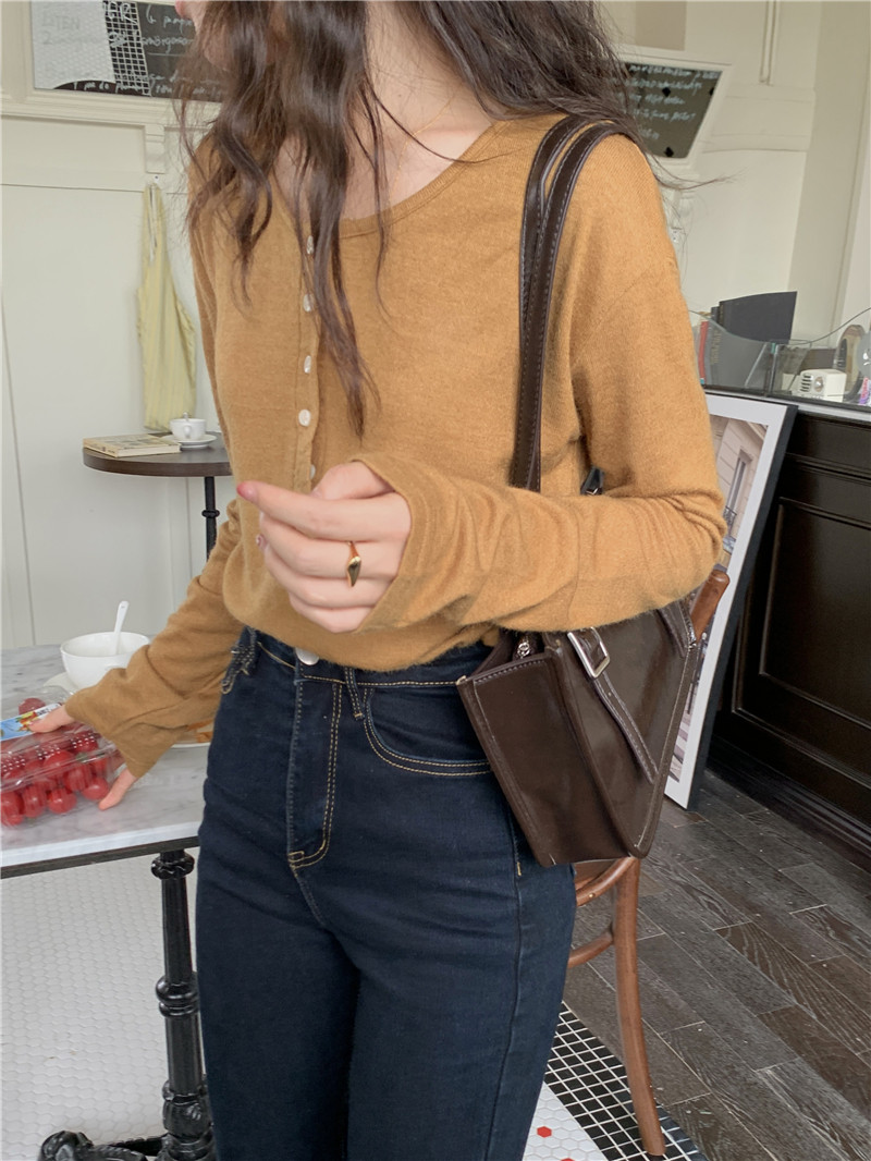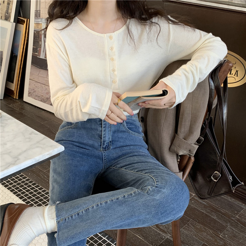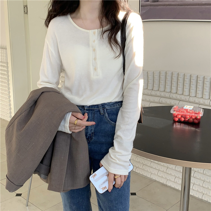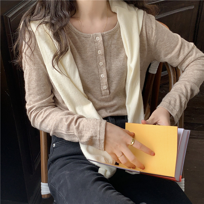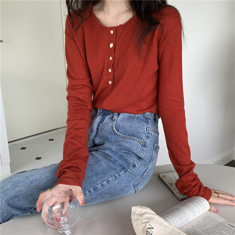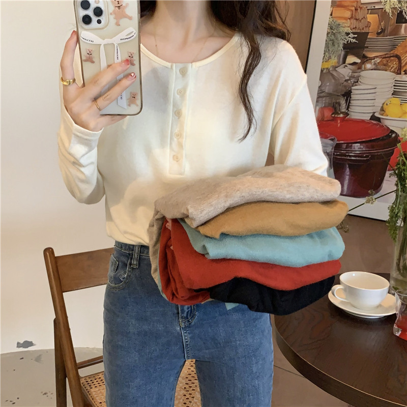 百搭簡約紐釦針織衫女秋季2025新款純色外穿內搭顯瘦打底上衣ins