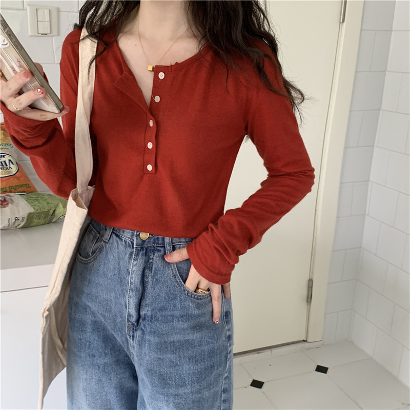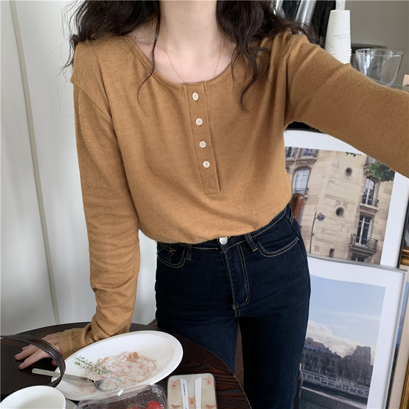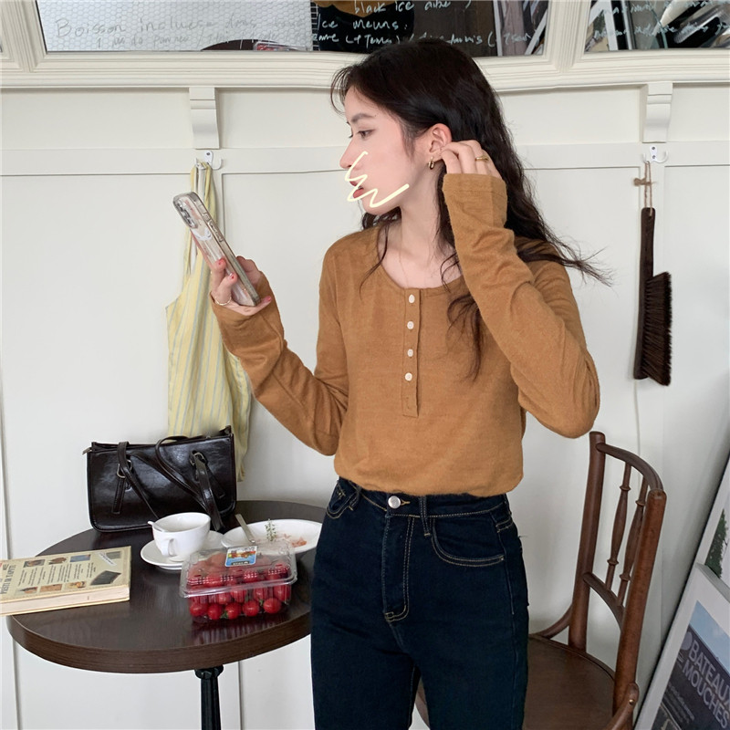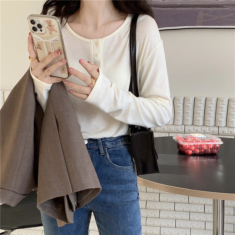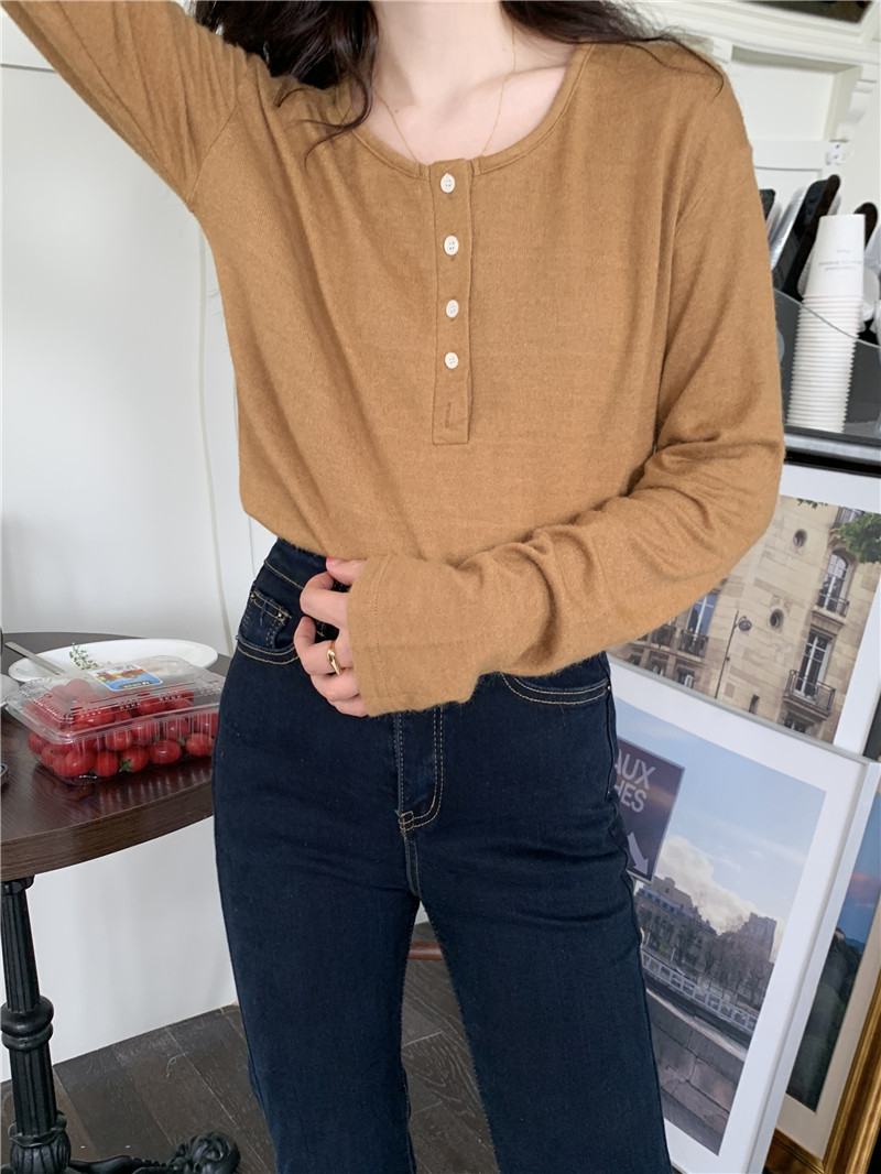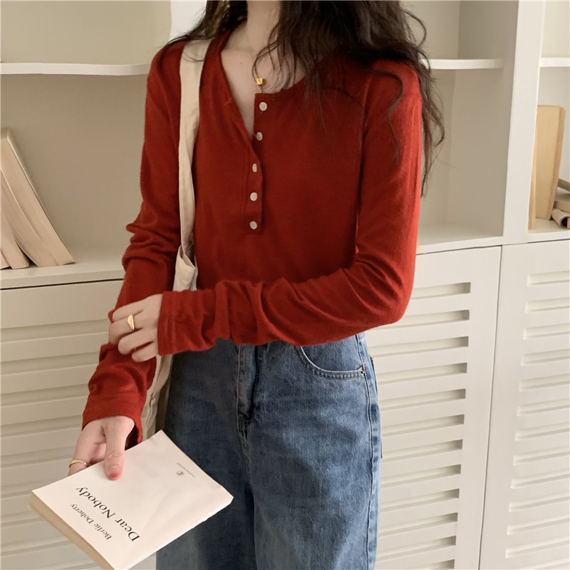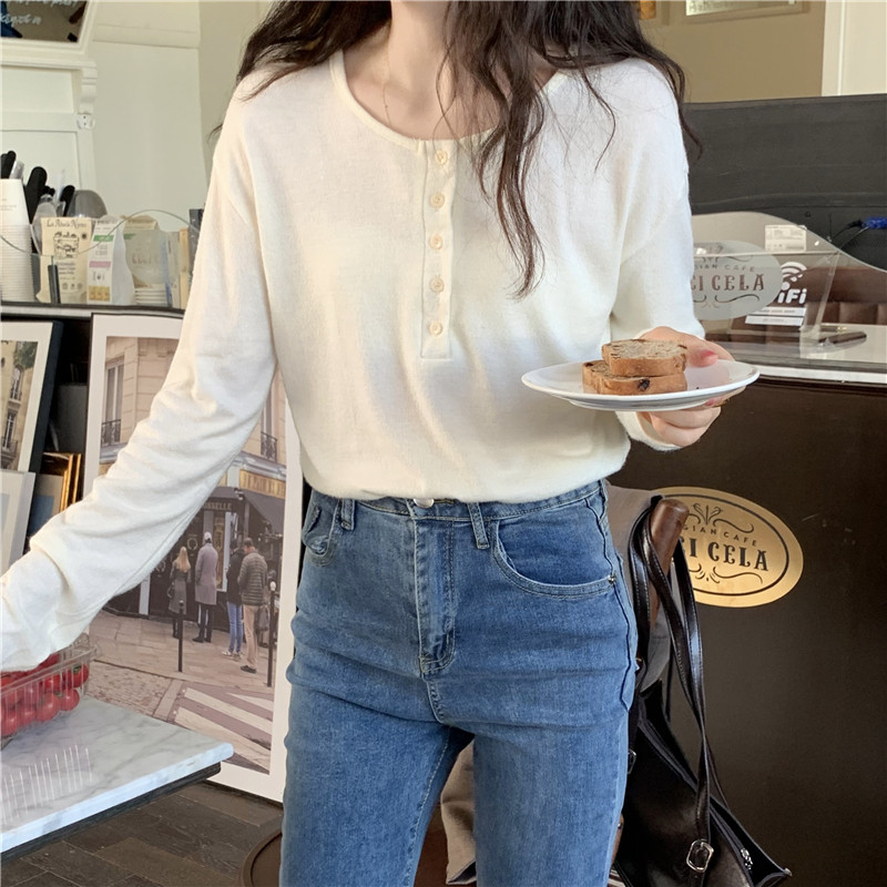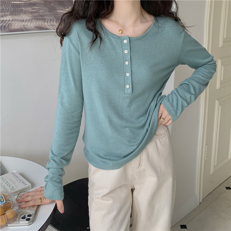 百搭簡約紐釦針織衫女秋季2025新款純色外穿內搭顯瘦打底上衣ins