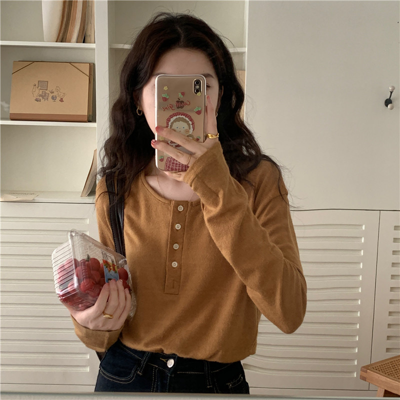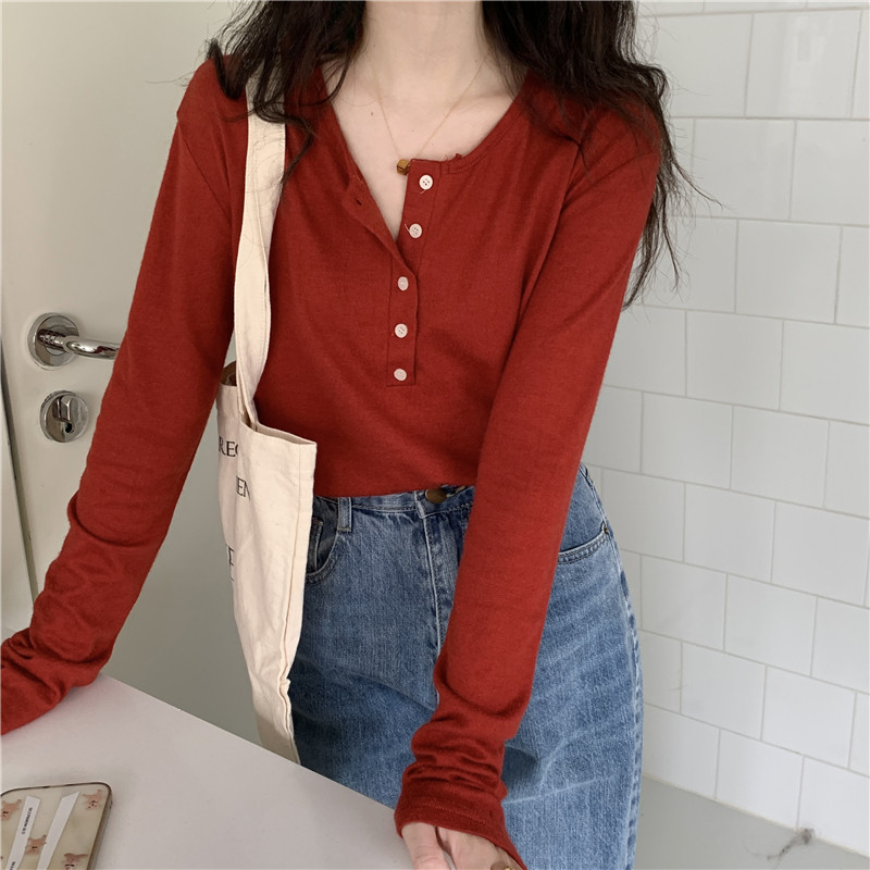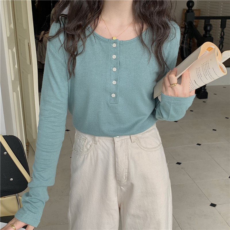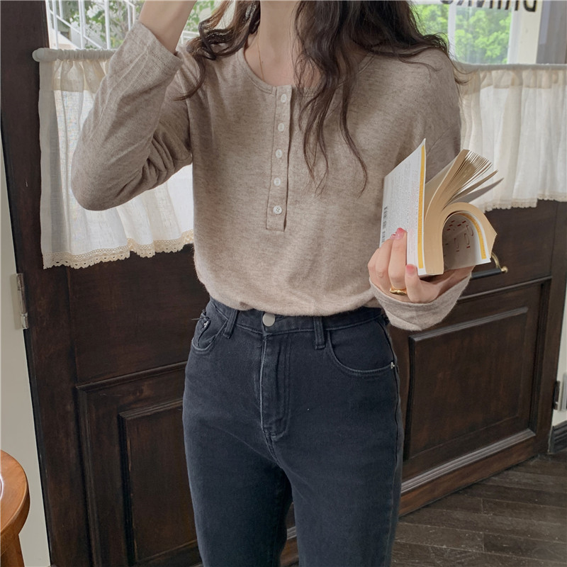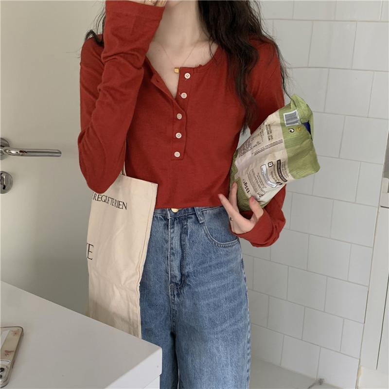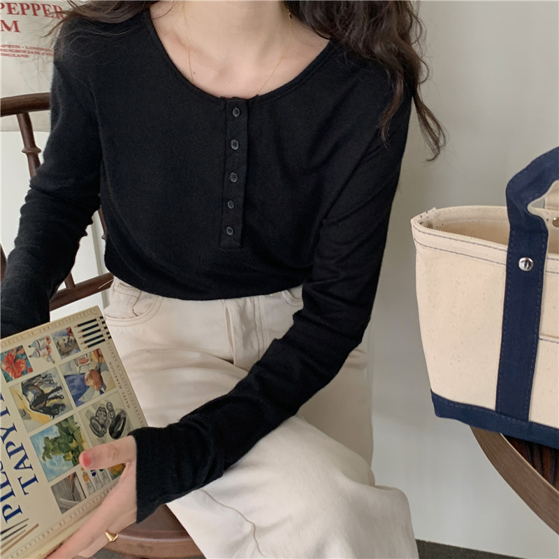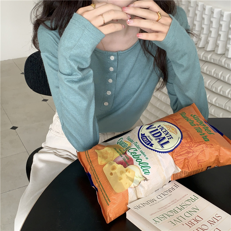 百搭簡約紐釦針織衫女秋季2025新款純色外穿內搭顯瘦打底上衣ins