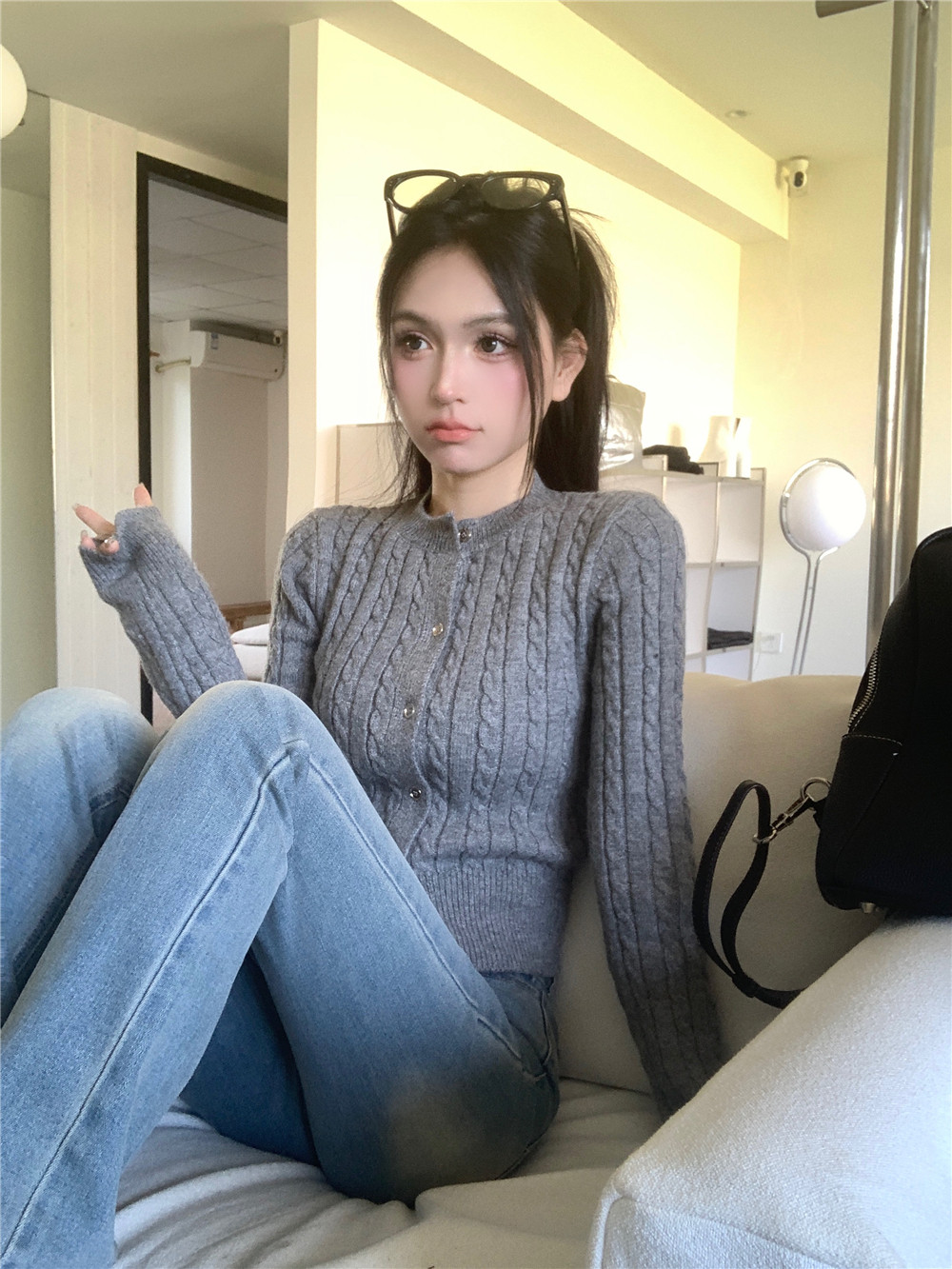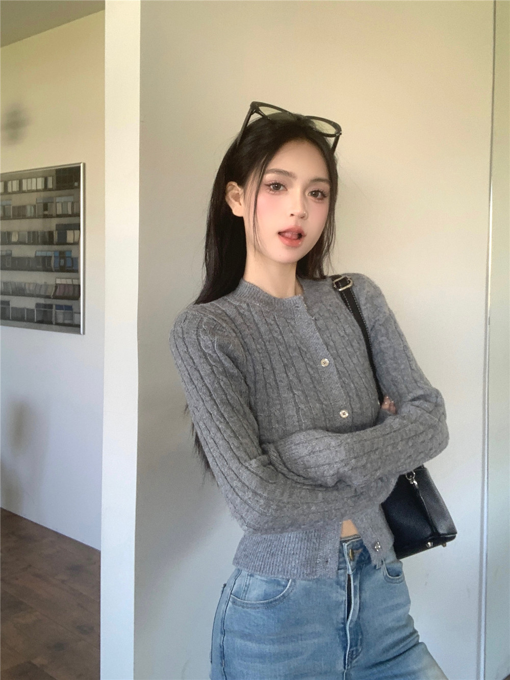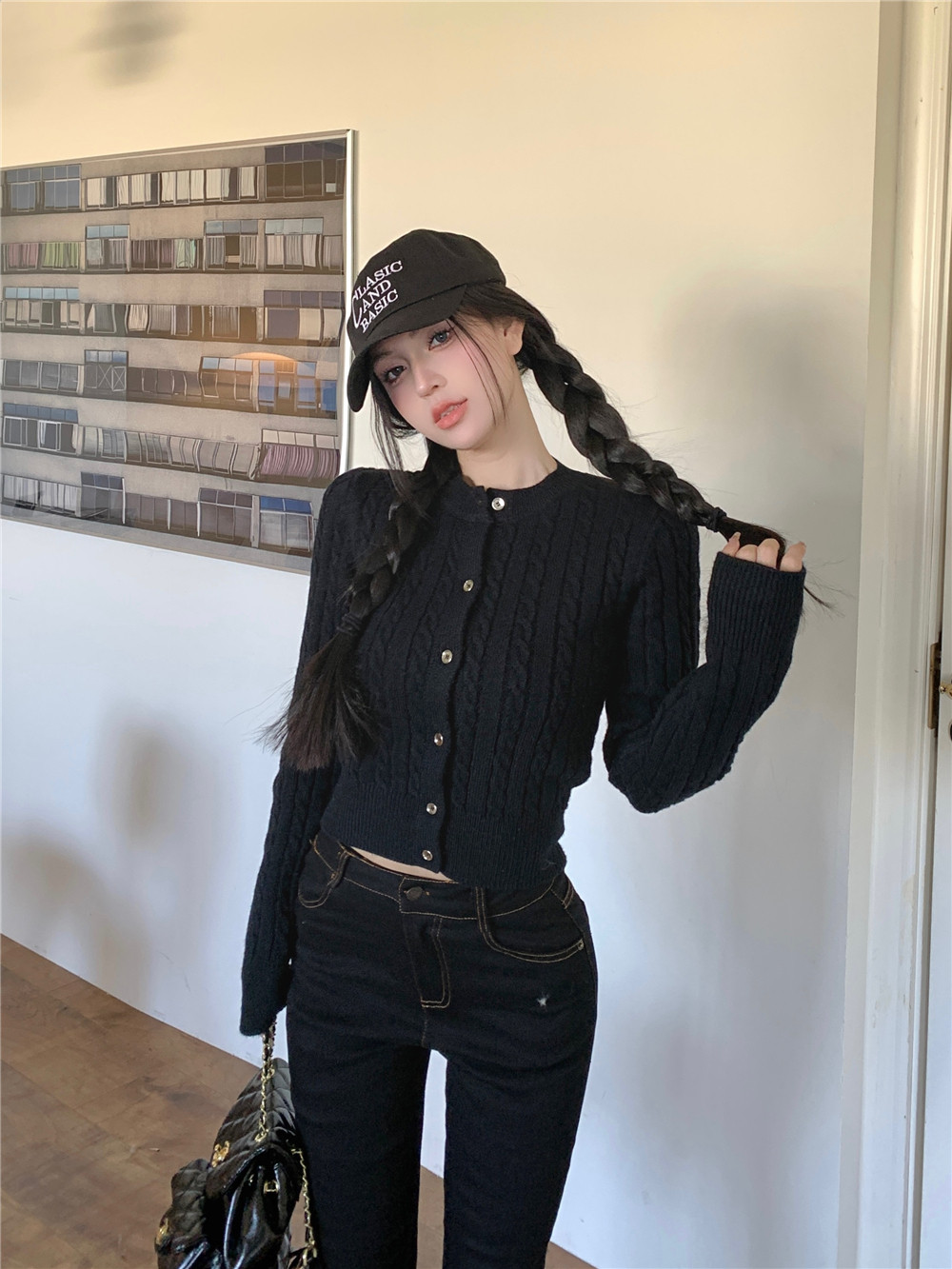 韓系麻花復古初春針織開衫短款外搭2026新款春季小個子毛衣外套女