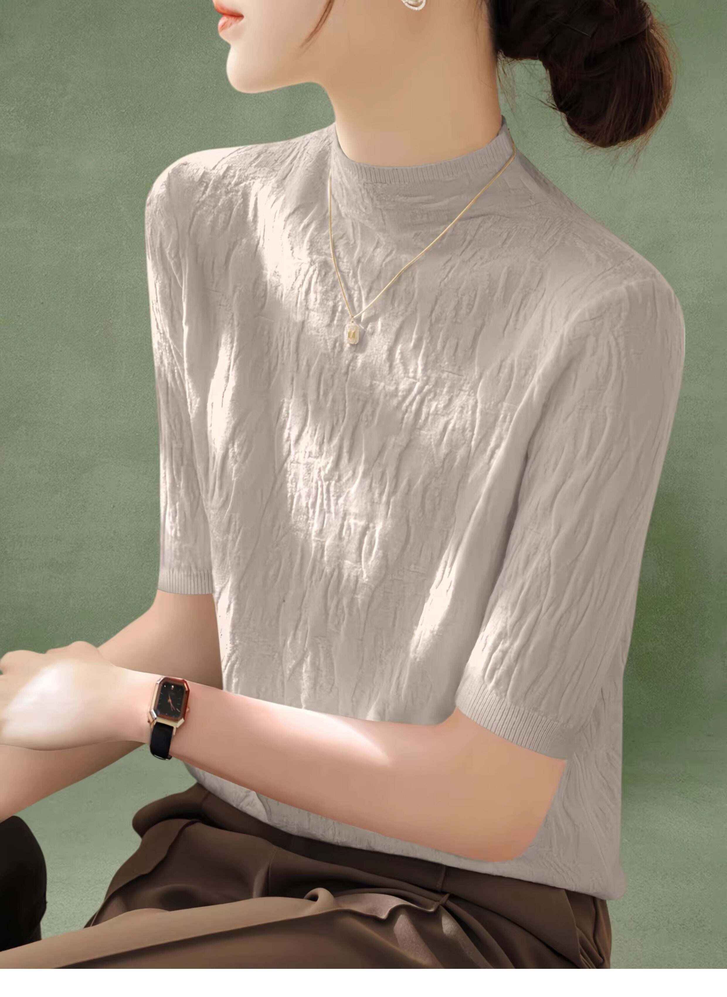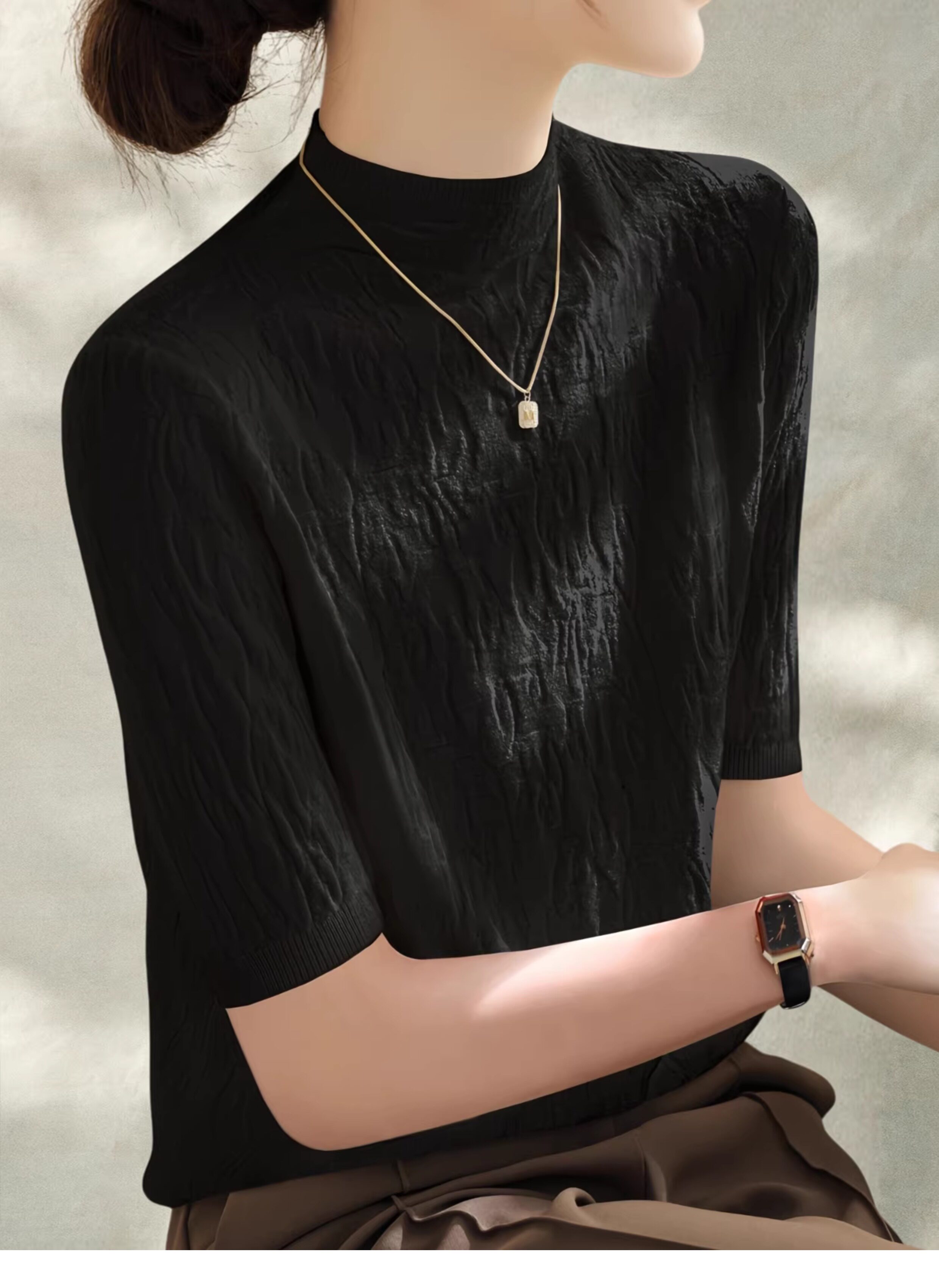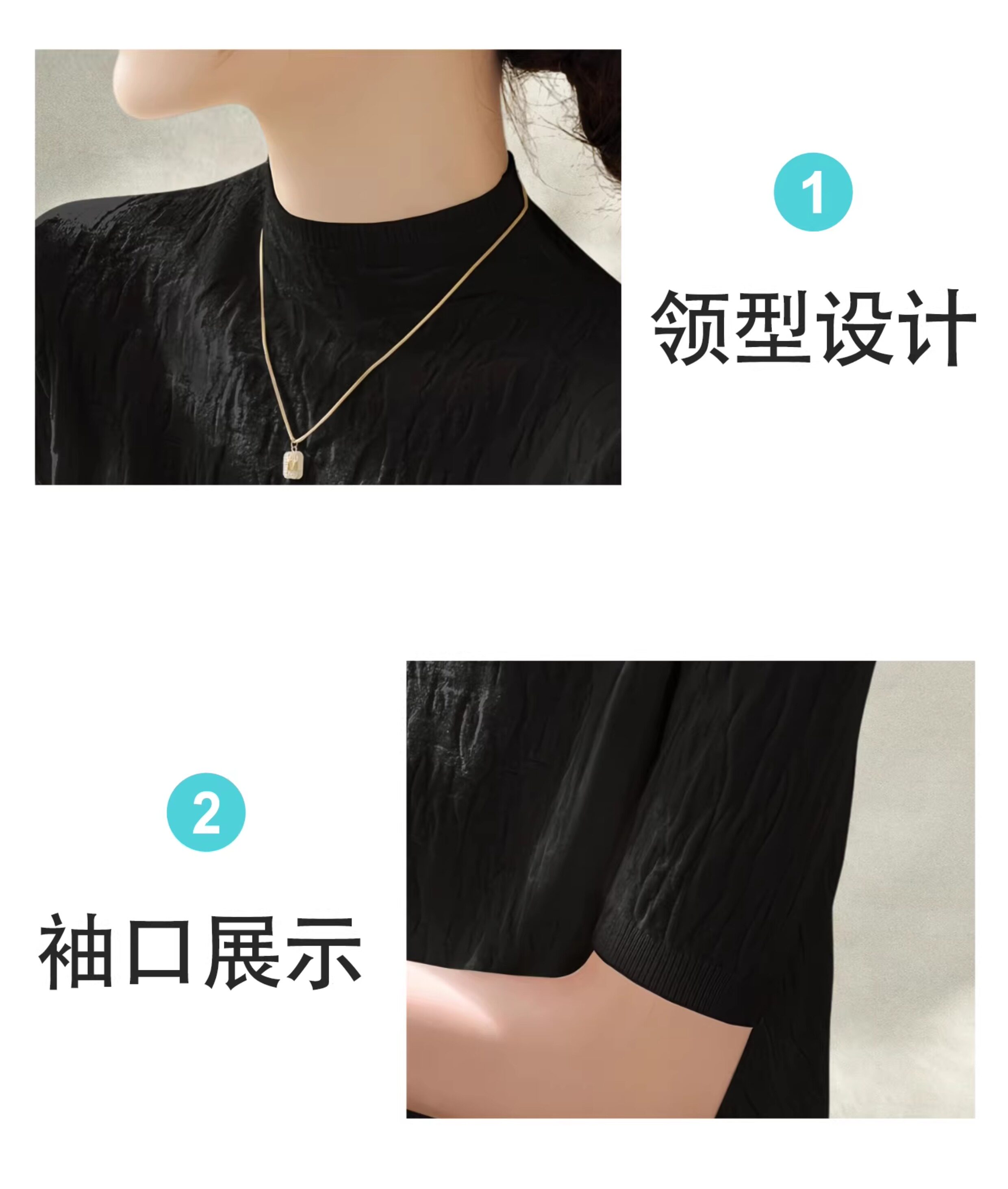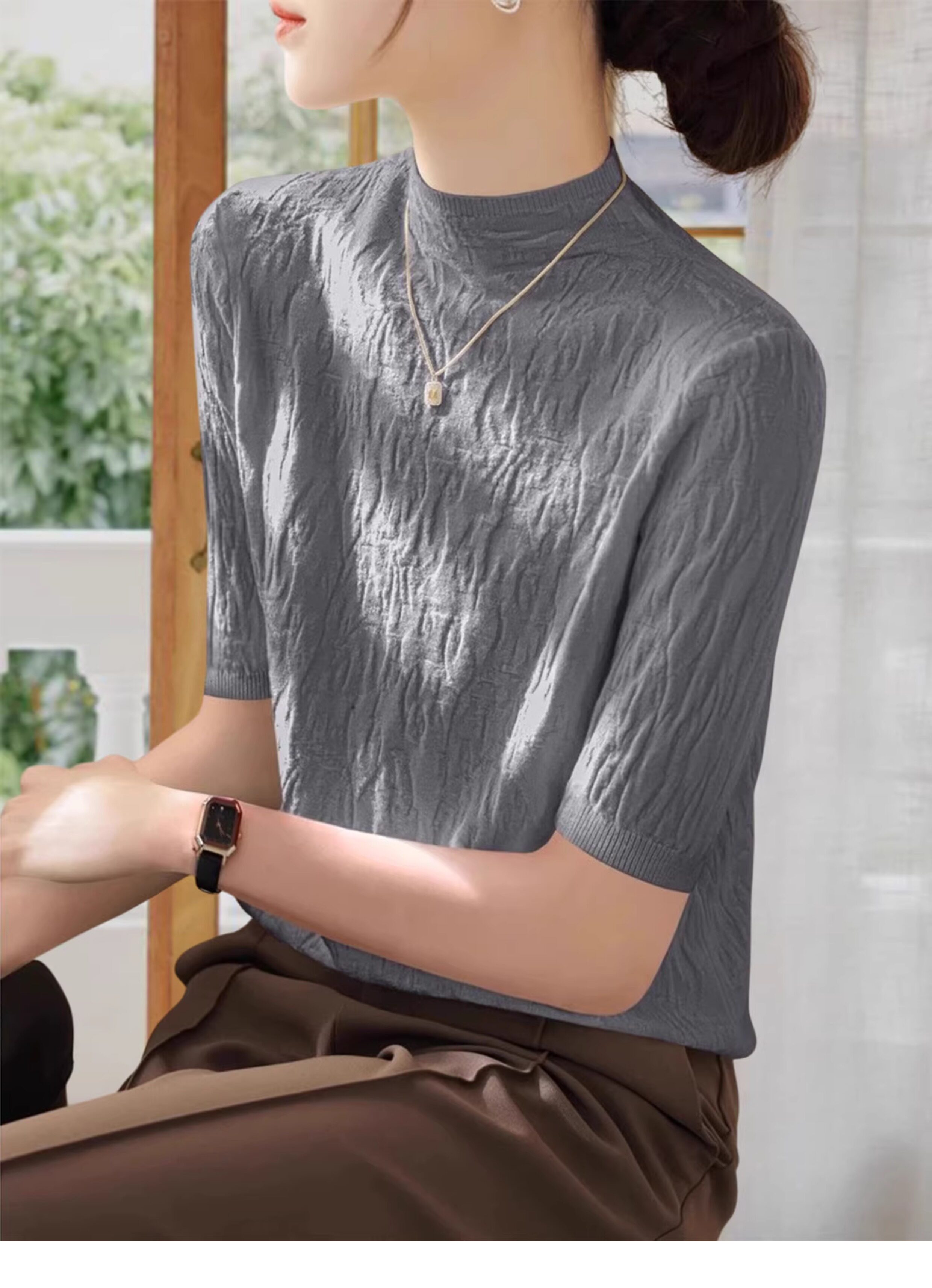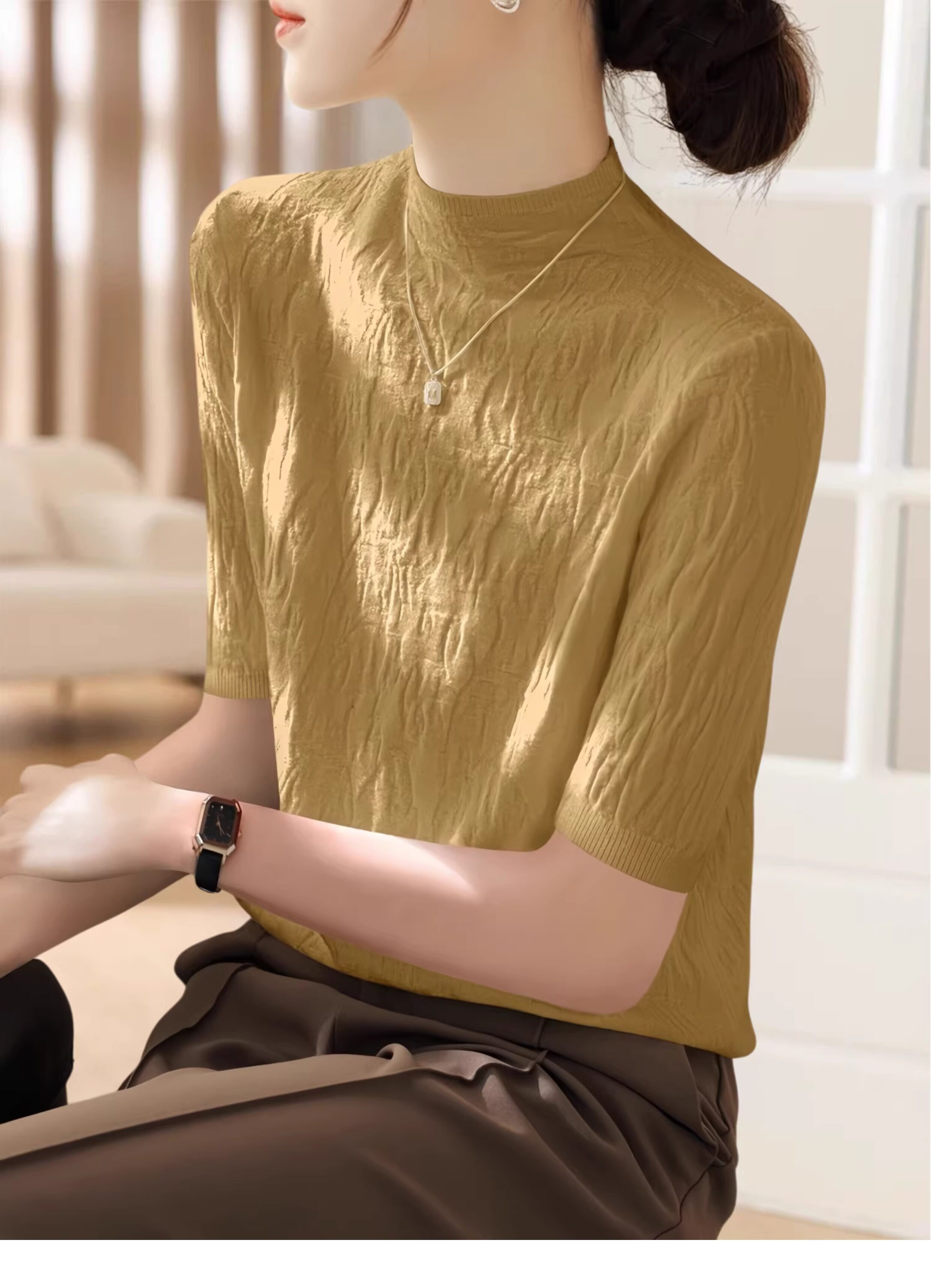 Basic House/百家好法式白色中袖針織打底衫女2026春夏半高領上衣