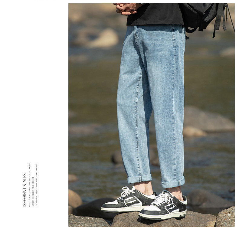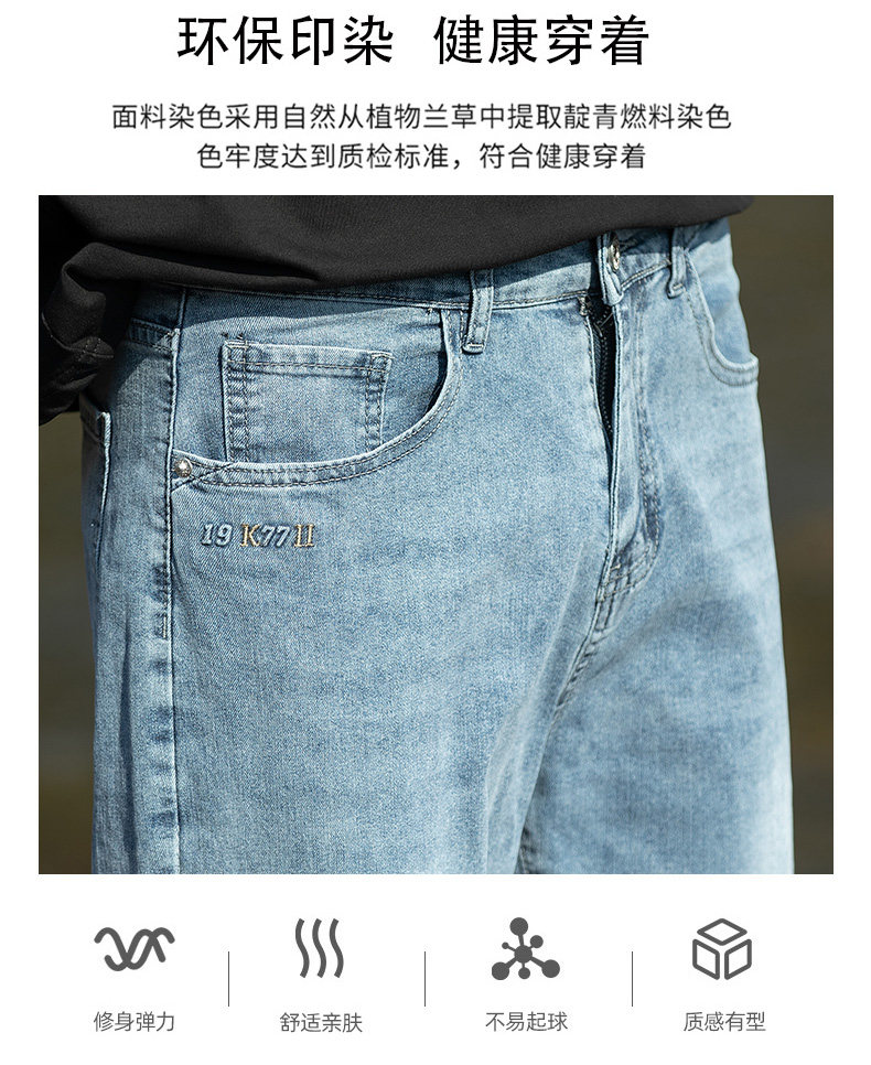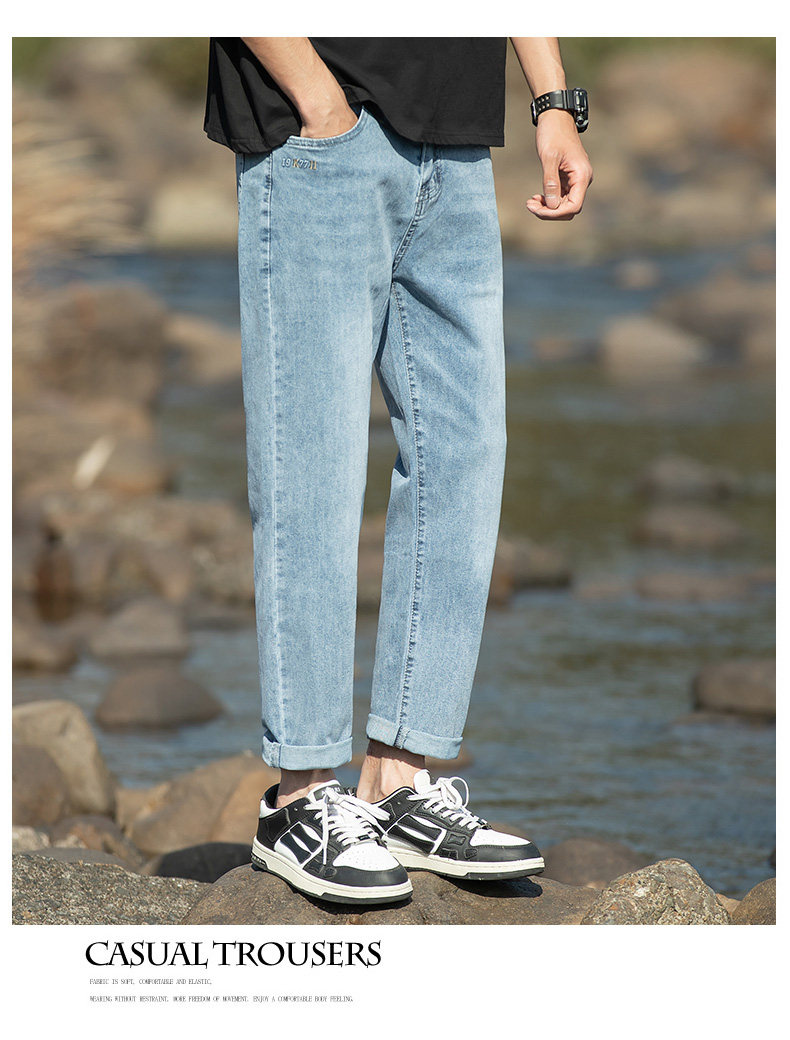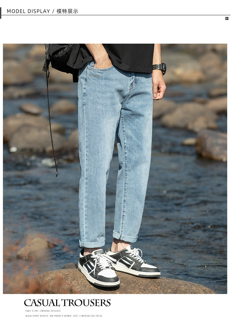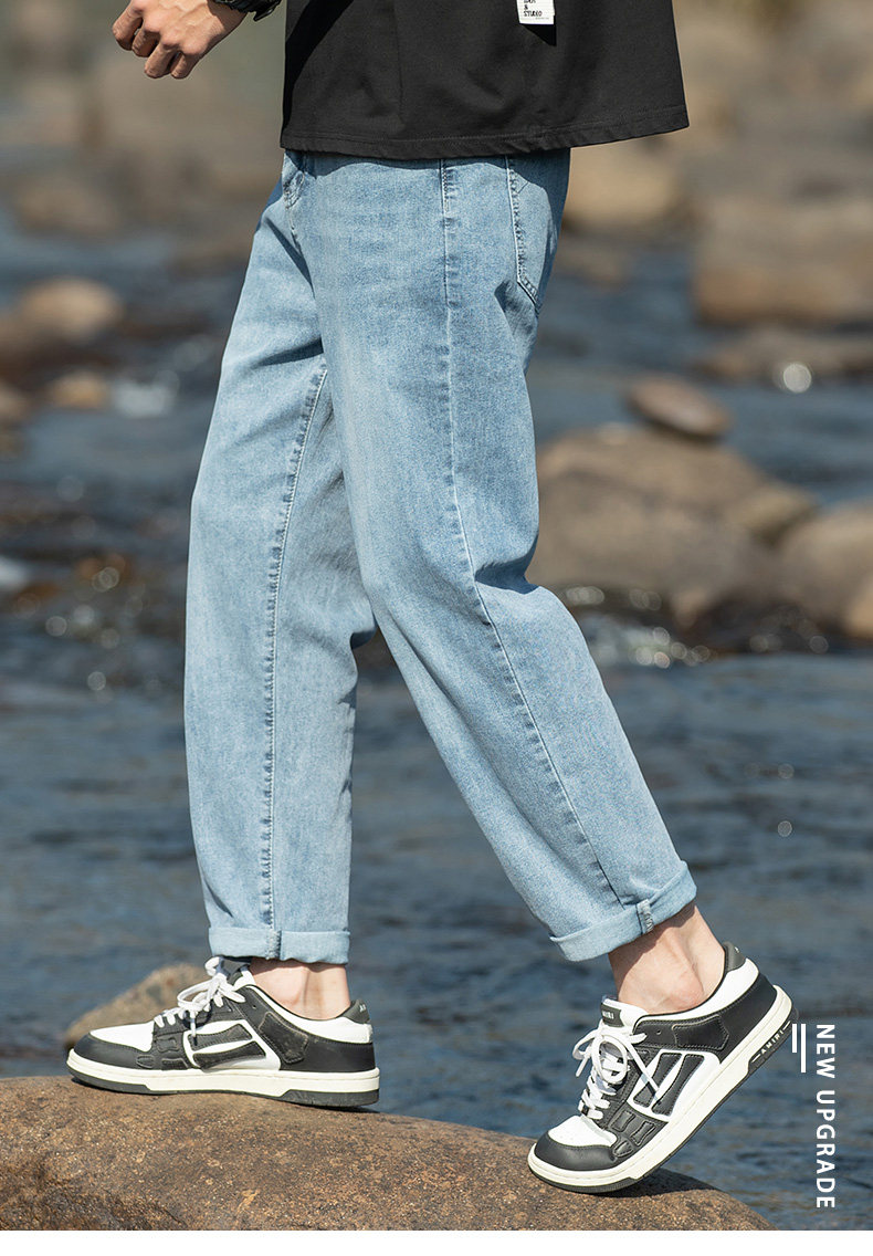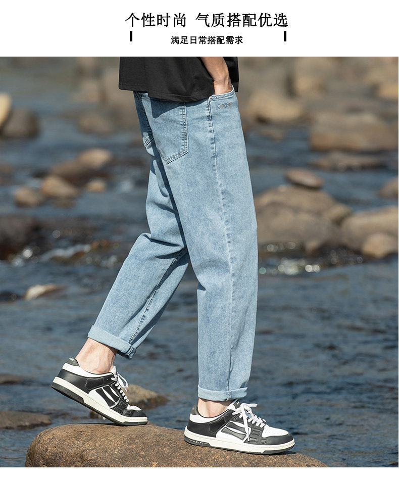 真維斯淺藍色牛仔褲男士夏季寬鬆直筒2026新款錐形休閒九分褲子男