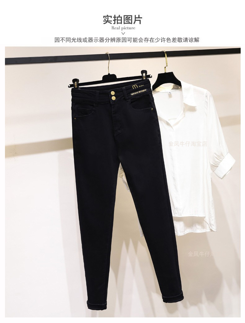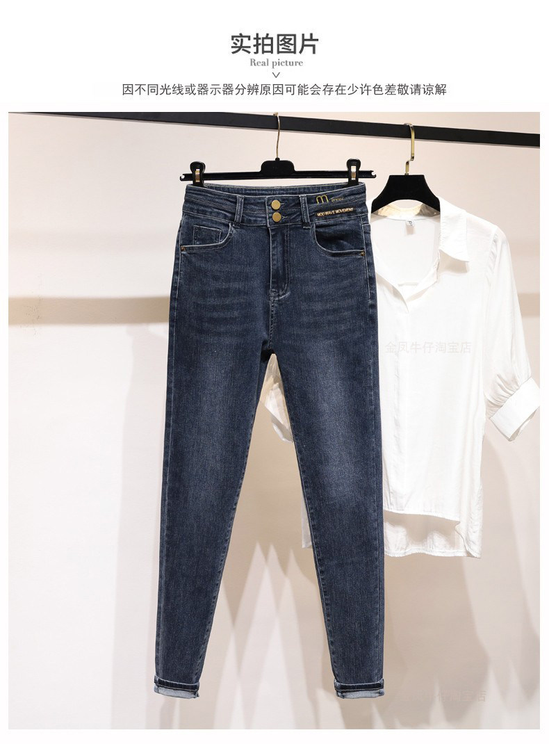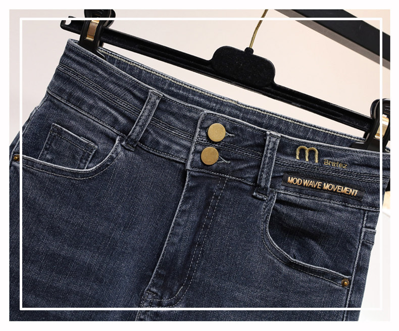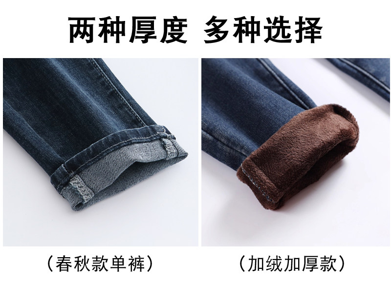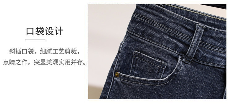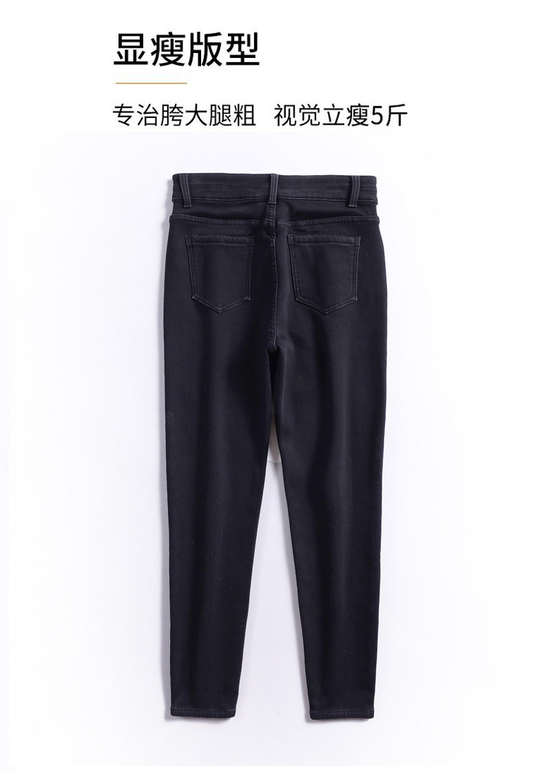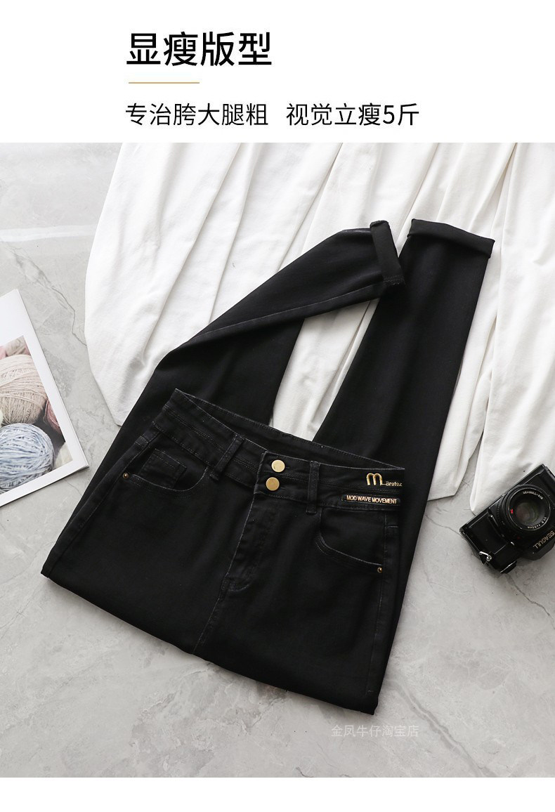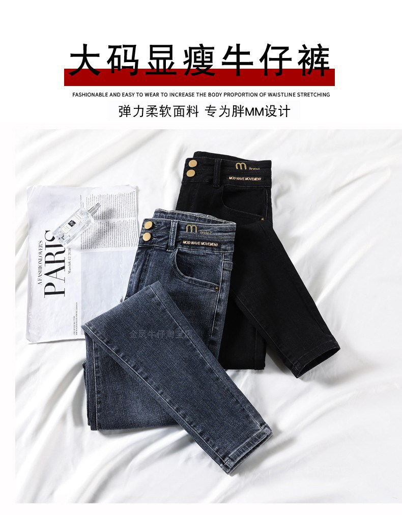 大碼彈力牛仔褲女加絨加厚顯瘦小腳褲胯寬大腿粗胖MM梨型身材褲子