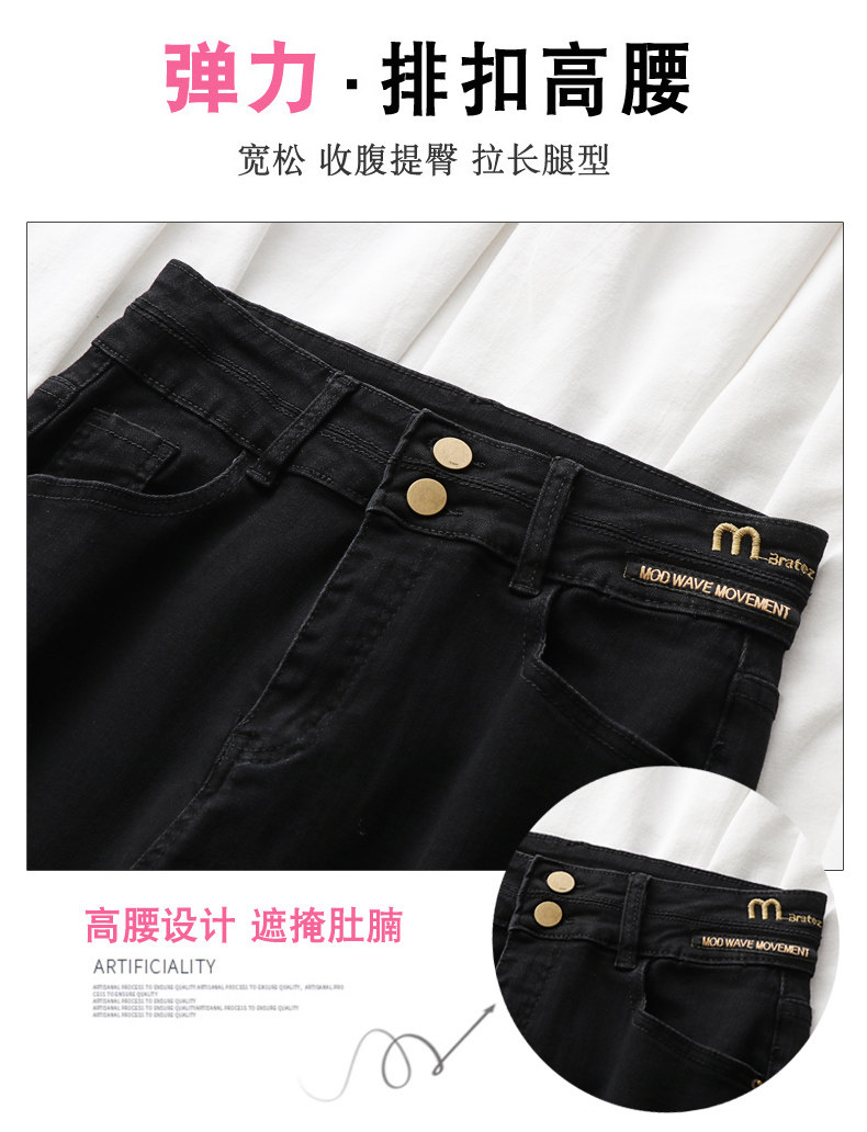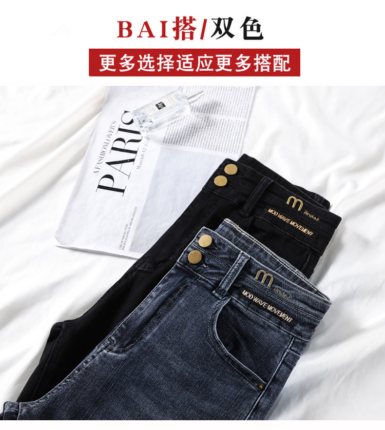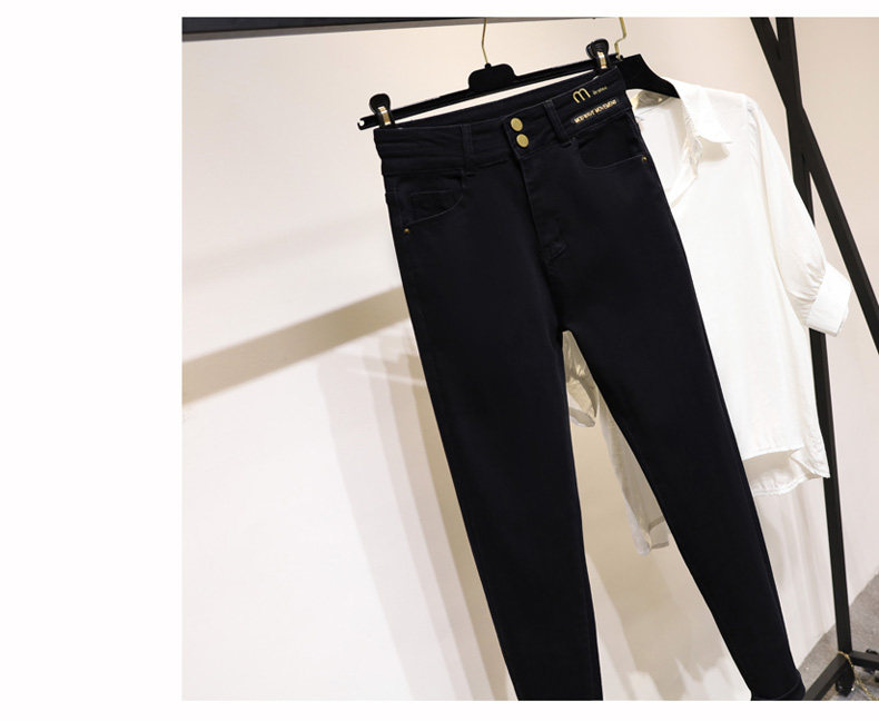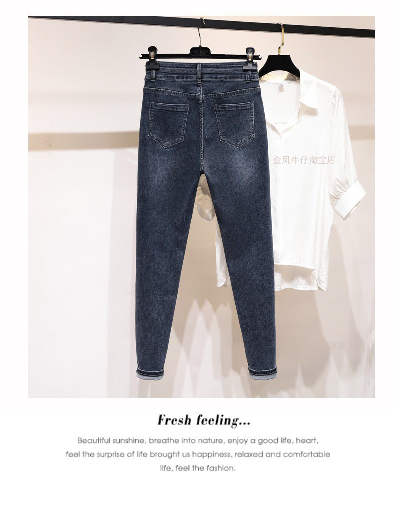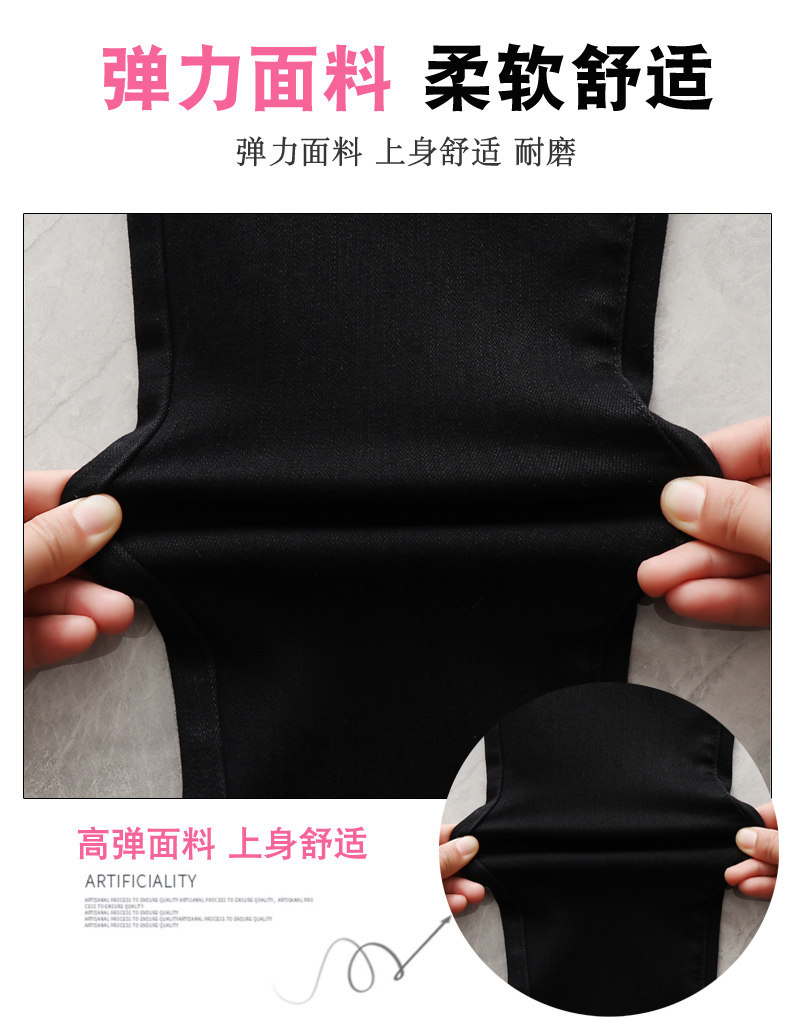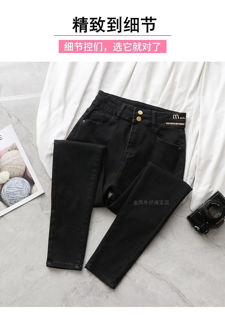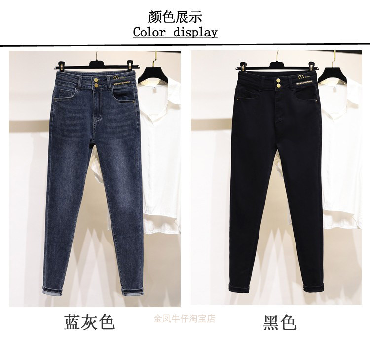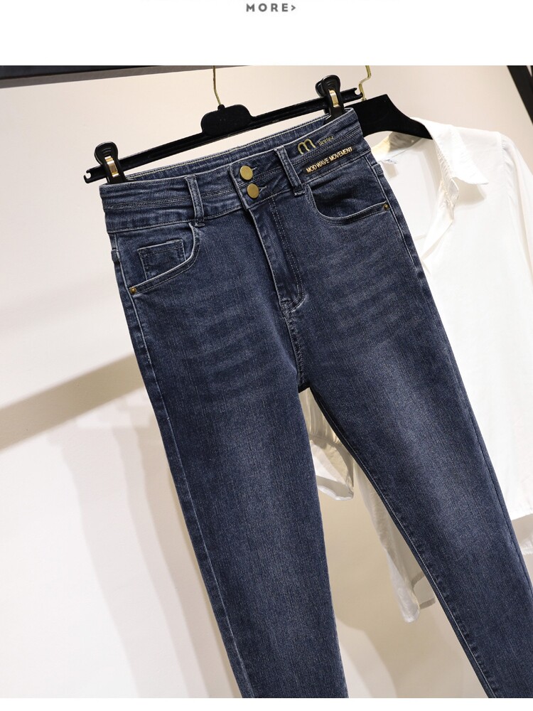 大碼彈力牛仔褲女加絨加厚顯瘦小腳褲胯寬大腿粗胖MM梨型身材褲子