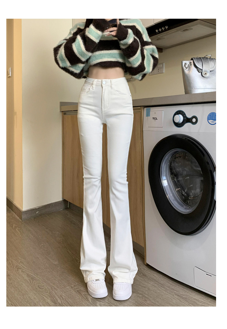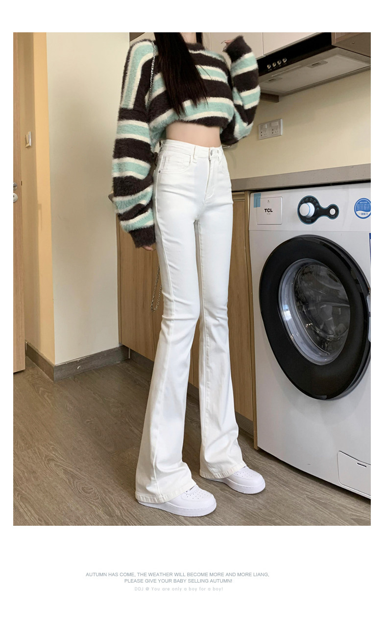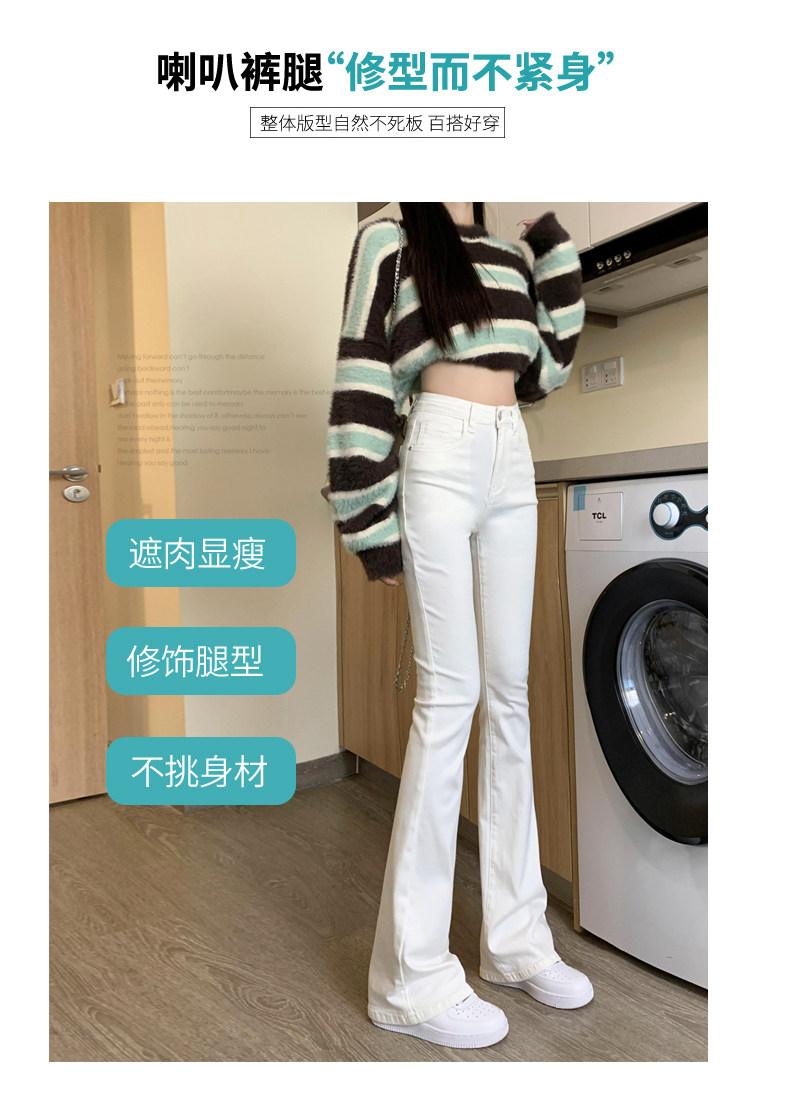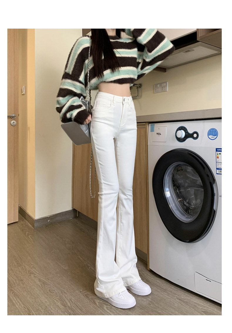 韓國白色微喇叭牛仔褲女修身彈力2026春秋加絨高腰顯瘦濶腿馬蹄褲