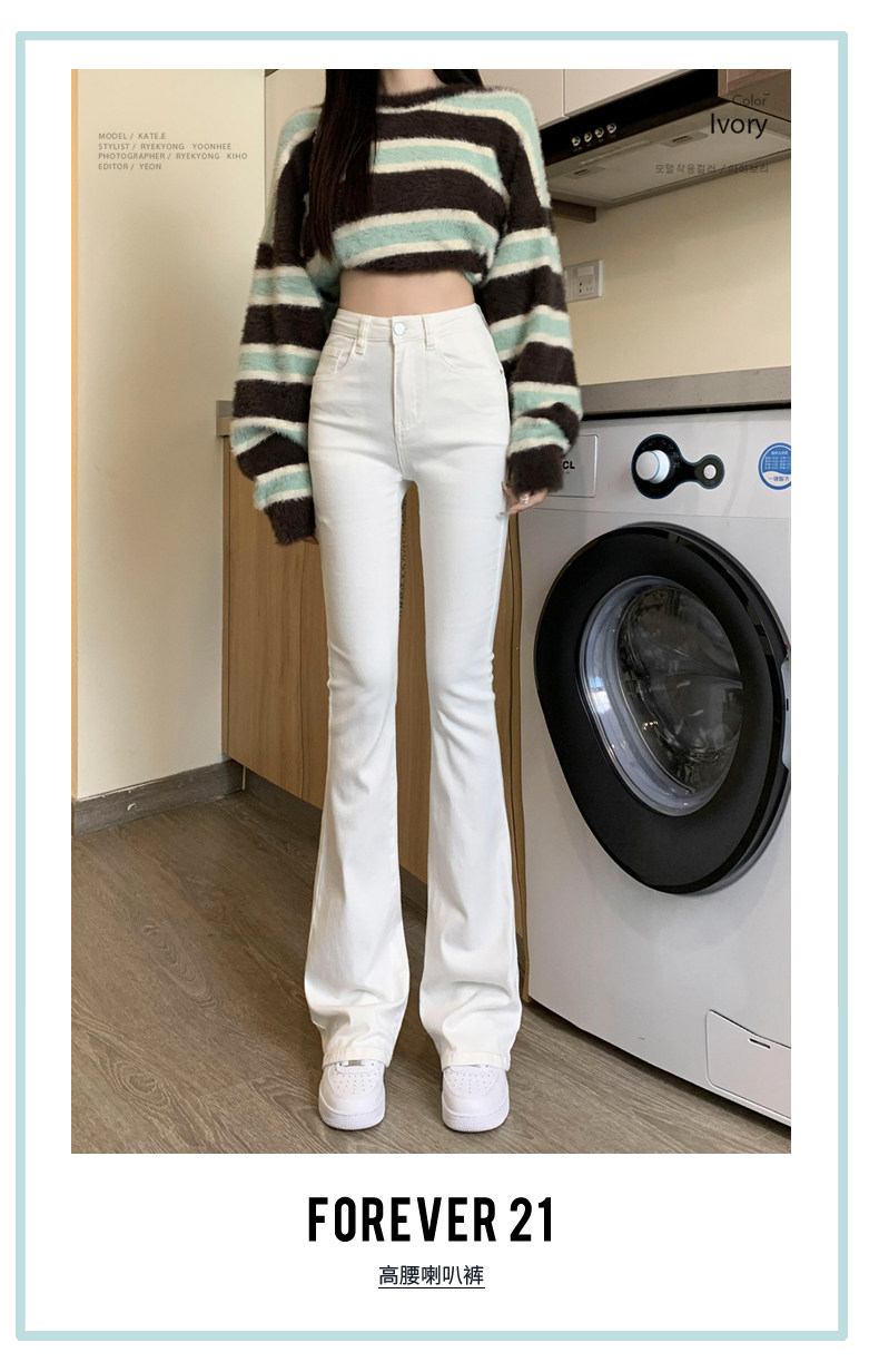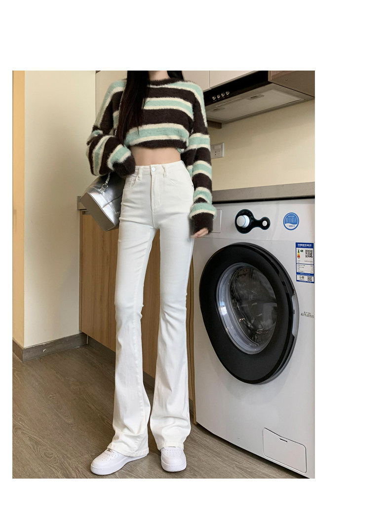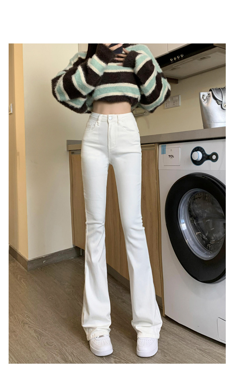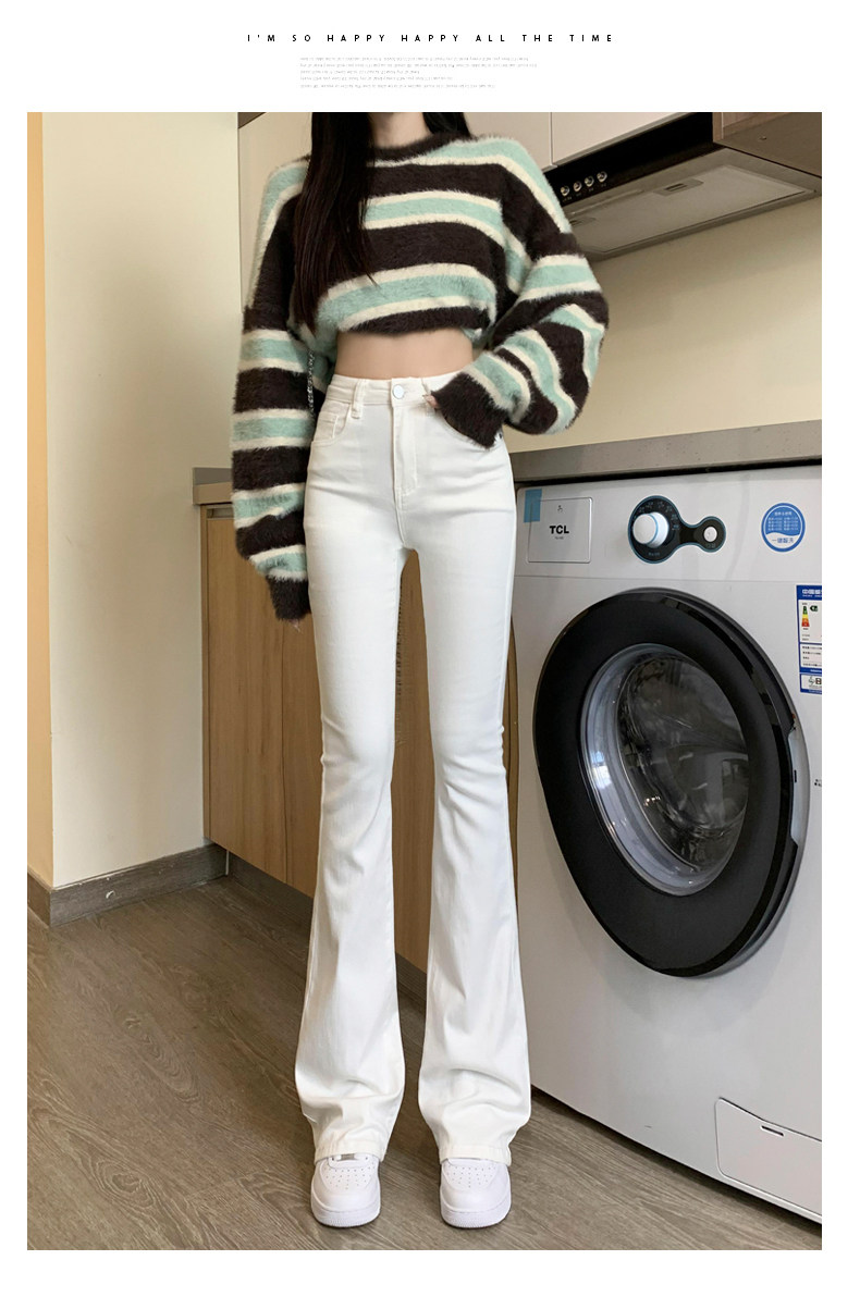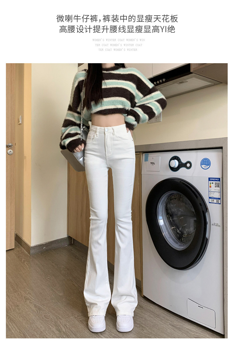 韓國白色微喇叭牛仔褲女修身彈力2026春秋加絨高腰顯瘦濶腿馬蹄褲