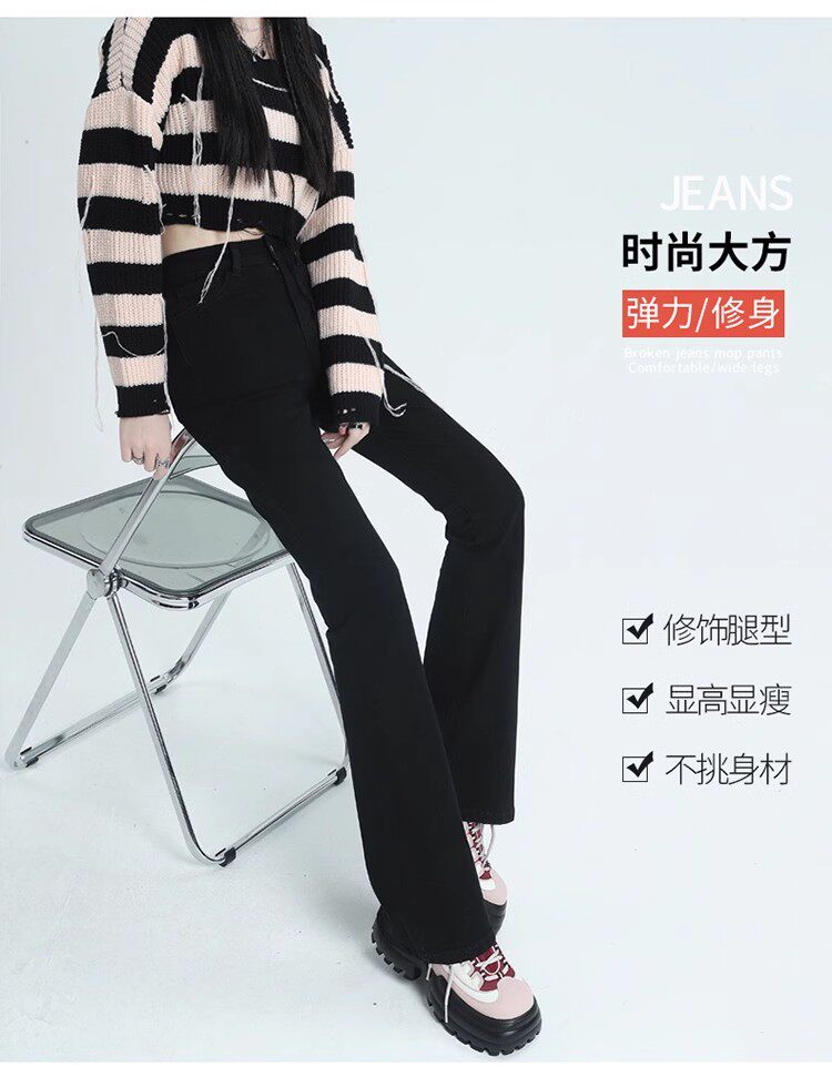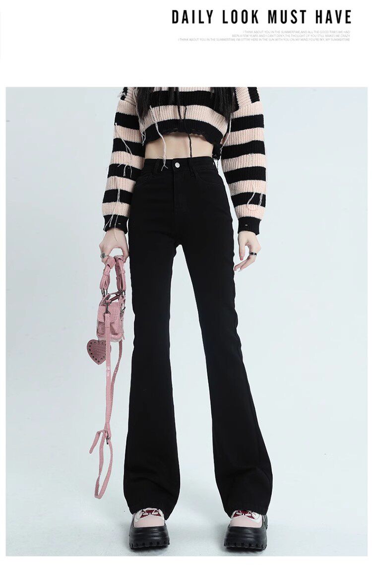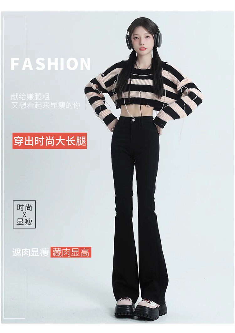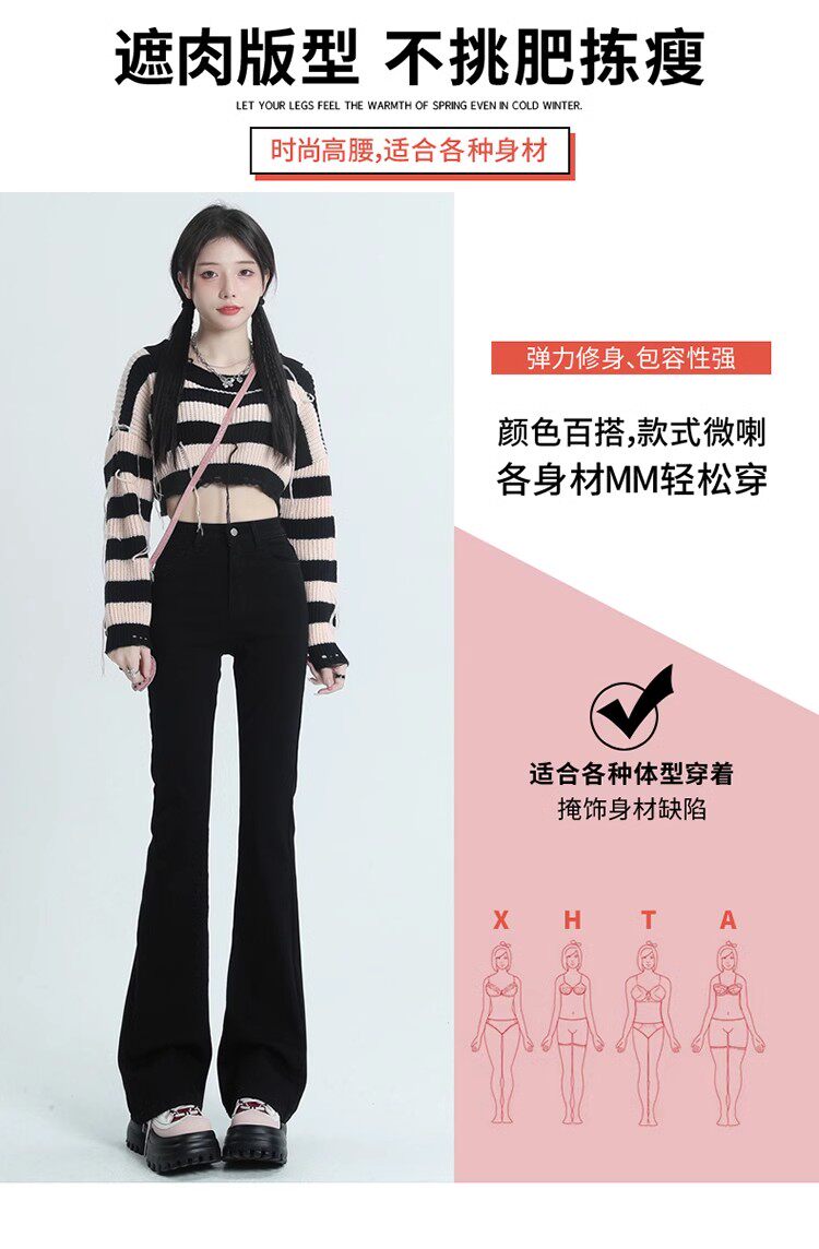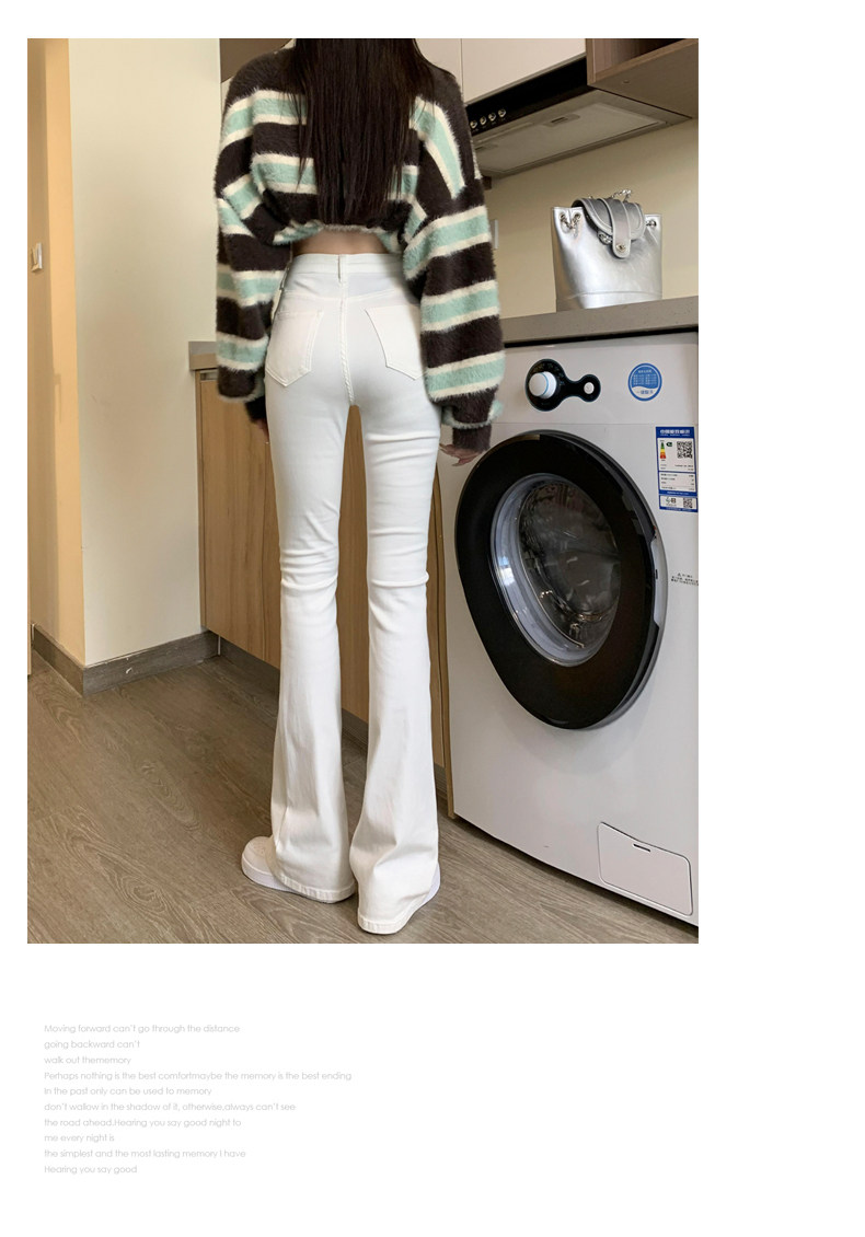 韓國白色微喇叭牛仔褲女修身彈力2026春秋加絨高腰顯瘦濶腿馬蹄褲