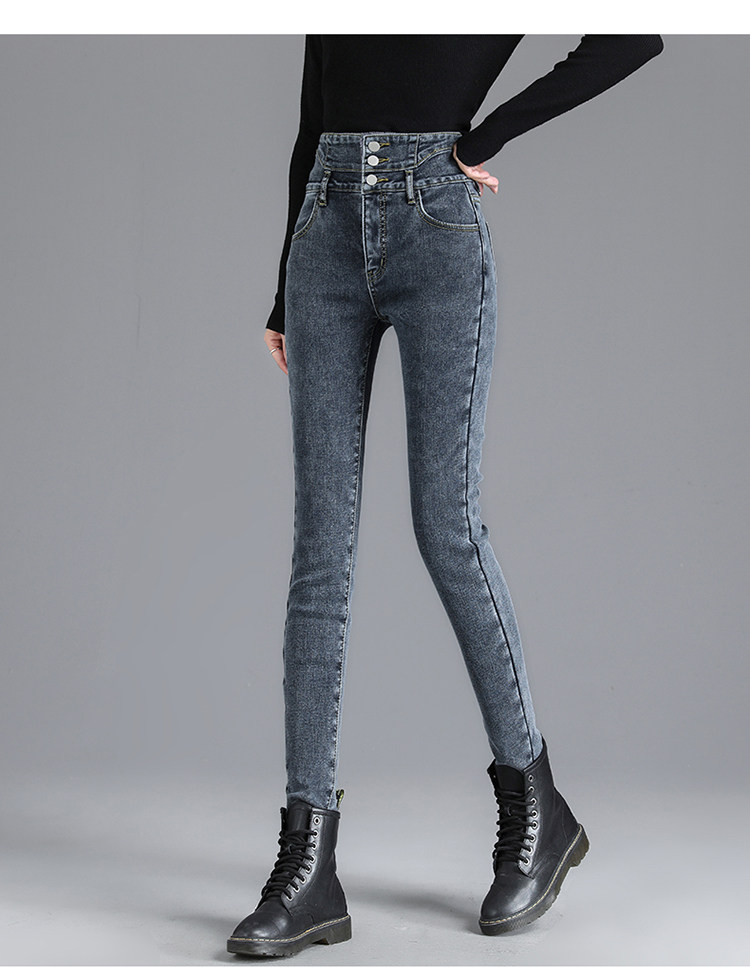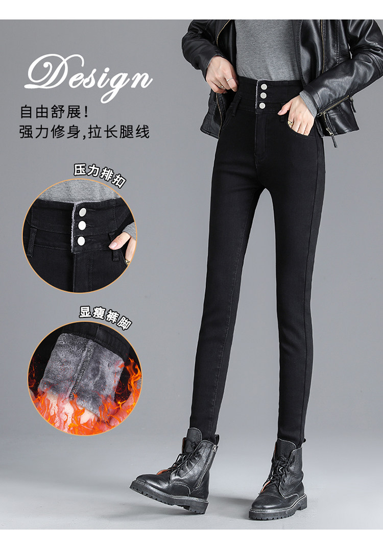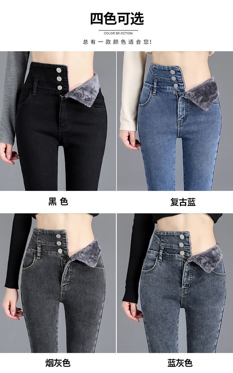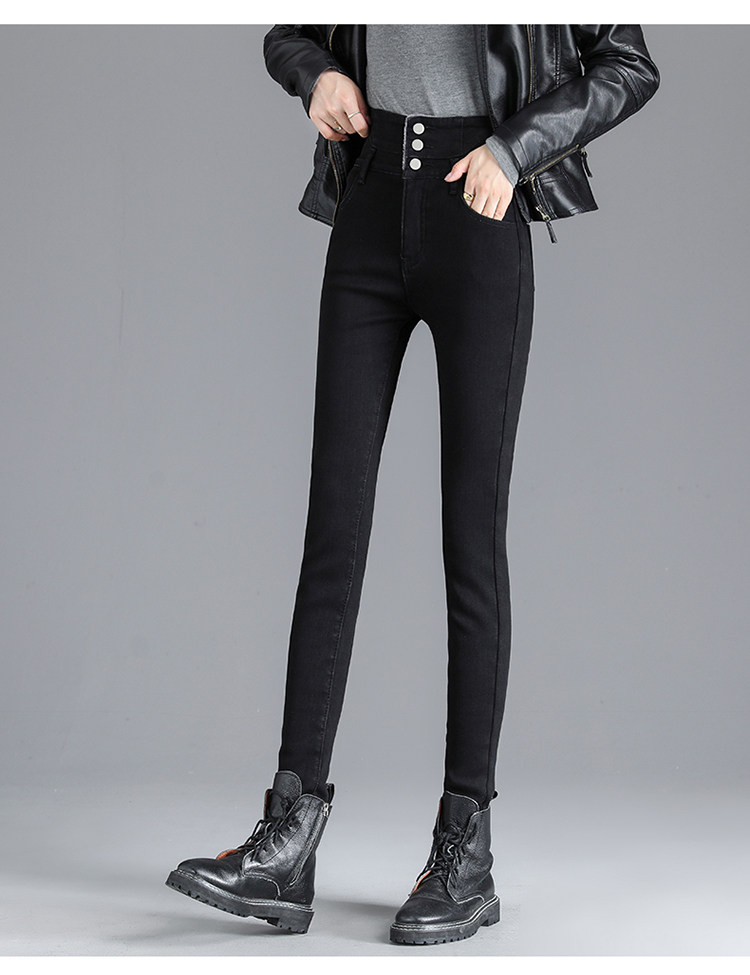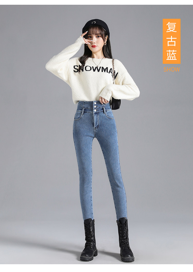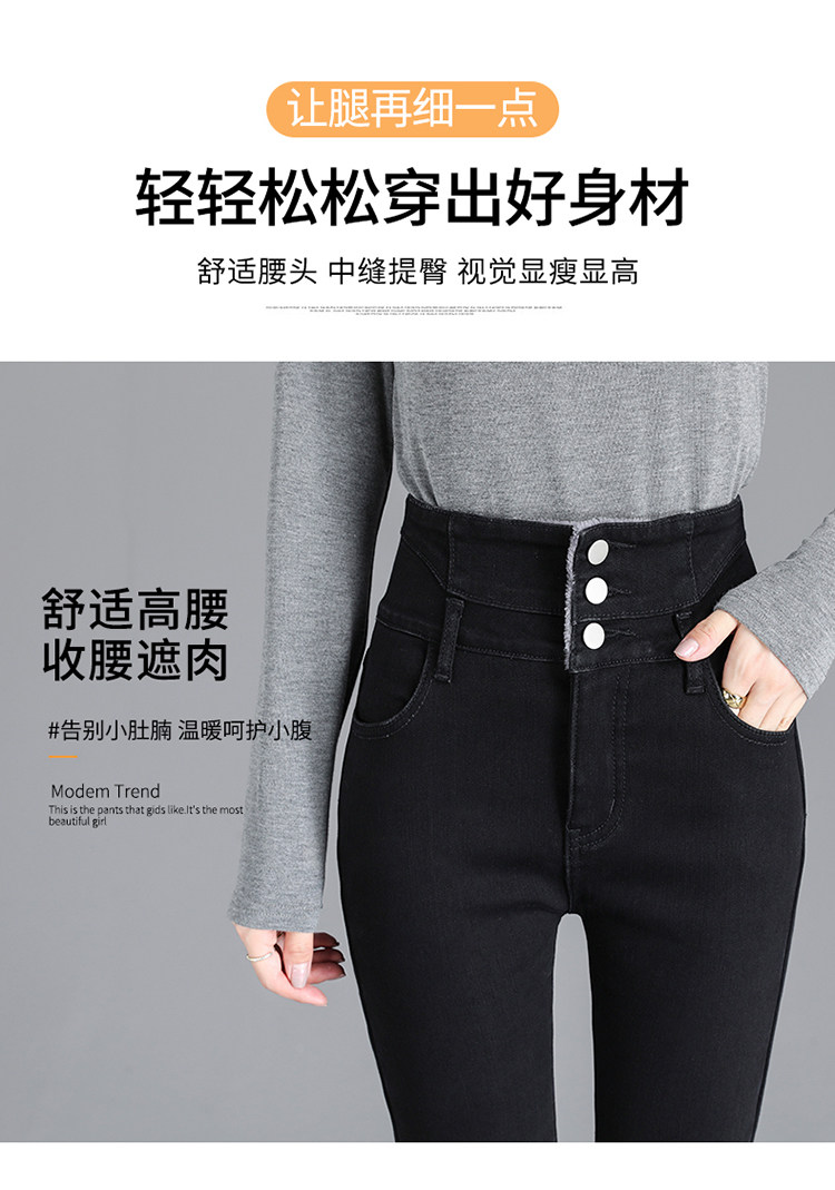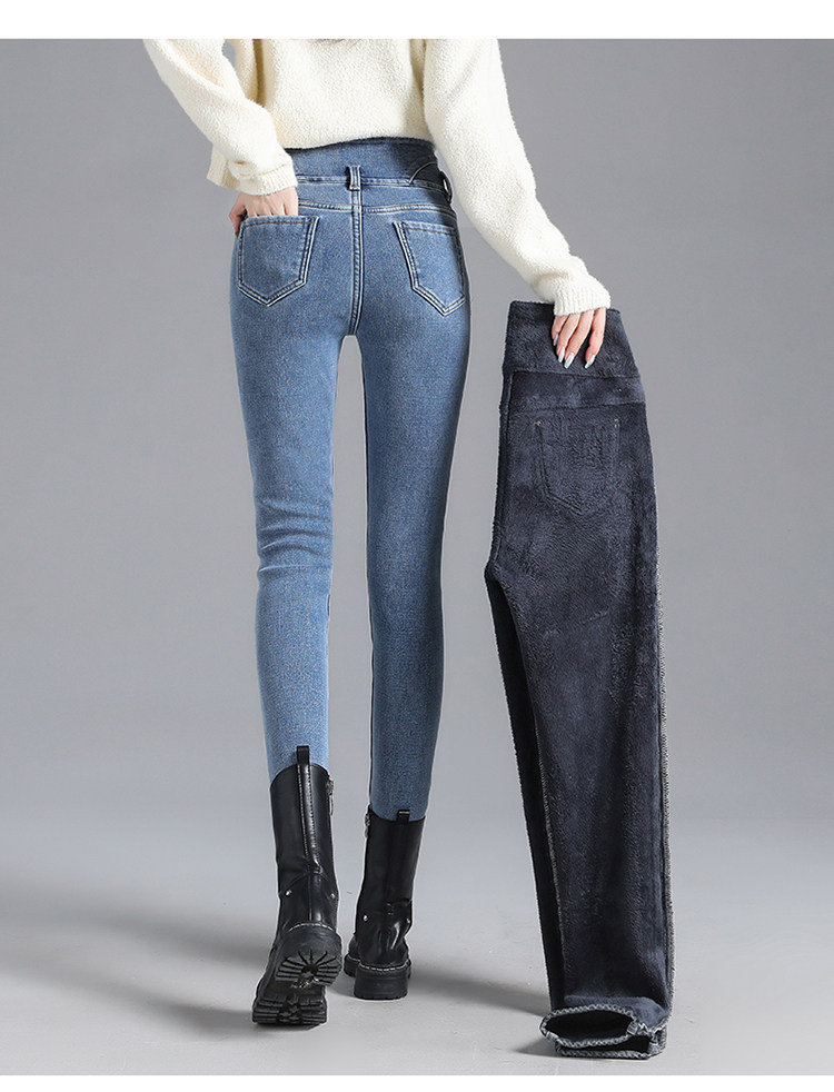 2025年修身顯瘦秋冬女褲超高腰加絨牛仔褲女彈力緊身鉛筆小腳褲子