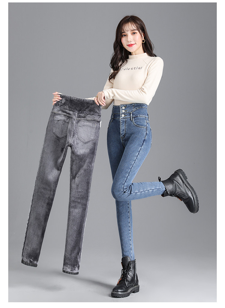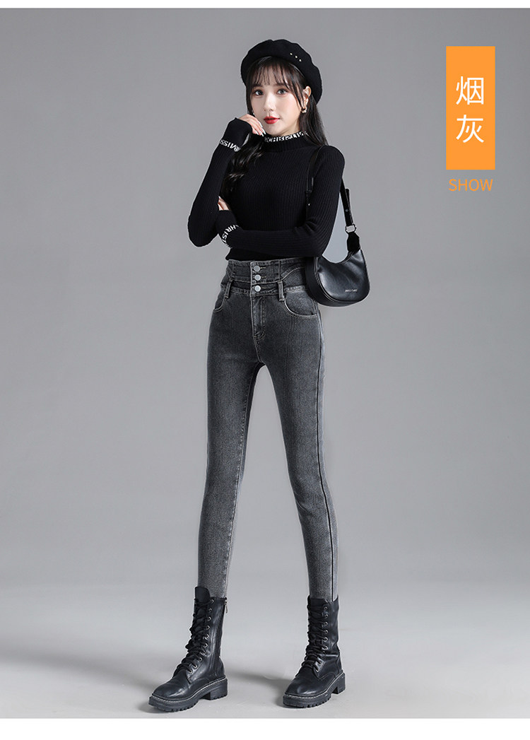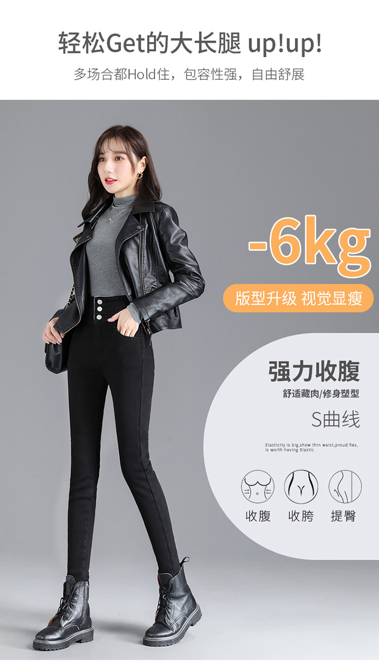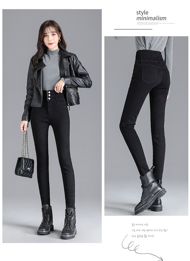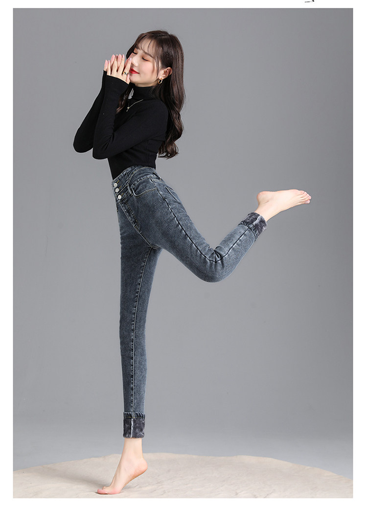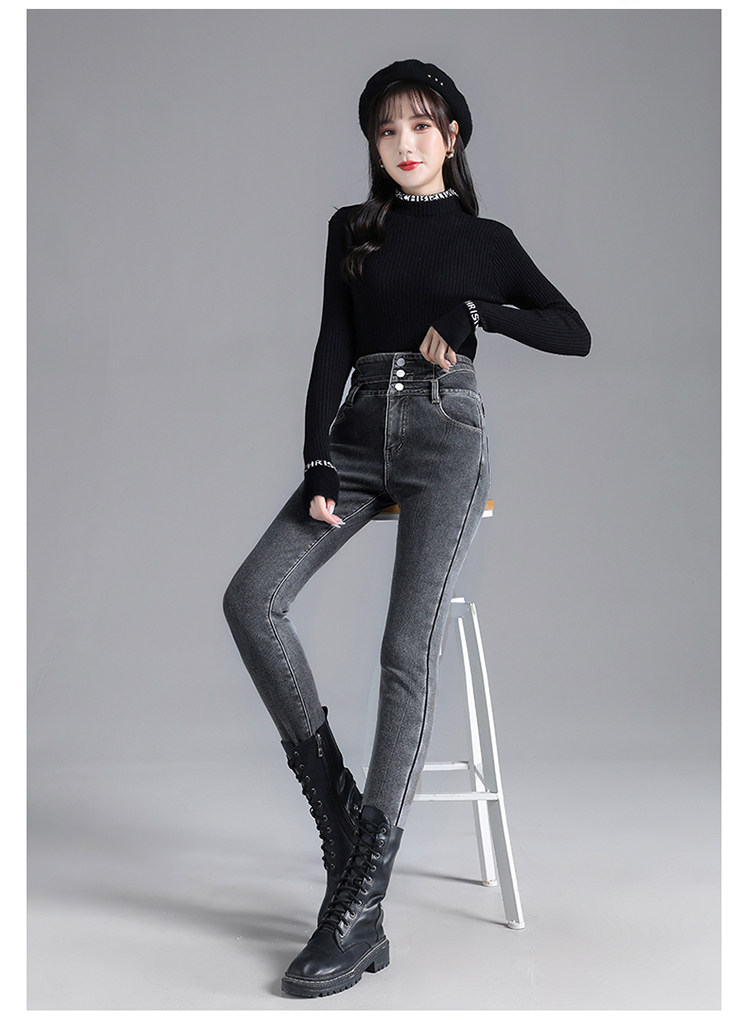 2025年修身顯瘦秋冬女褲超高腰加絨牛仔褲女彈力緊身鉛筆小腳褲子