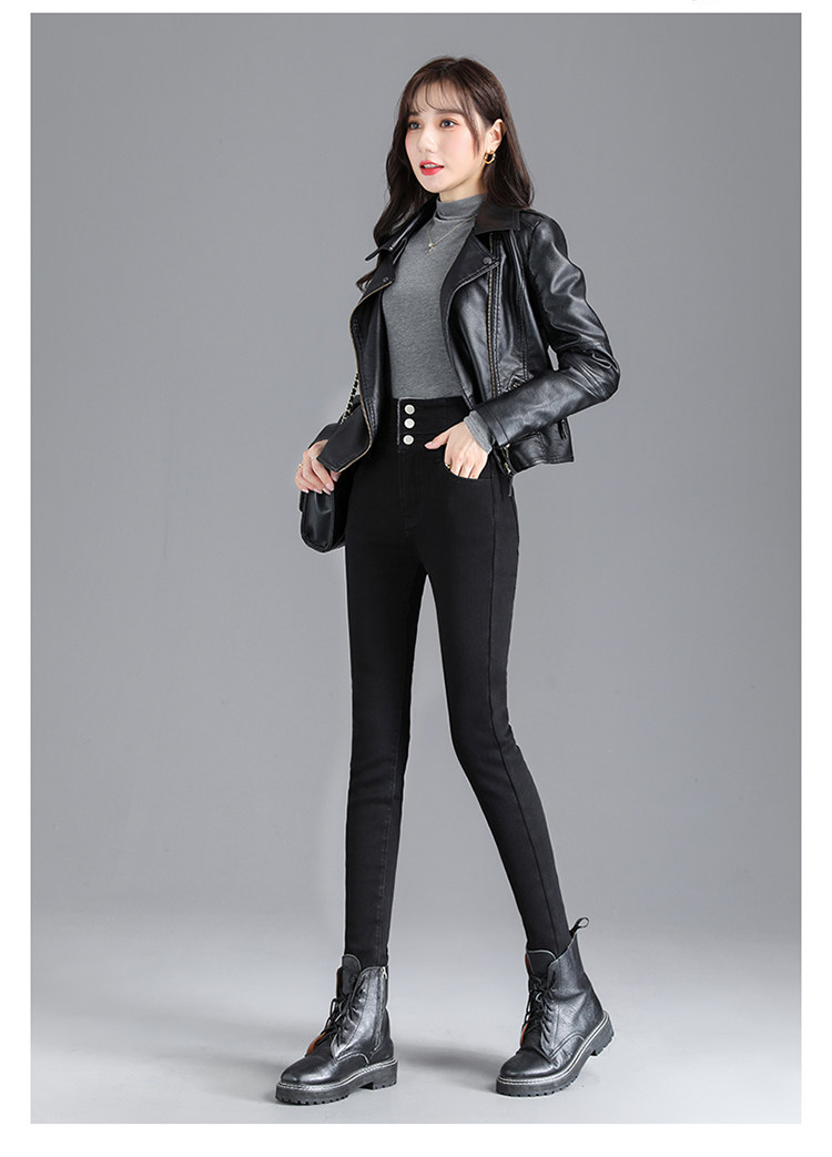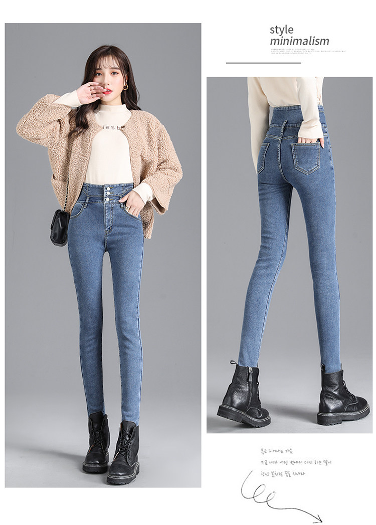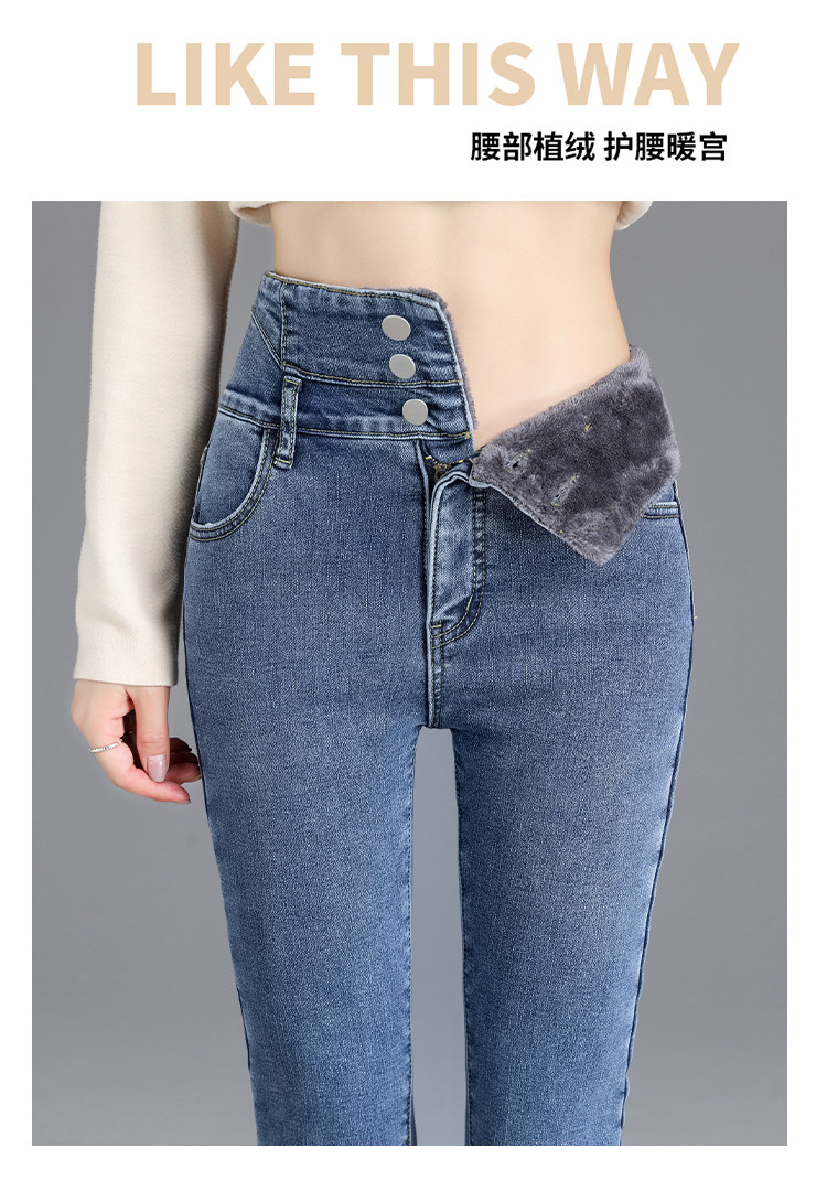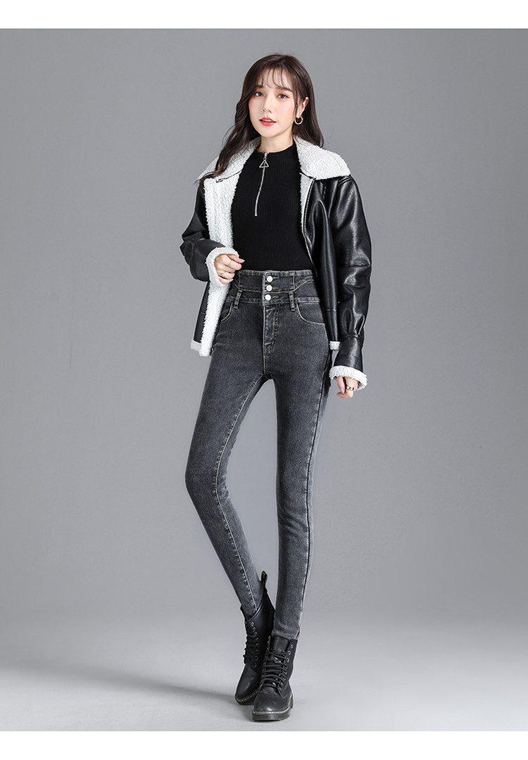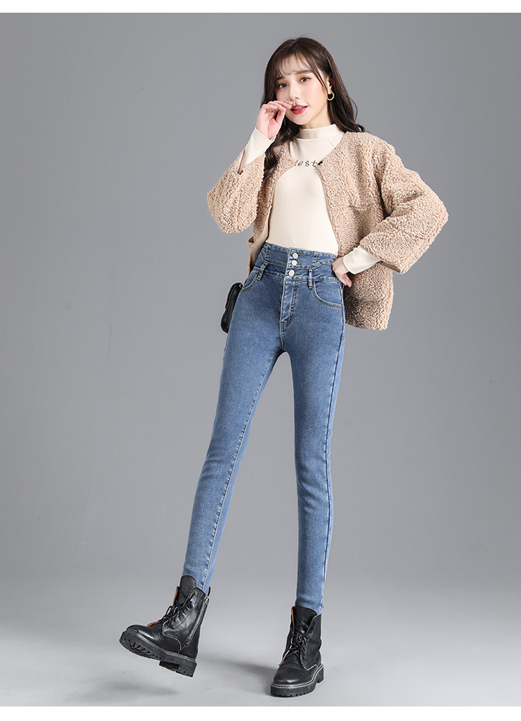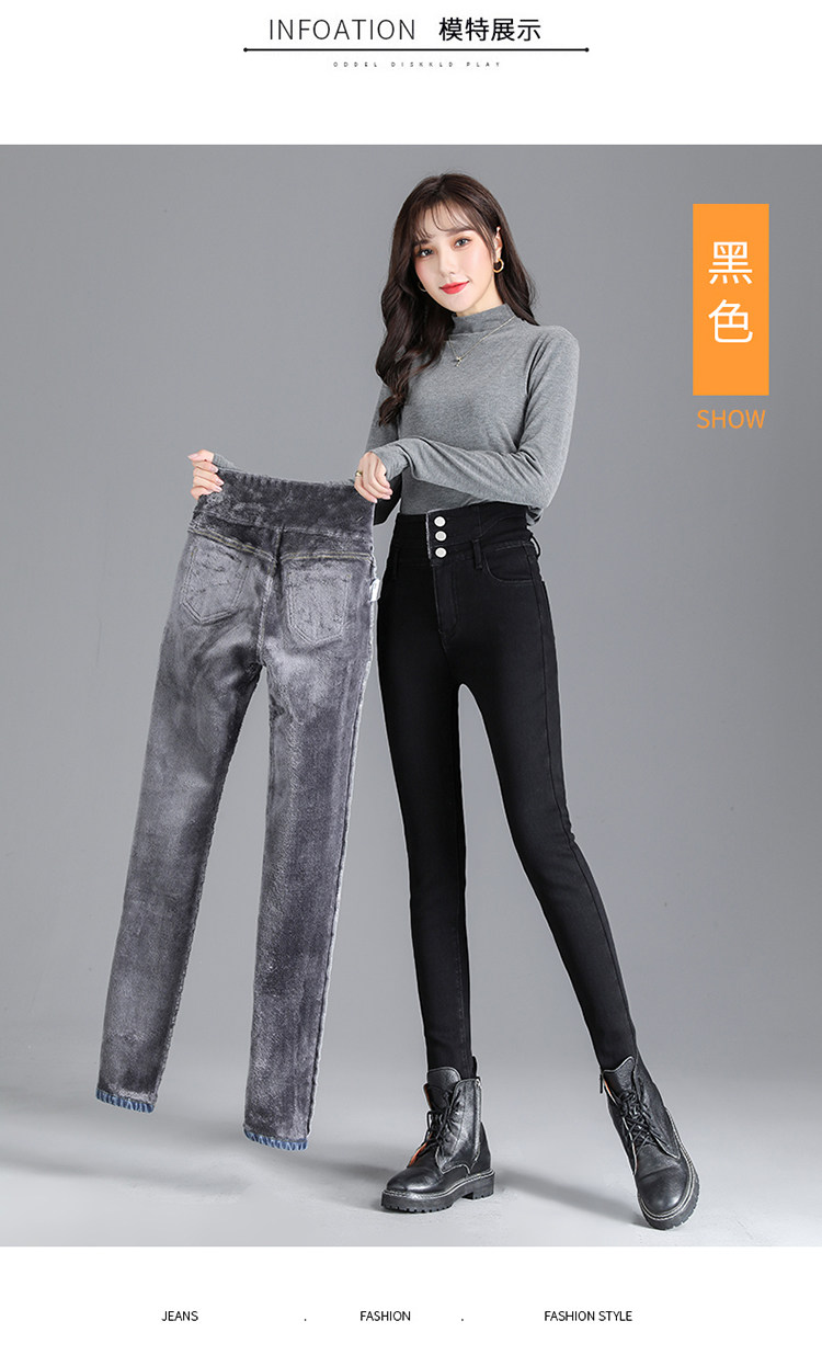2025年修身顯瘦秋冬女褲超高腰加絨牛仔褲女彈力緊身鉛筆小腳褲子