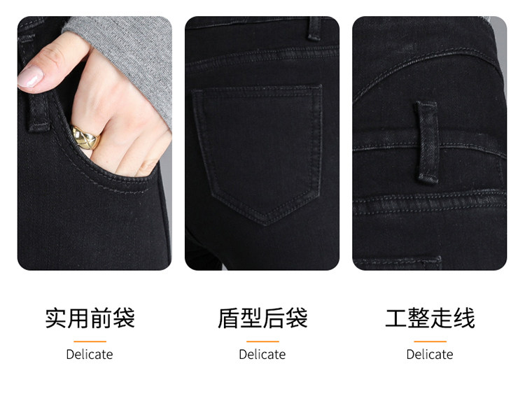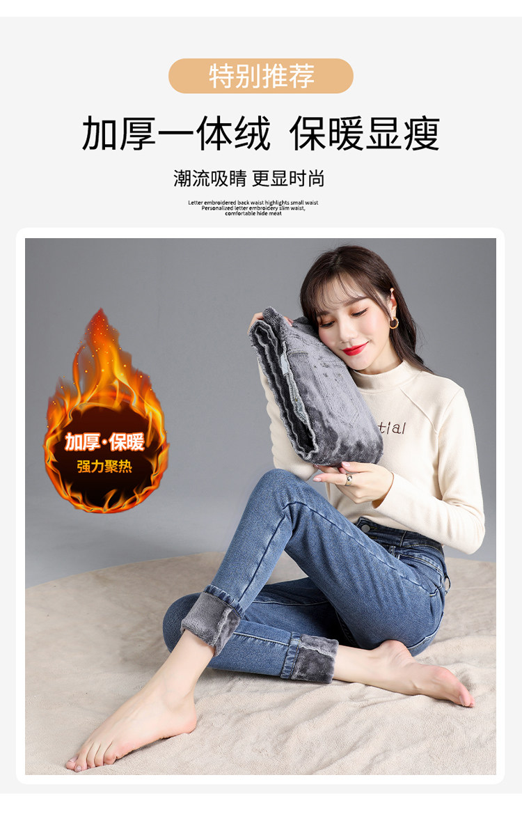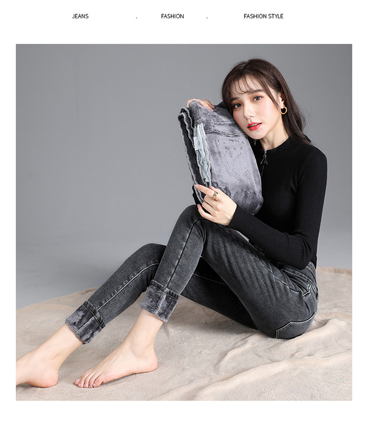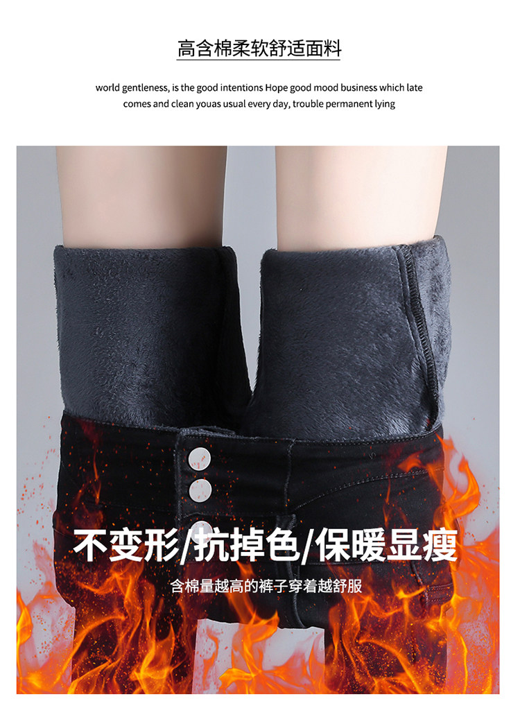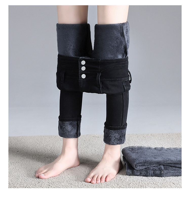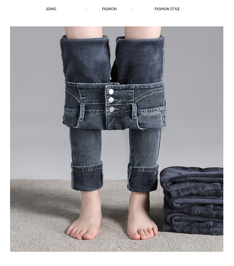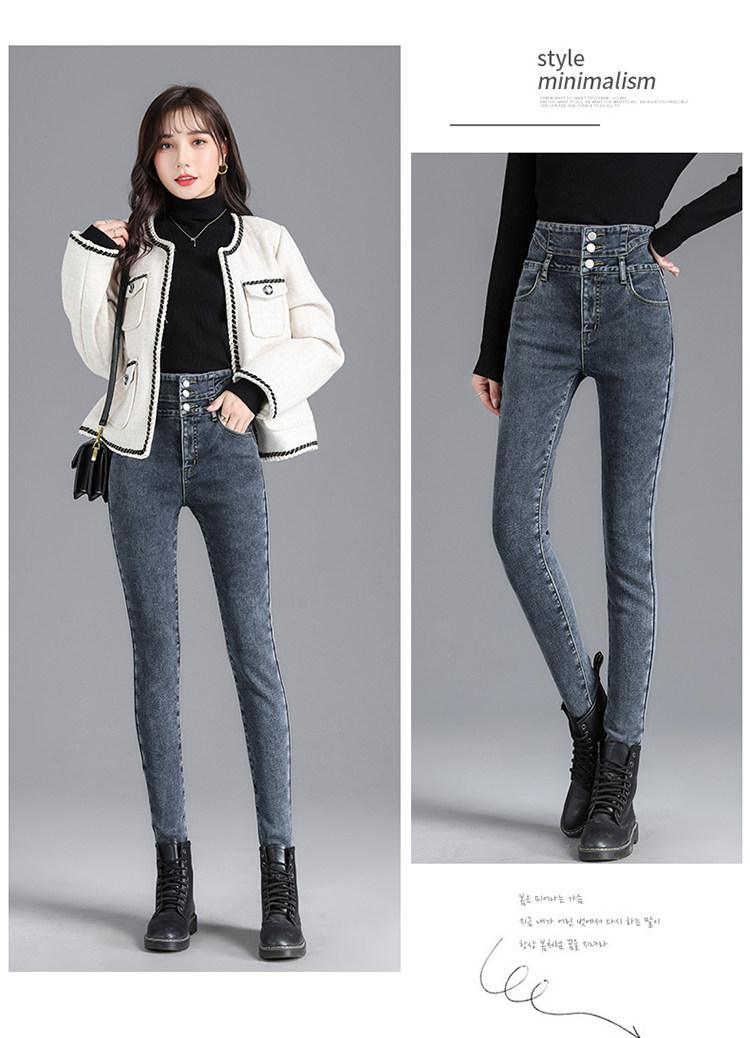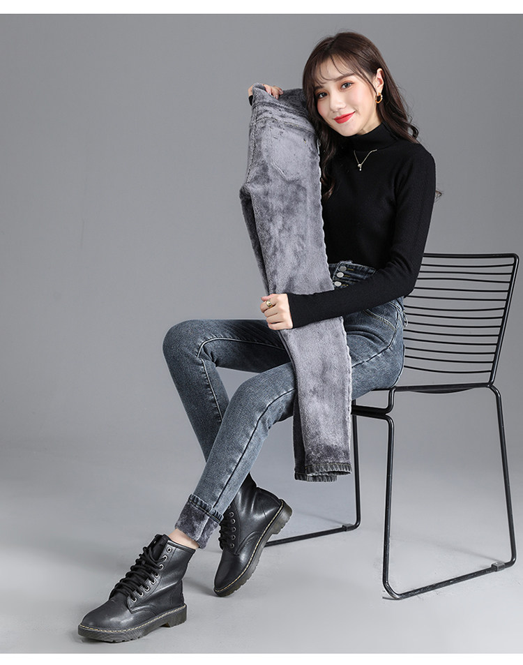 2025年修身顯瘦秋冬女褲超高腰加絨牛仔褲女彈力緊身鉛筆小腳褲子