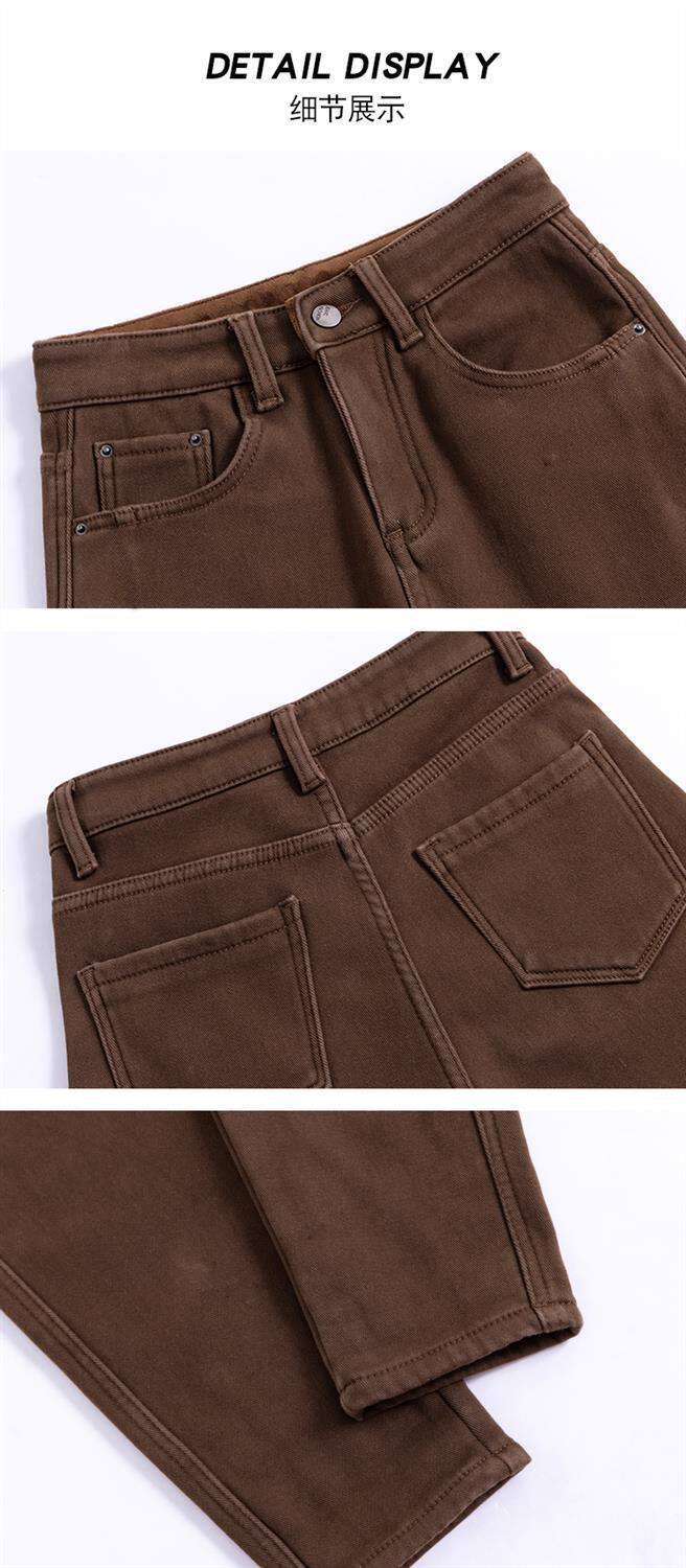 咖啡色牛仔褲女2026年春秋新款高腰顯瘦寬鬆彈力蘿蔔哈倫老爹褲子