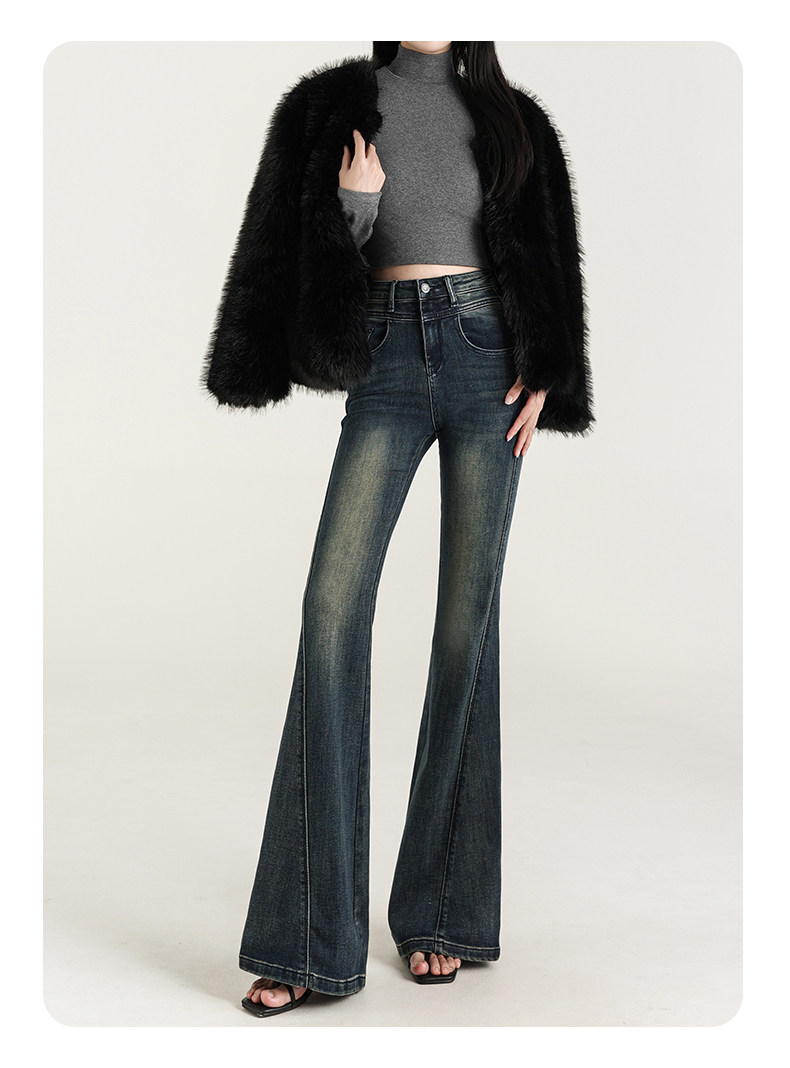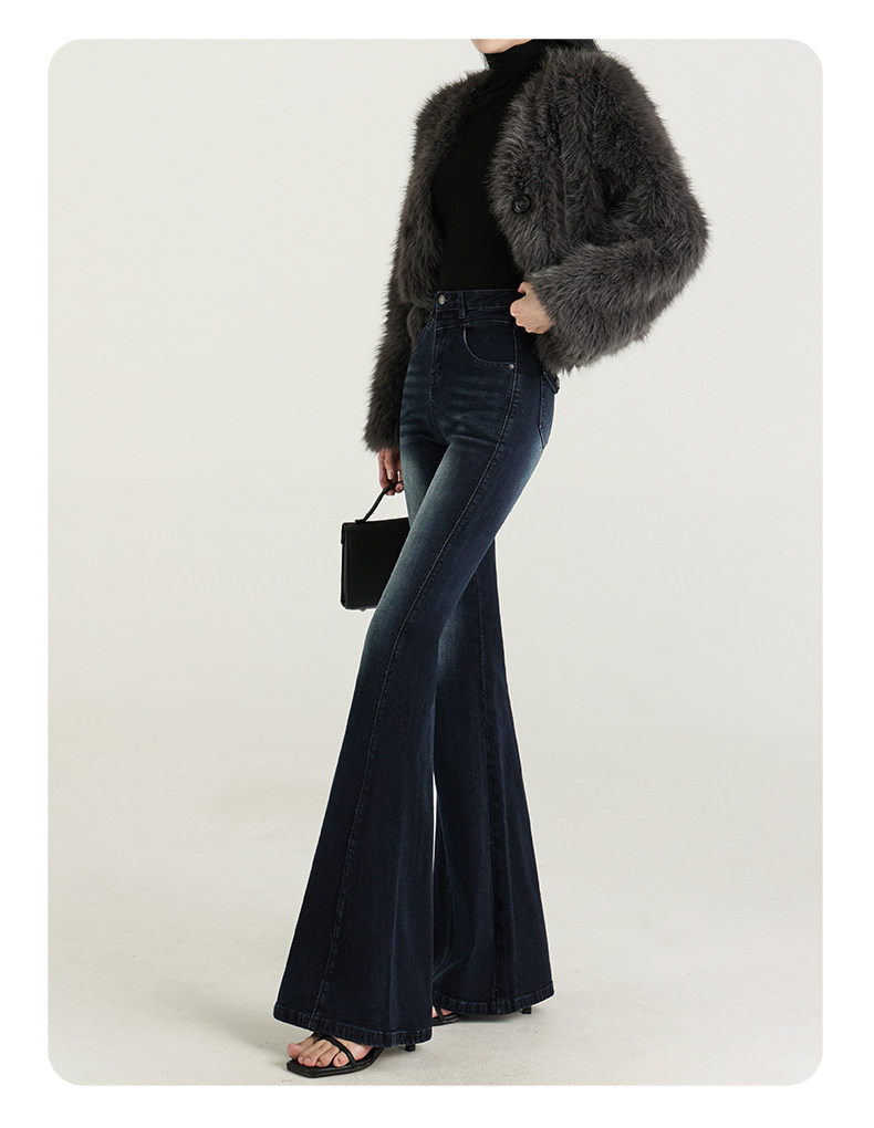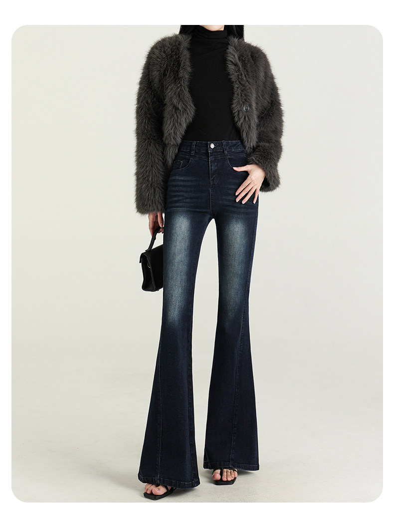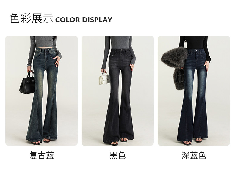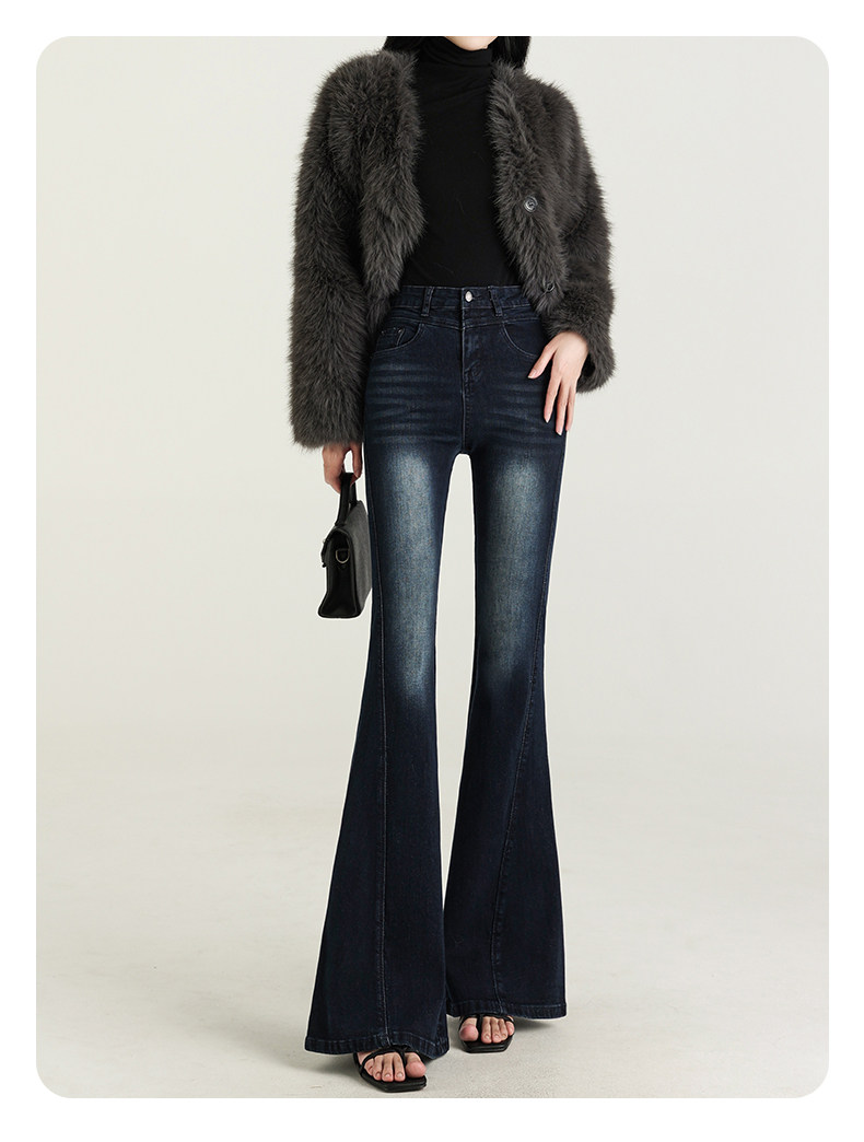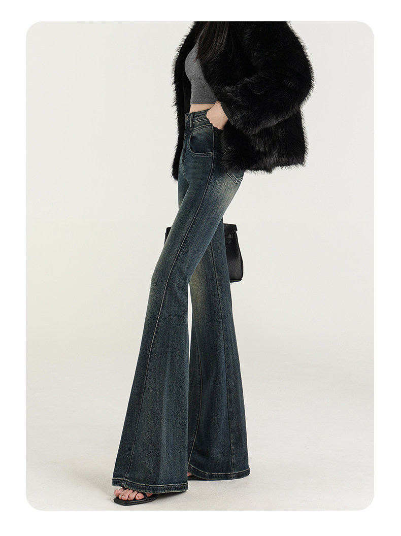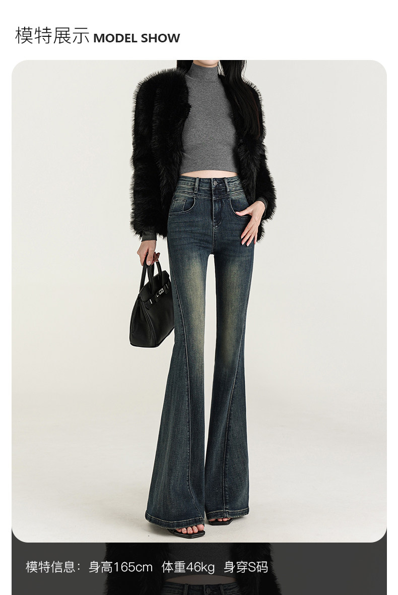 氣質設計感美式復古藍微喇牛仔褲女春季新款修身拖地緊身喇叭褲子
