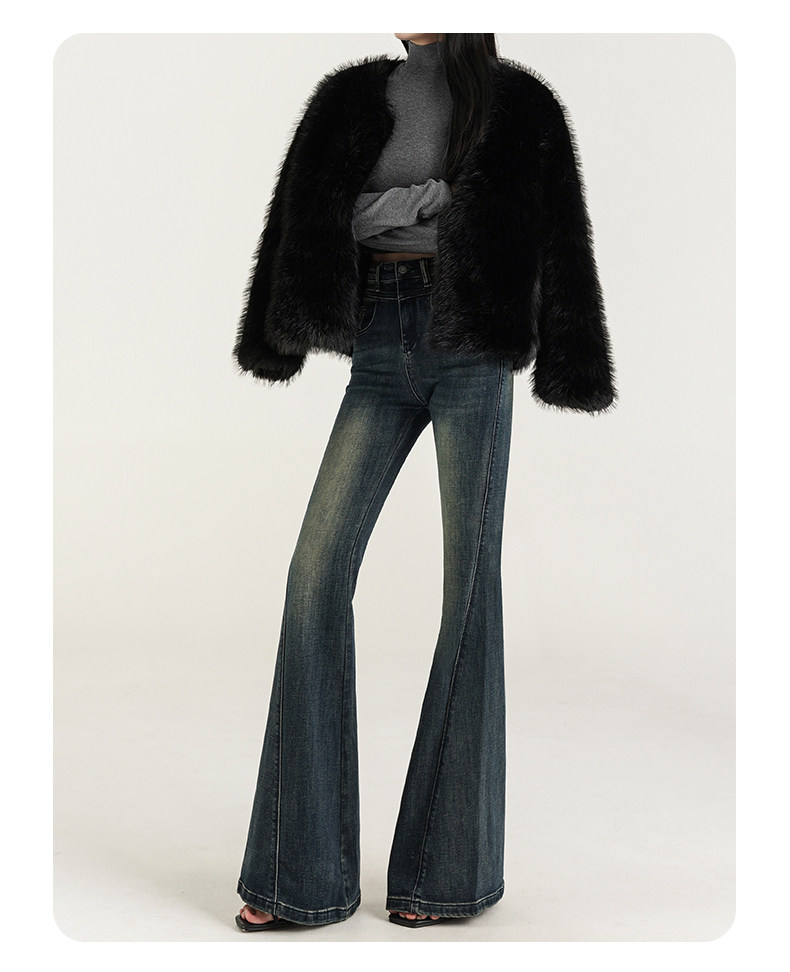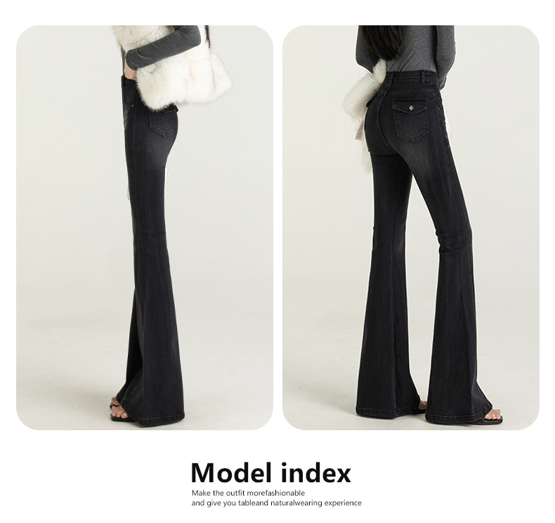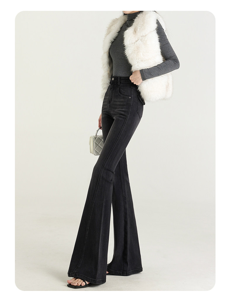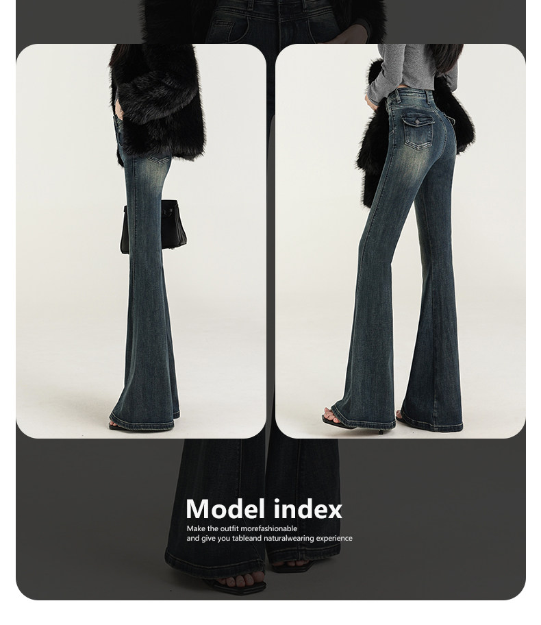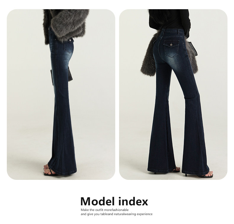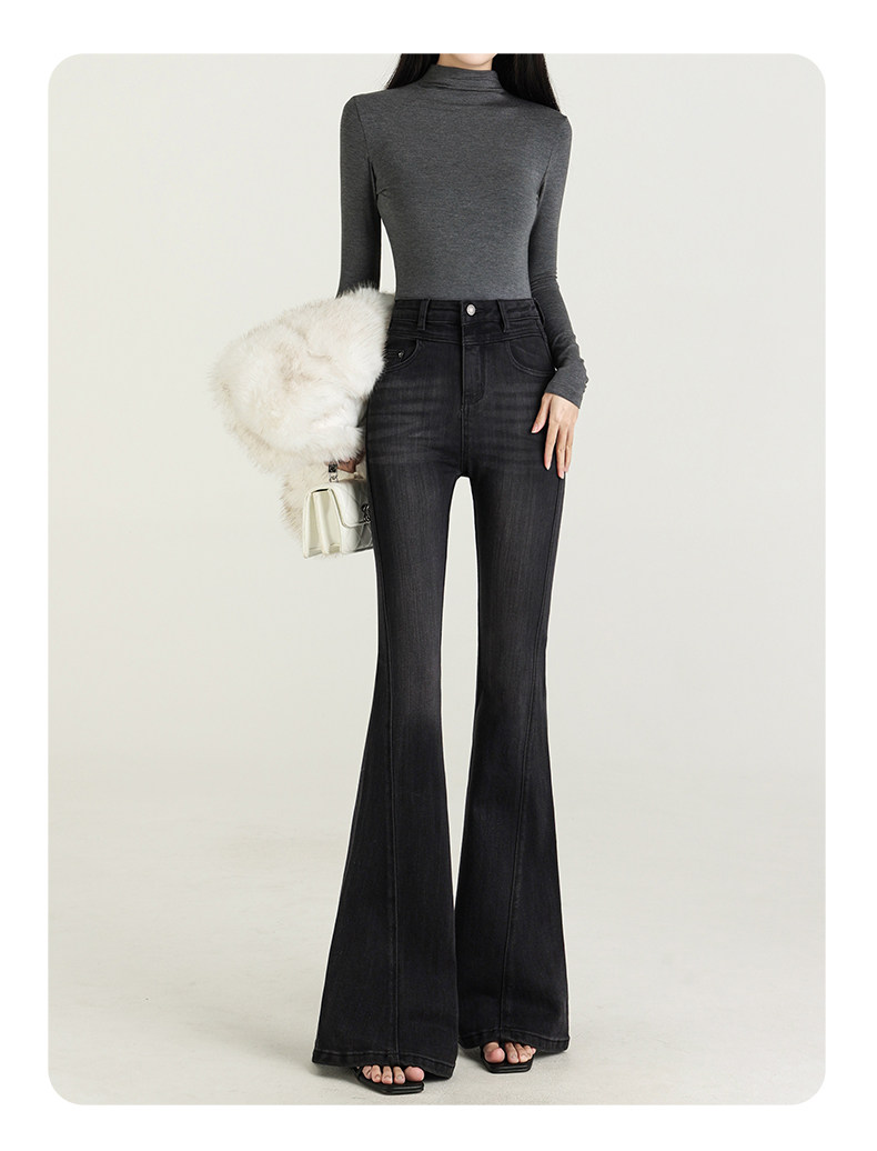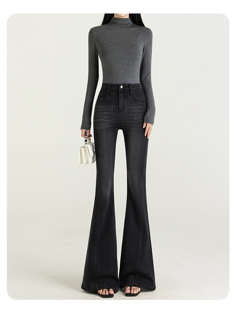 氣質設計感美式復古藍微喇牛仔褲女春季新款修身拖地緊身喇叭褲子