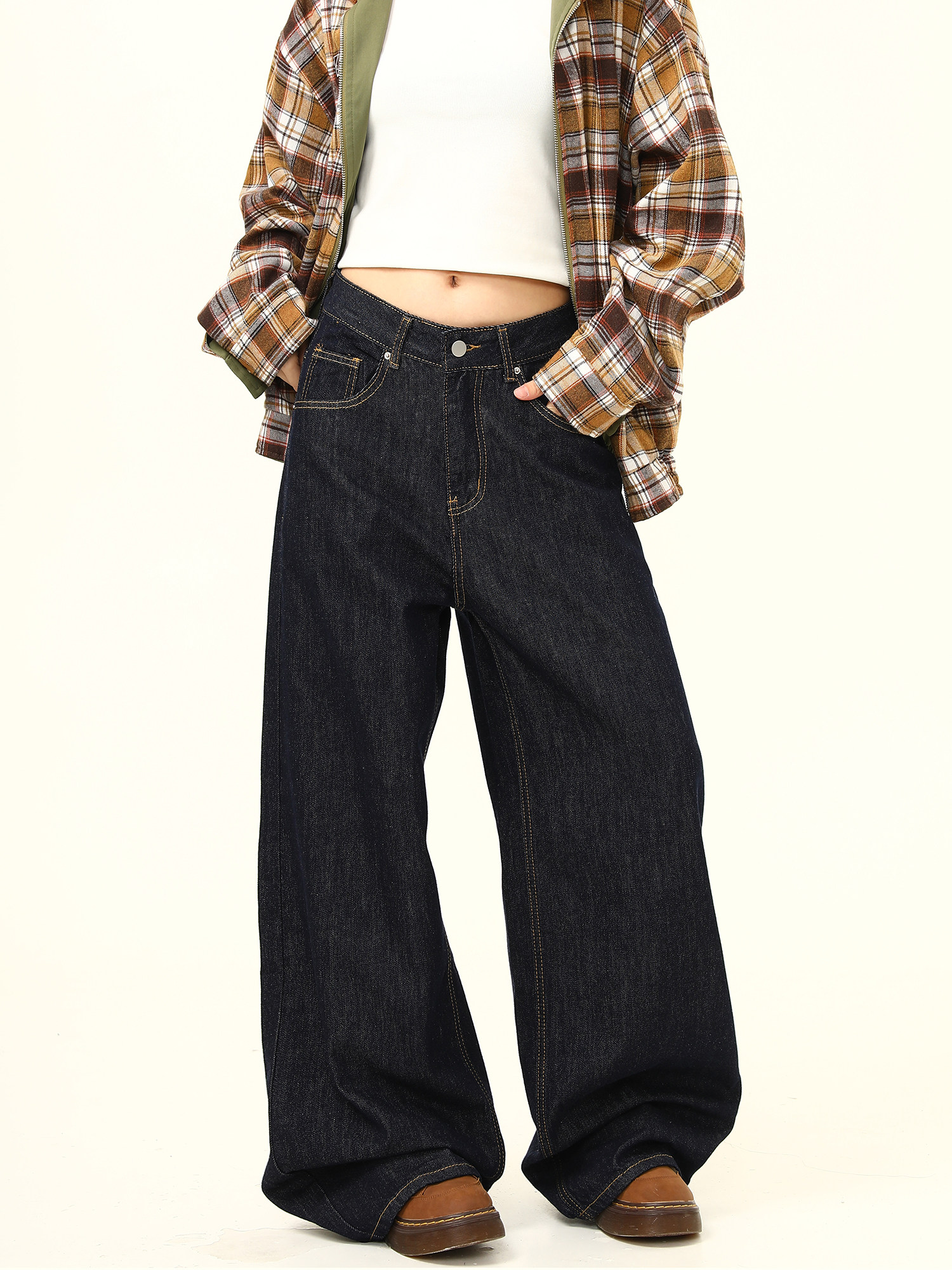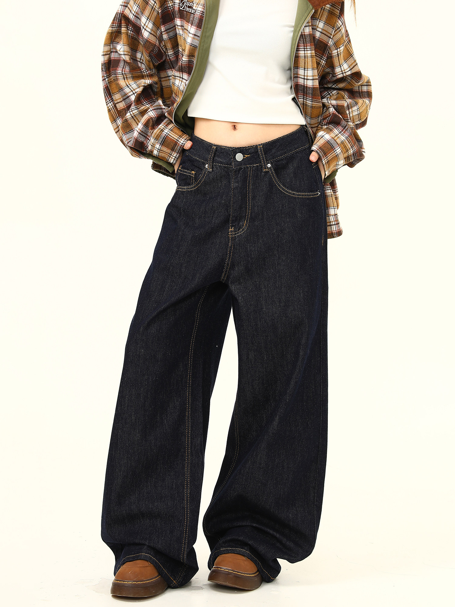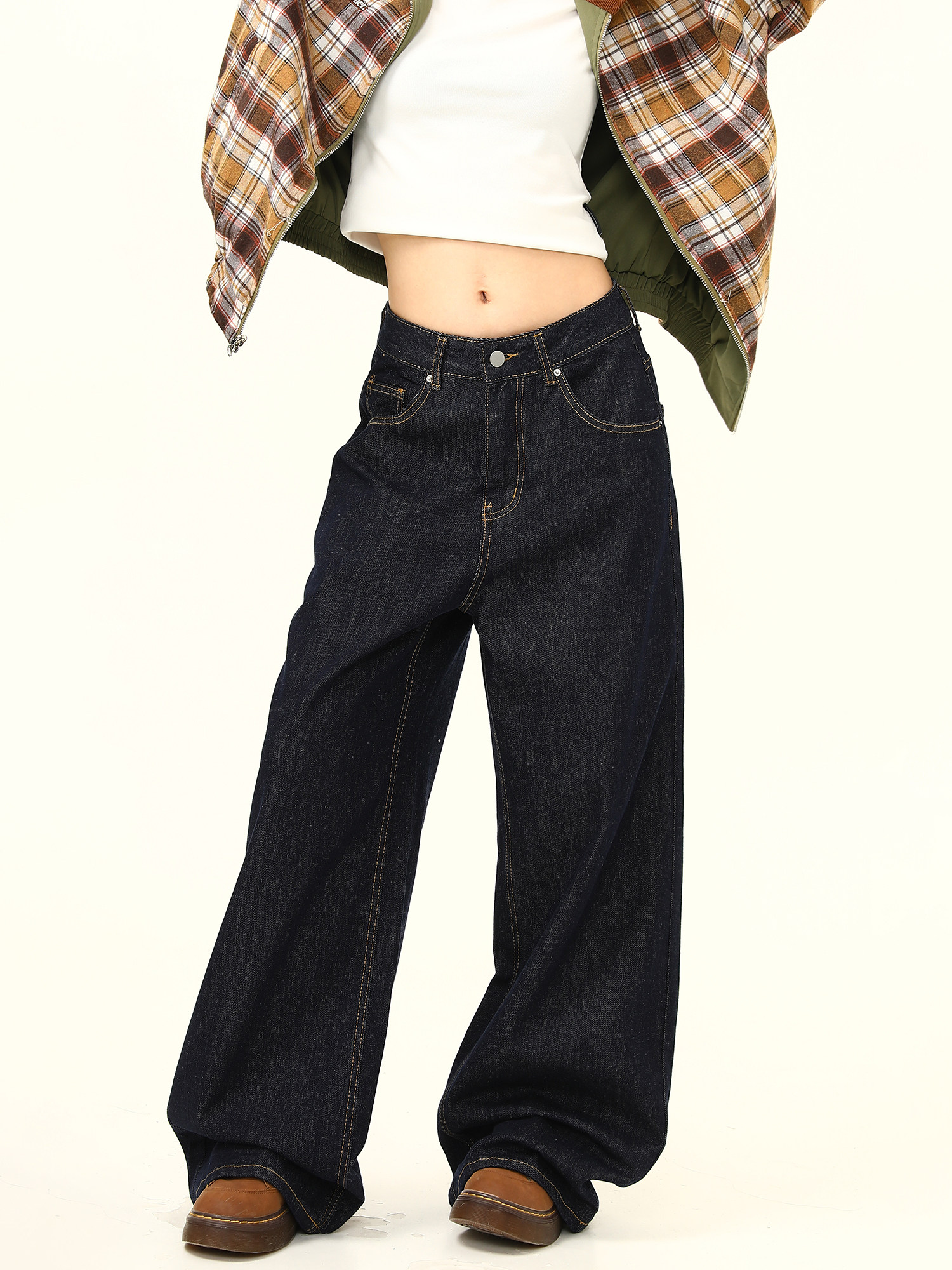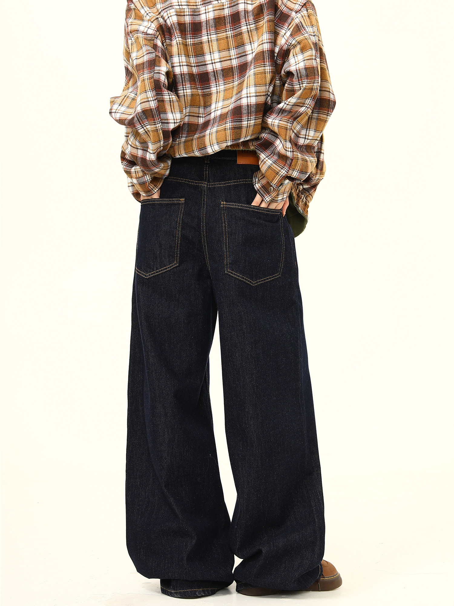 野生阿子美式復古高級感寬鬆濶腿彎刀牛仔褲男女百搭直筒拖地褲子