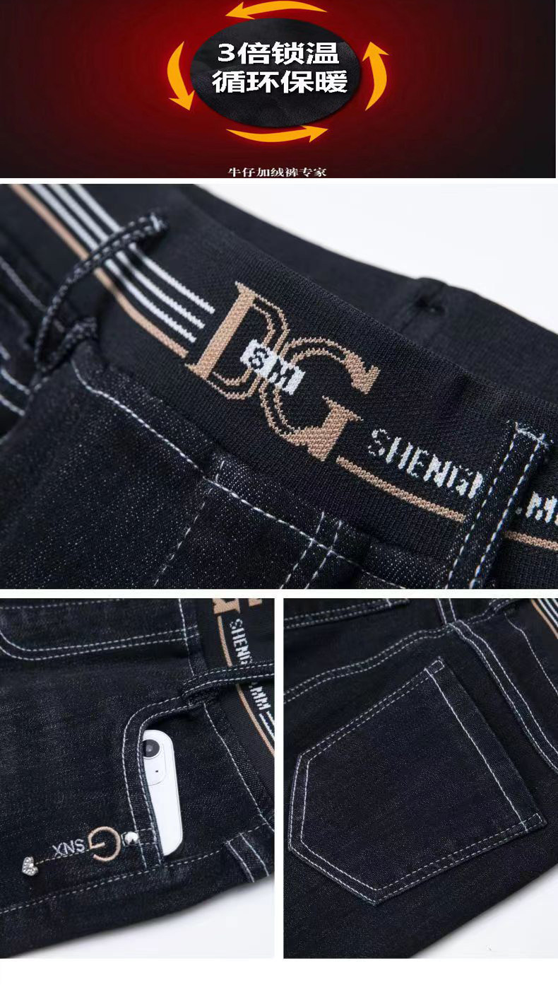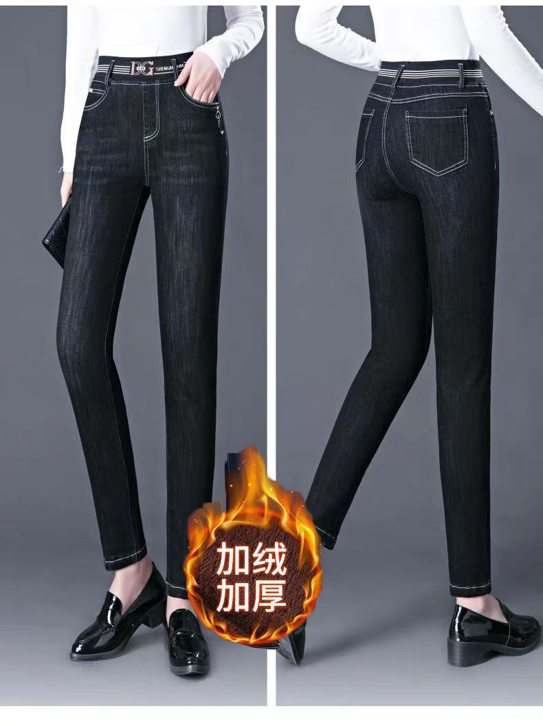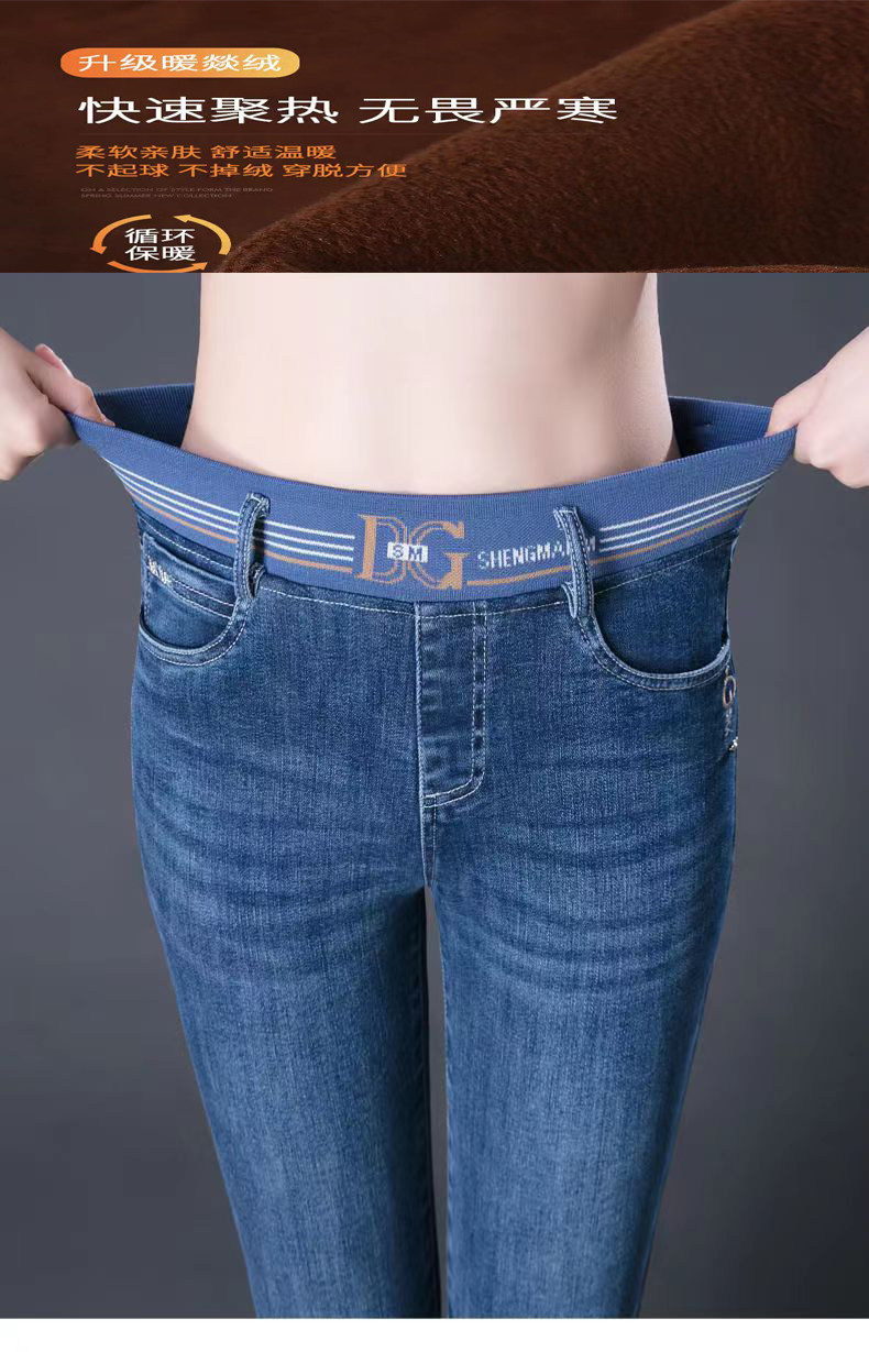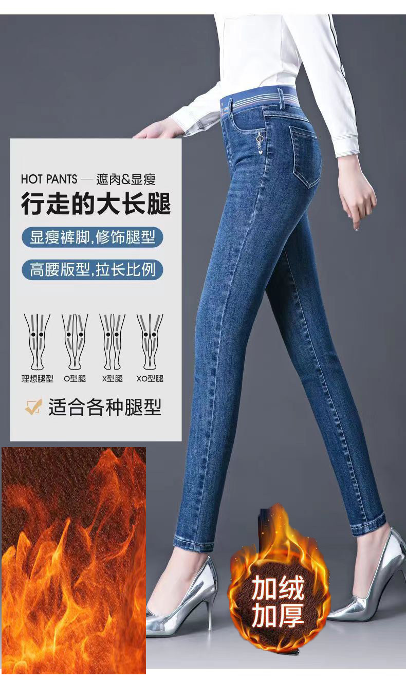 加絨加厚九分牛仔褲女小個子松緊腰彈力冬季保暖褲百搭高腰小腳褲
