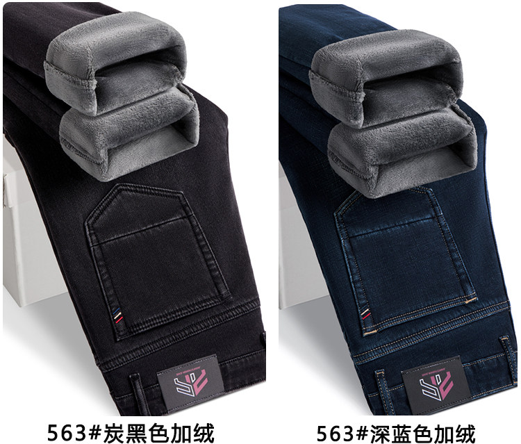 羅矇高級加絨超厚男士牛仔褲冬季新款直筒寬鬆羊羔絨休閒保暖褲子