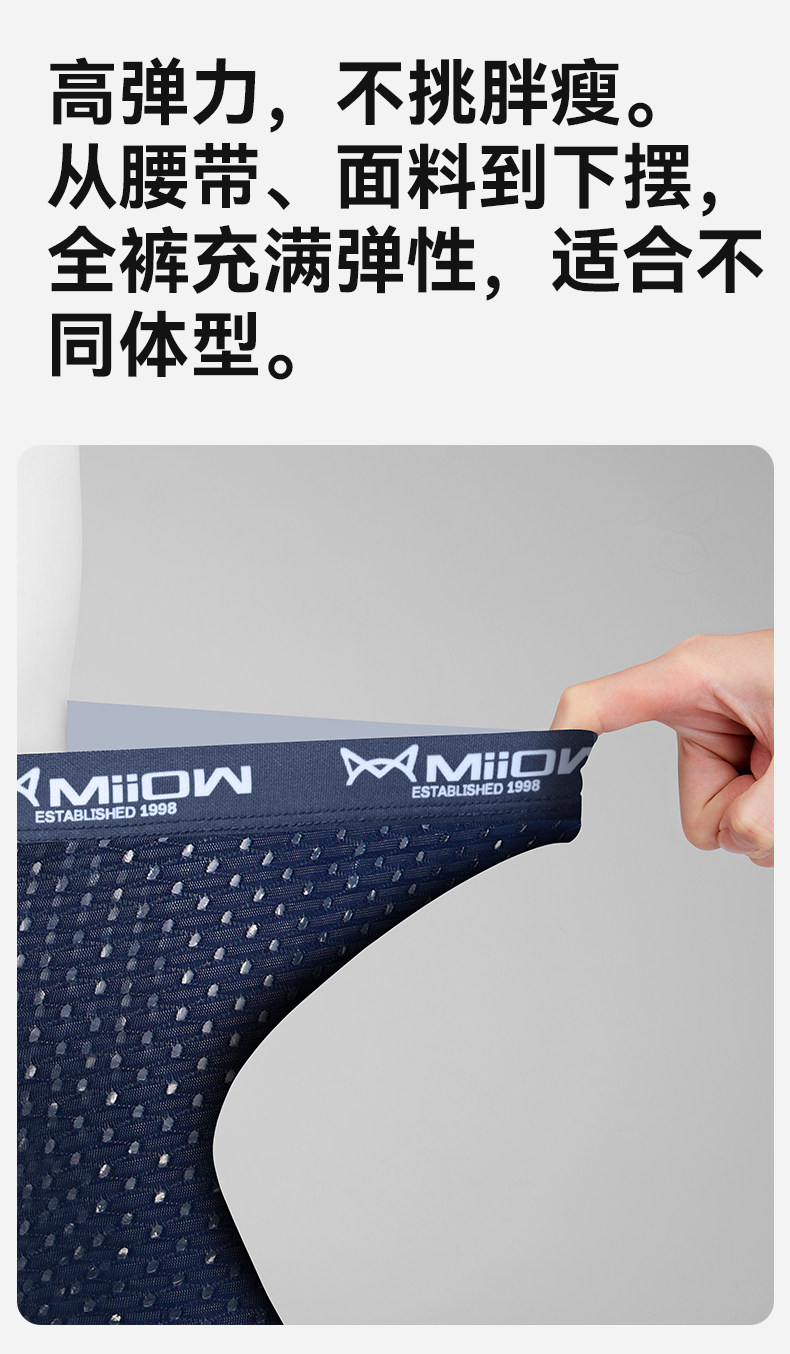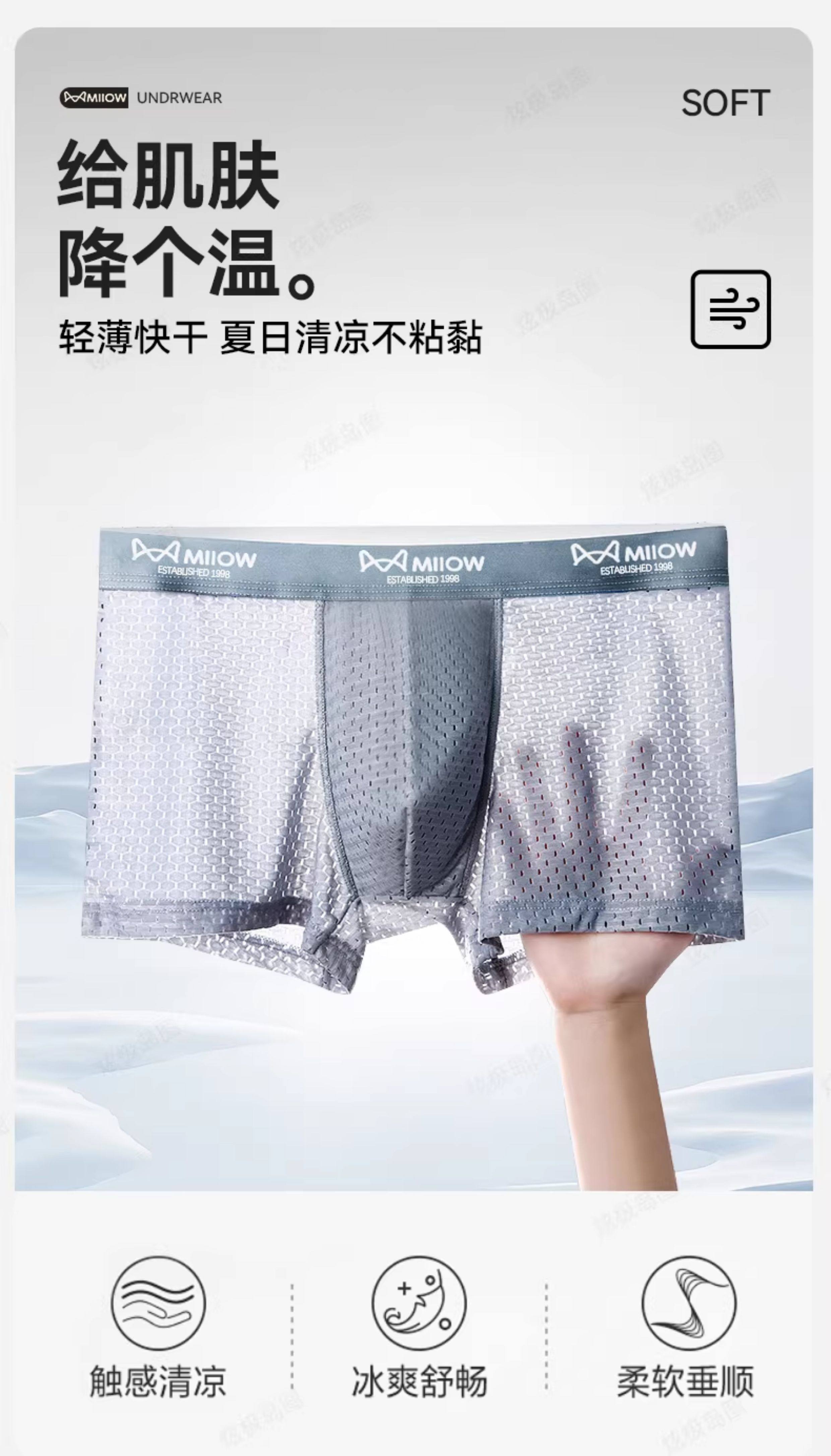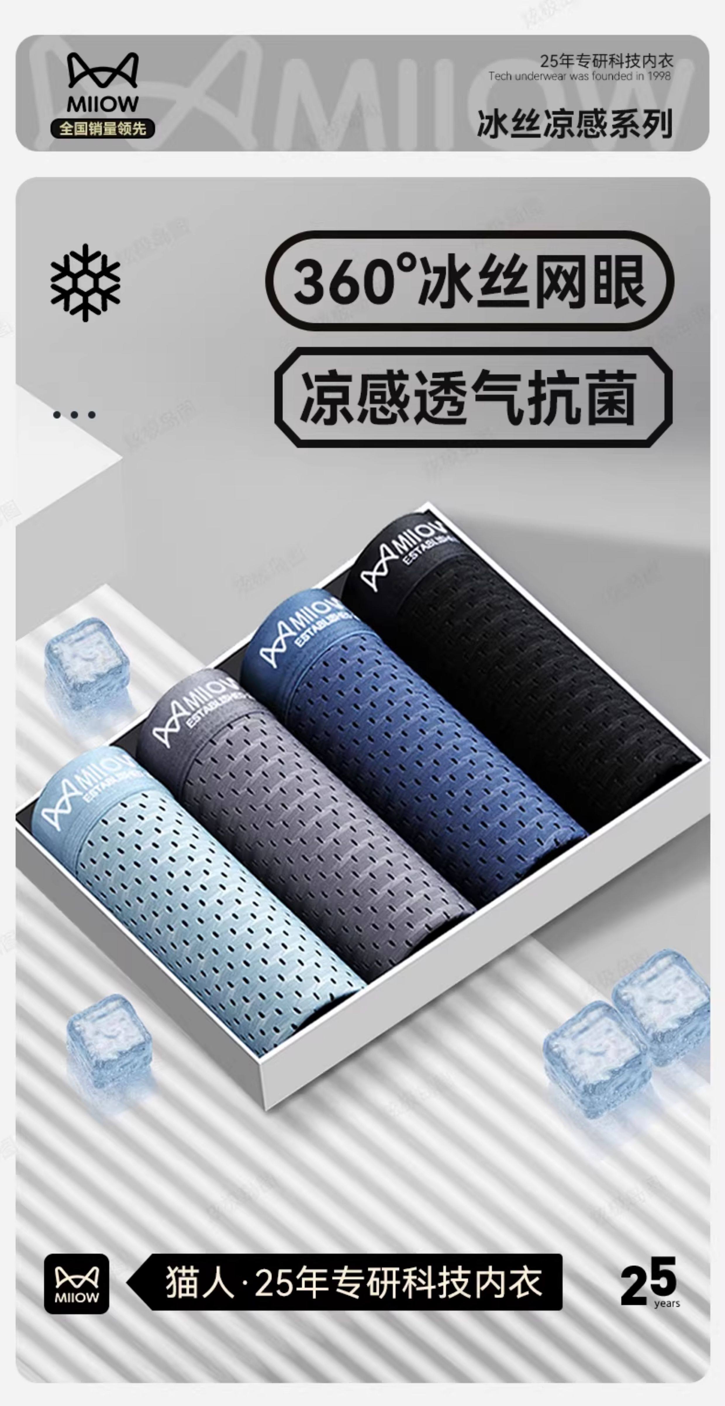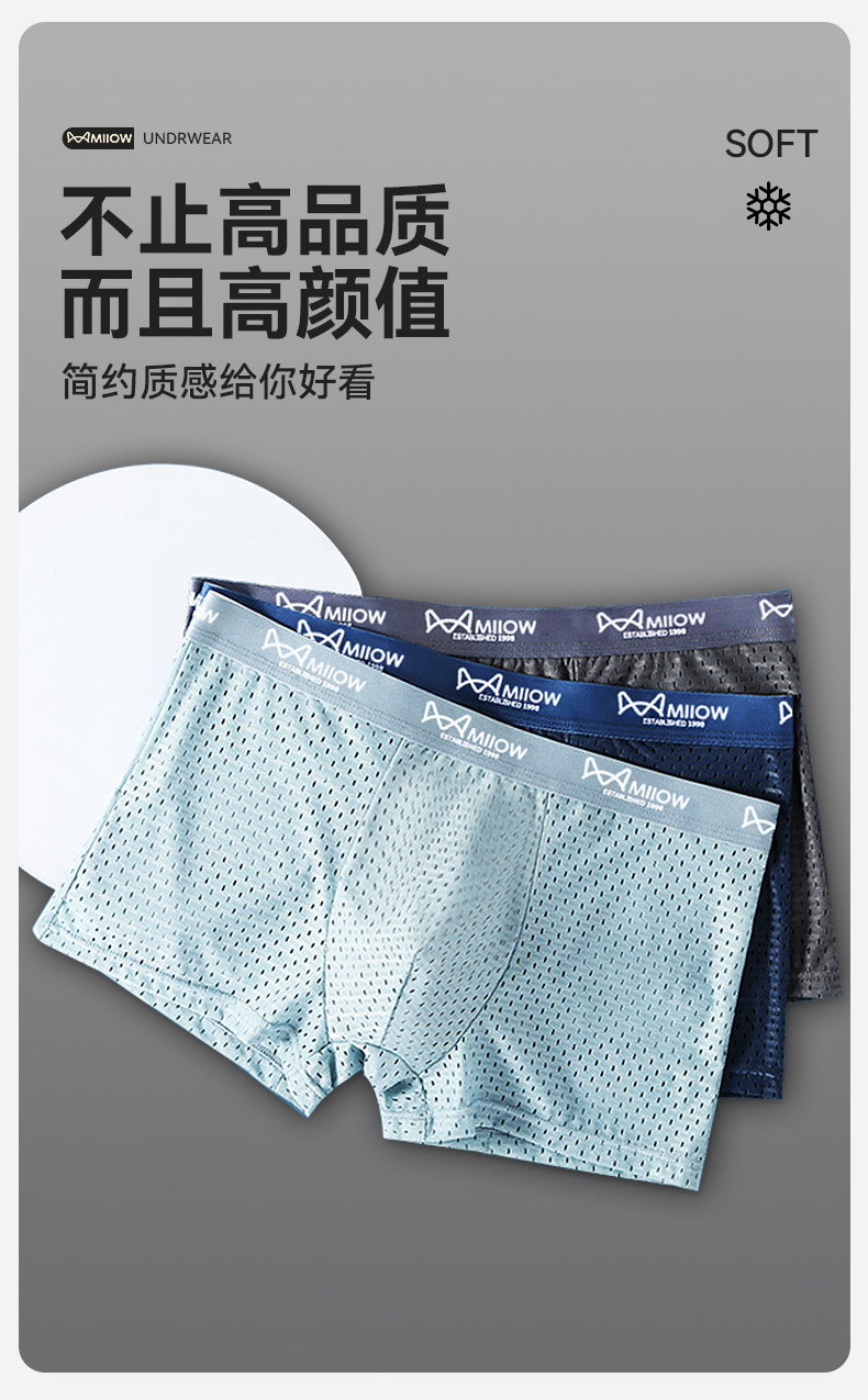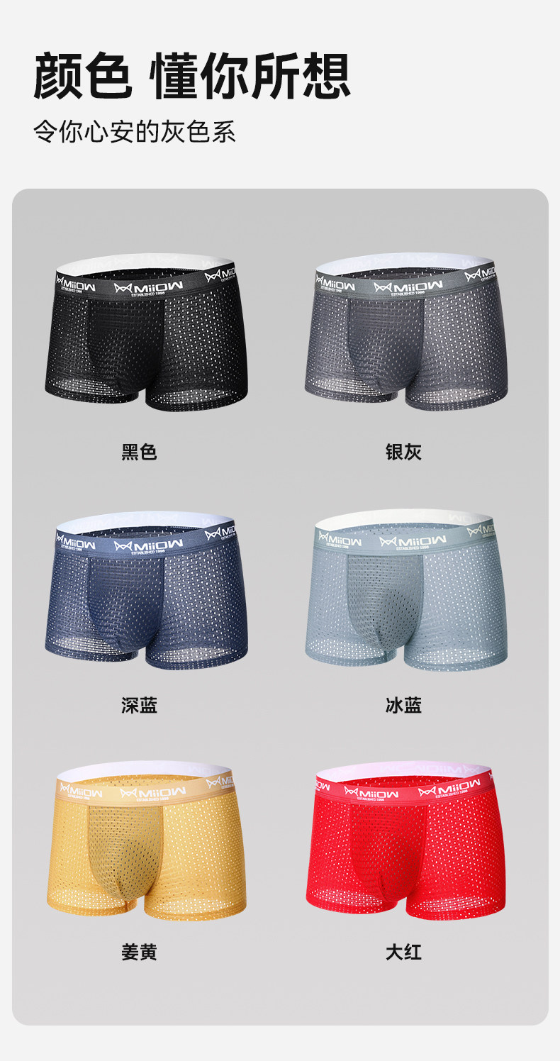 貓人冰絲男士內褲網孔透氣四角抗菌襠男生平角短褲衩夏季網眼薄款