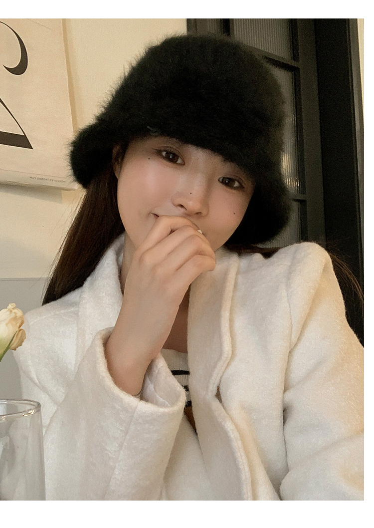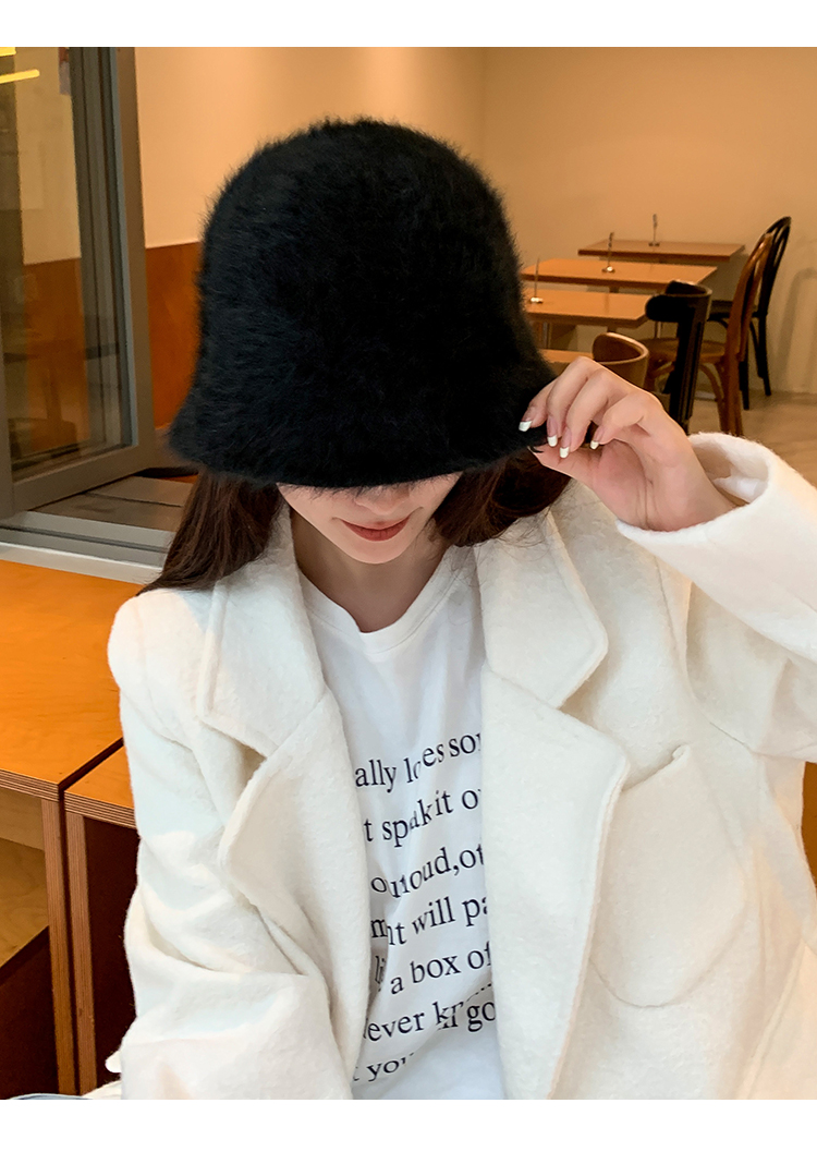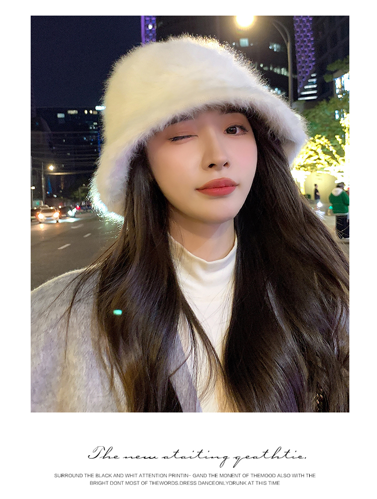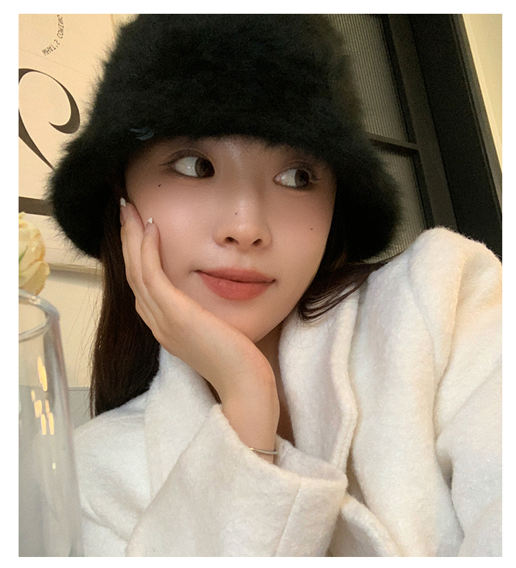 白色兔毛帽子女秋冬季毛絨漁夫帽大頭圍冬天毛毛水桶帽盆帽顯臉小