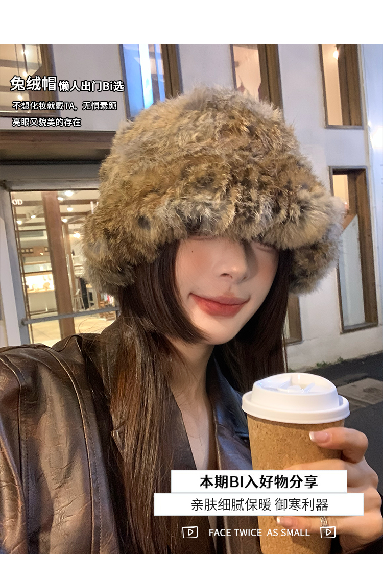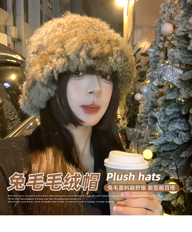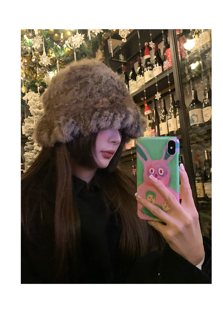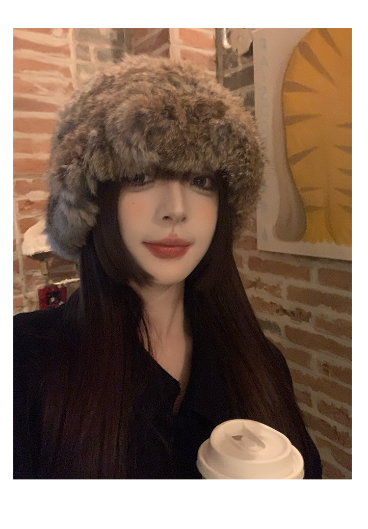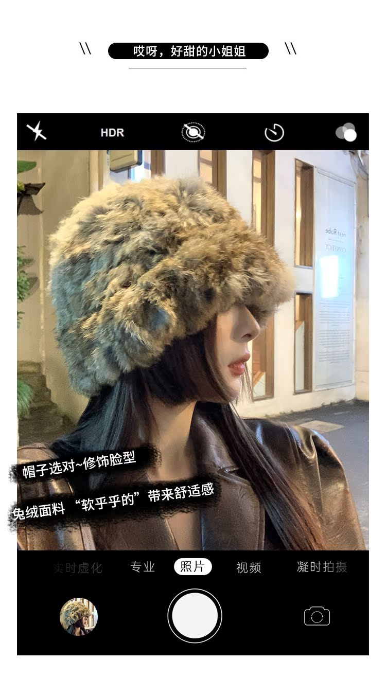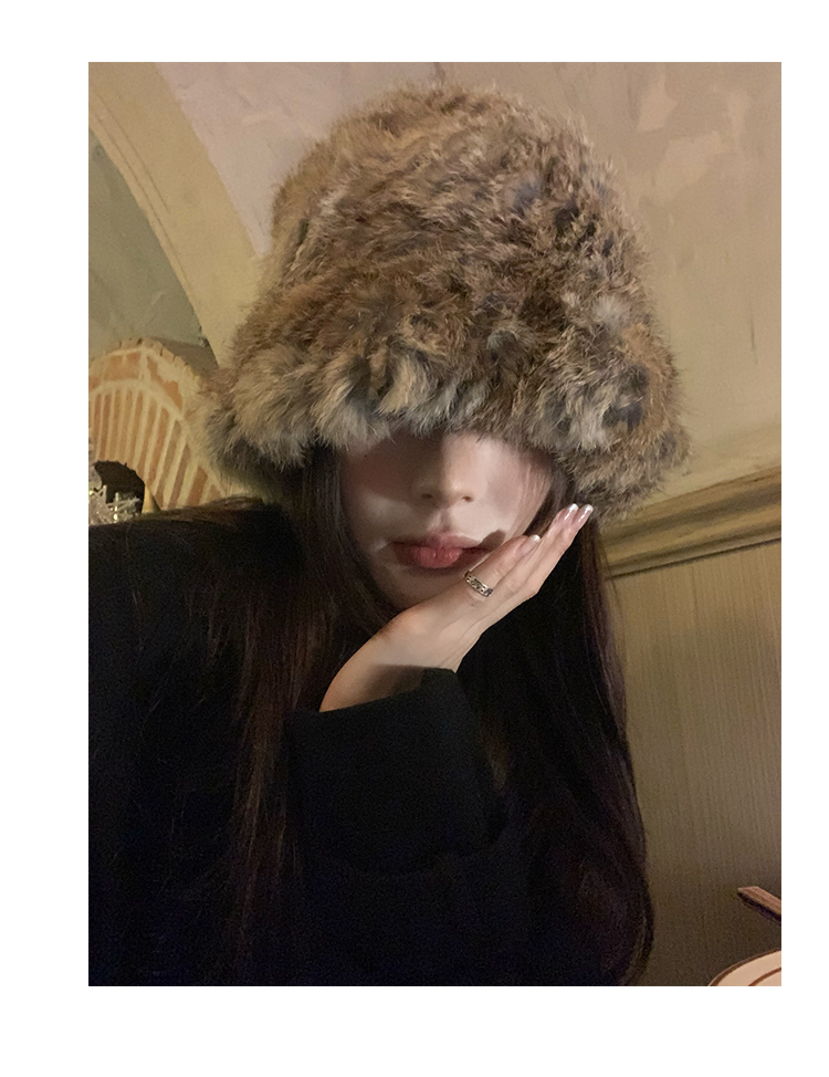 韓系兔毛帽子女秋冬加厚保暖防寒毛線帽皮草毛毛護耳帽毛絨漁夫帽