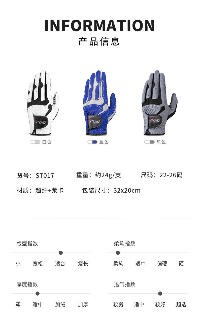 PGM 高爾夫手套男士防滑耐磨超纖布球桿用品手套防曬透氣左右雙手