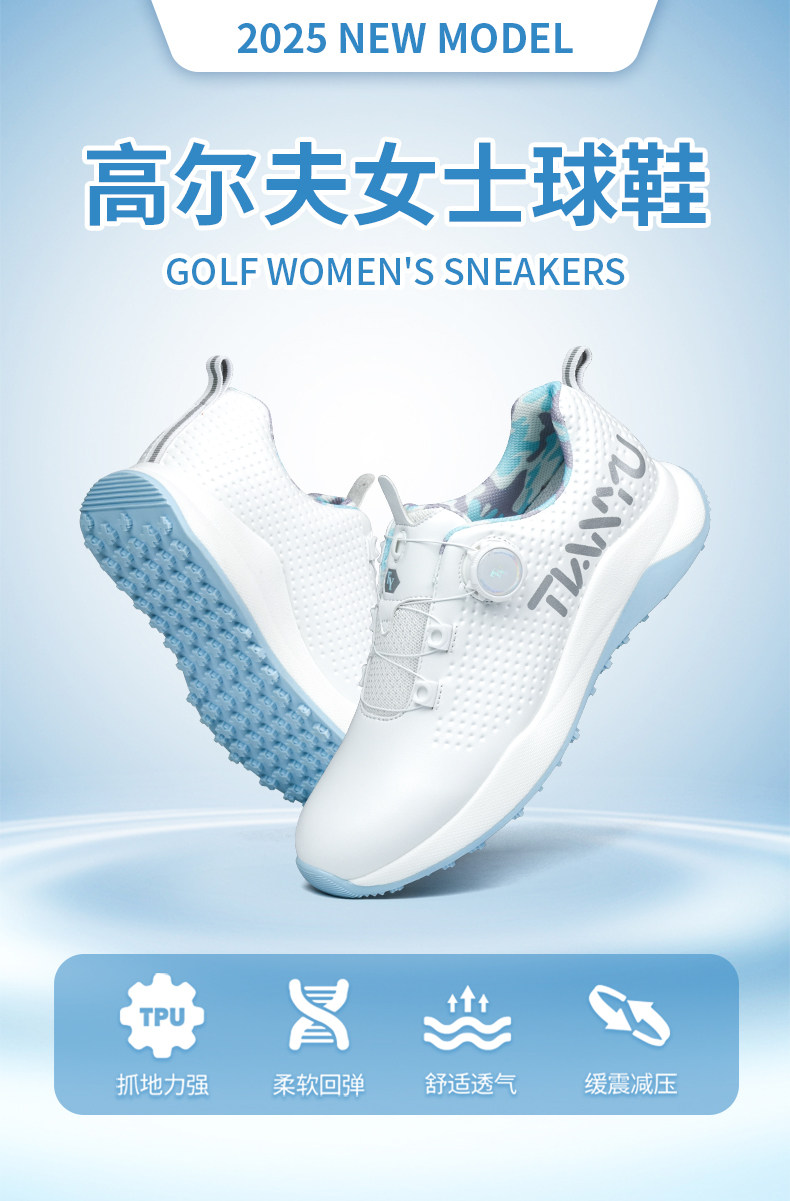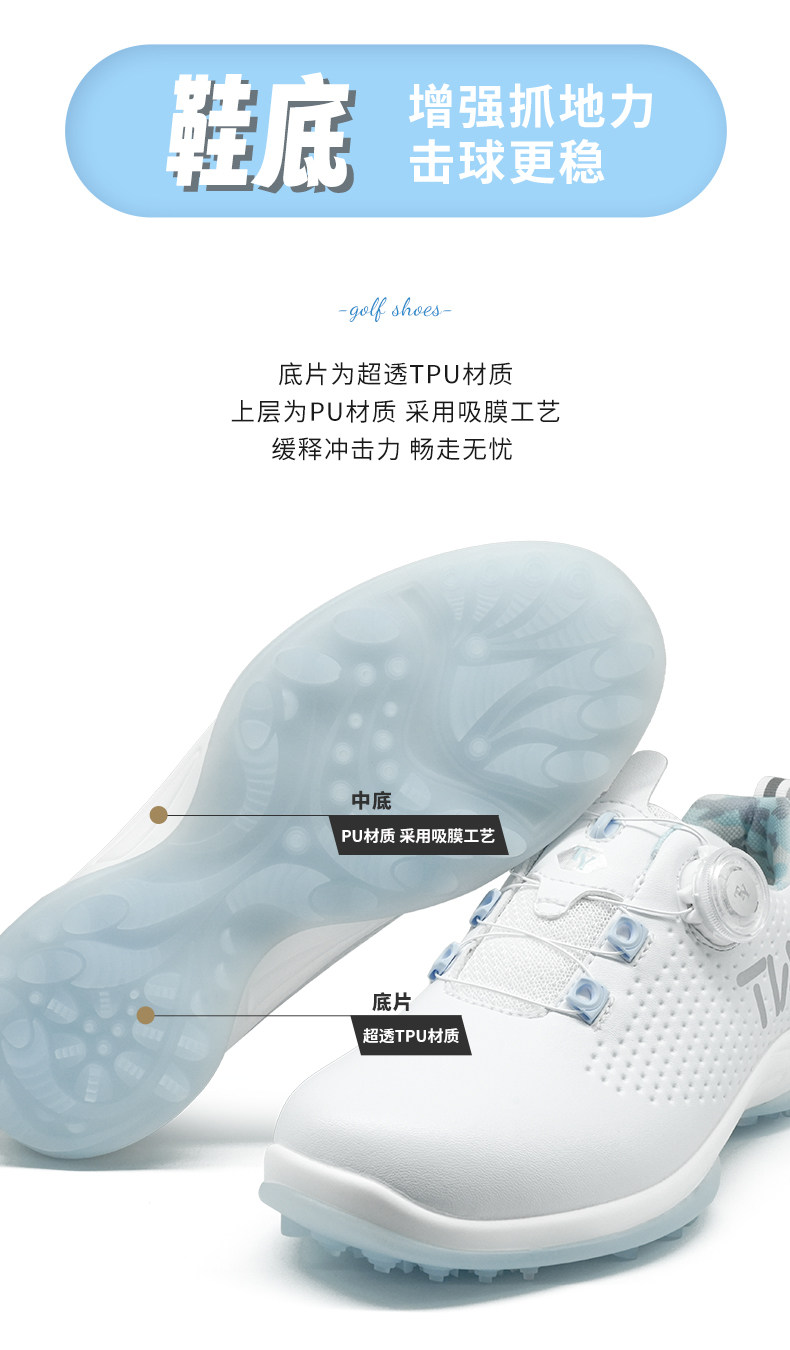 春季新品高爾夫球鞋女士防水透氣旋轉鈕鞋帶運動休閒防滑固定鞋釘