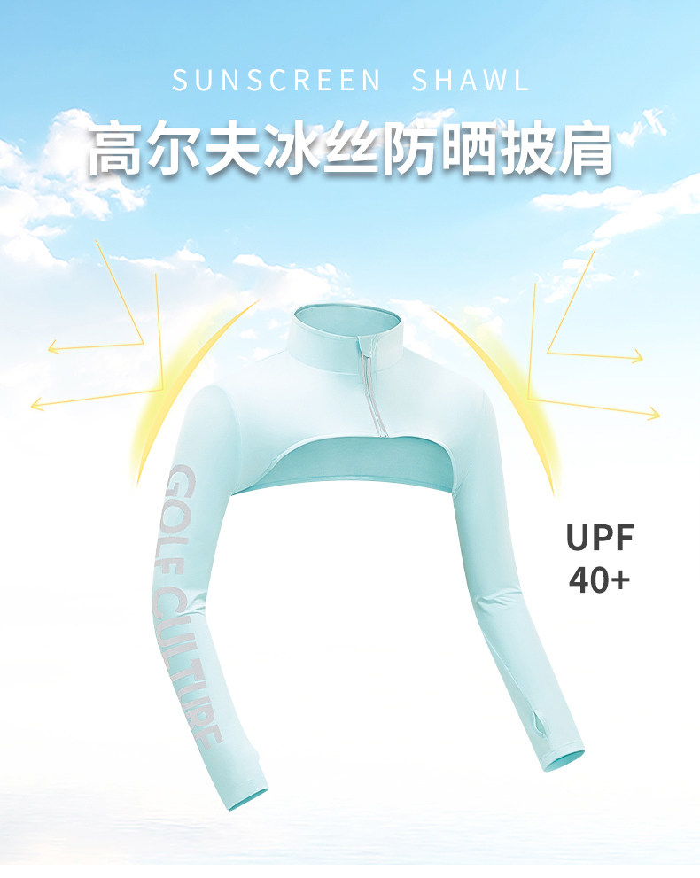 高爾夫披肩袖套女士冰絲運動防曬衣涼感護肩連體手袖戶外騎行冰袖