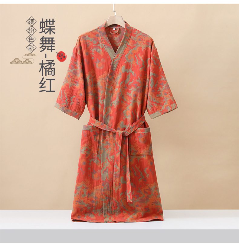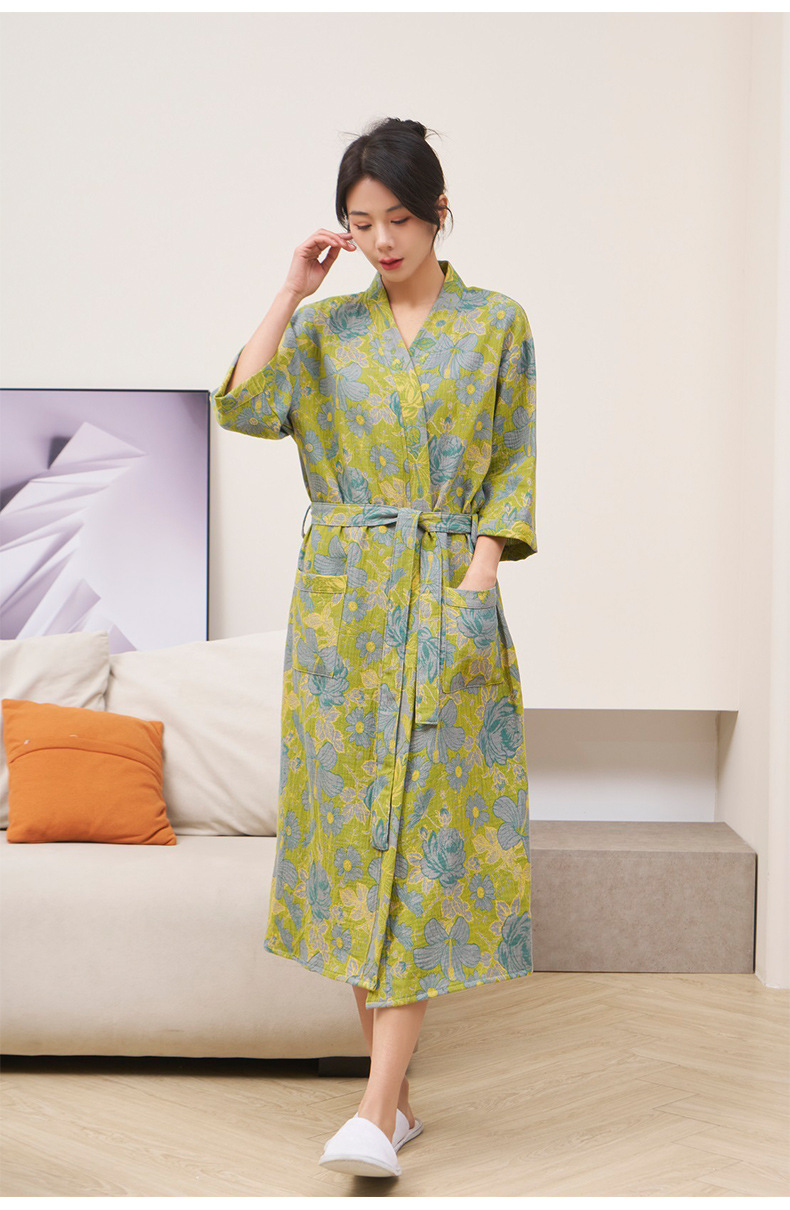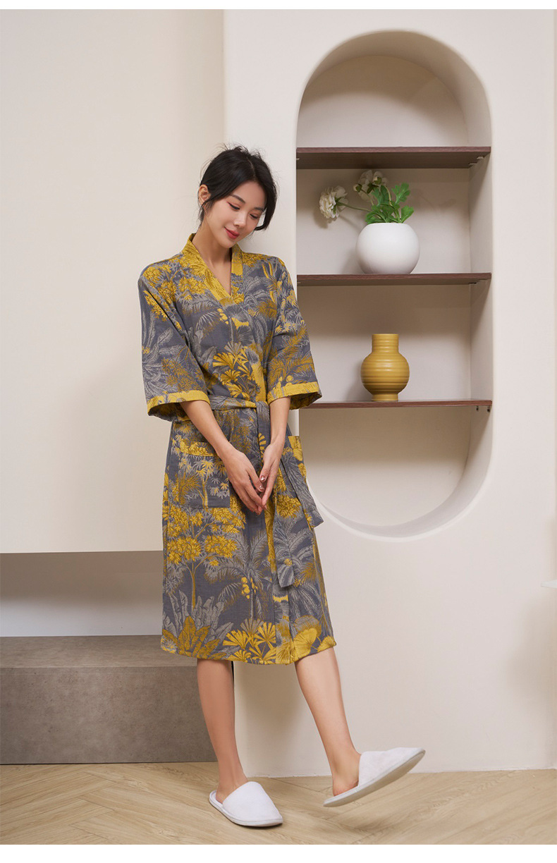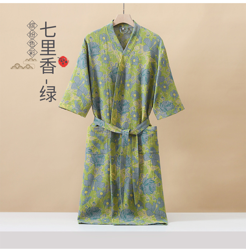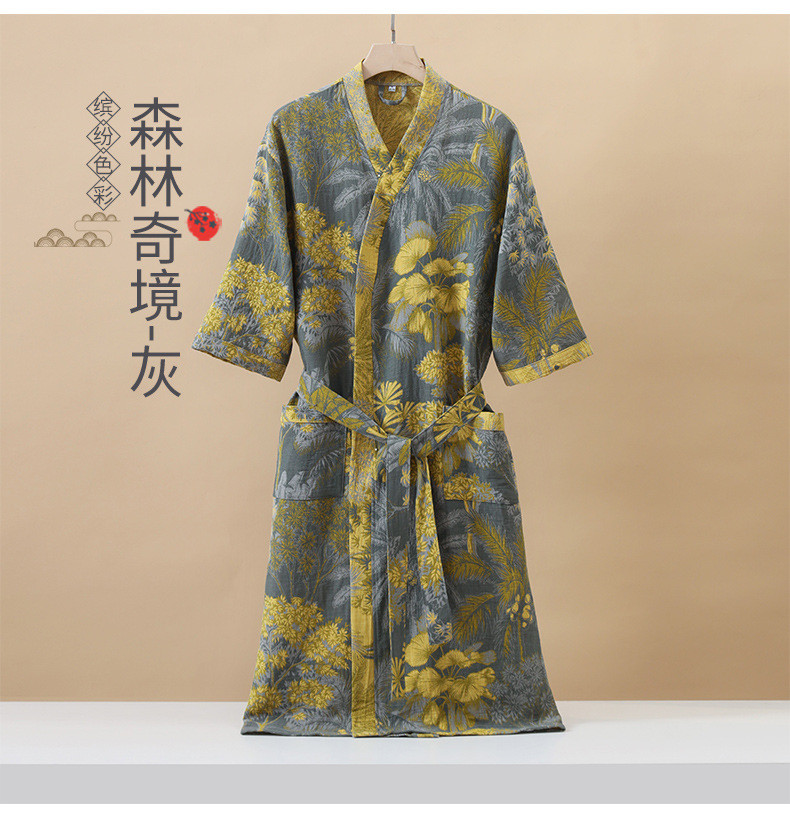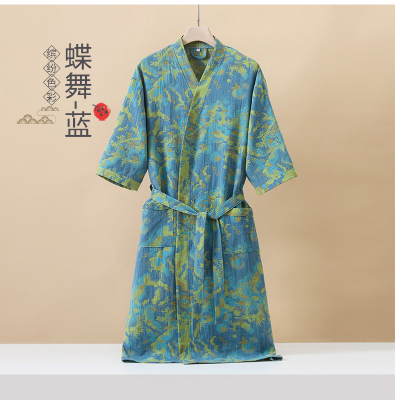 純棉雙層紗布浴袍A類春夏薄款睡衣家居服睡袍情侶款吸水速乾浴衣