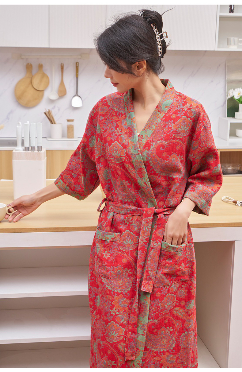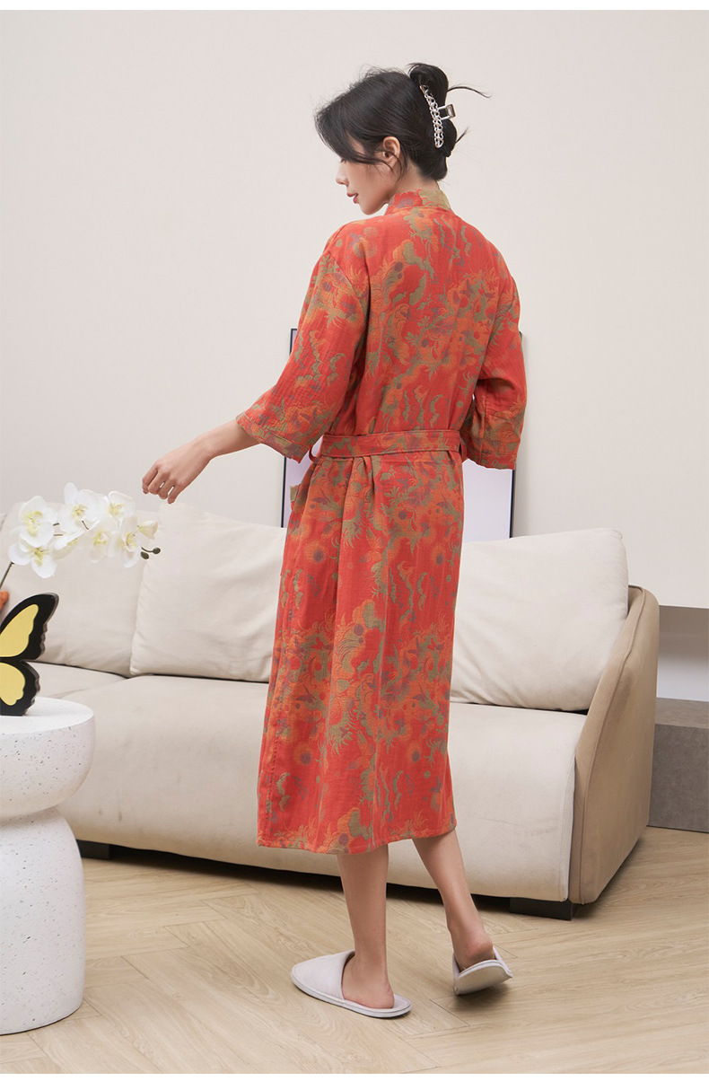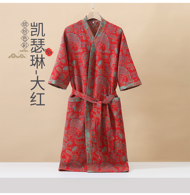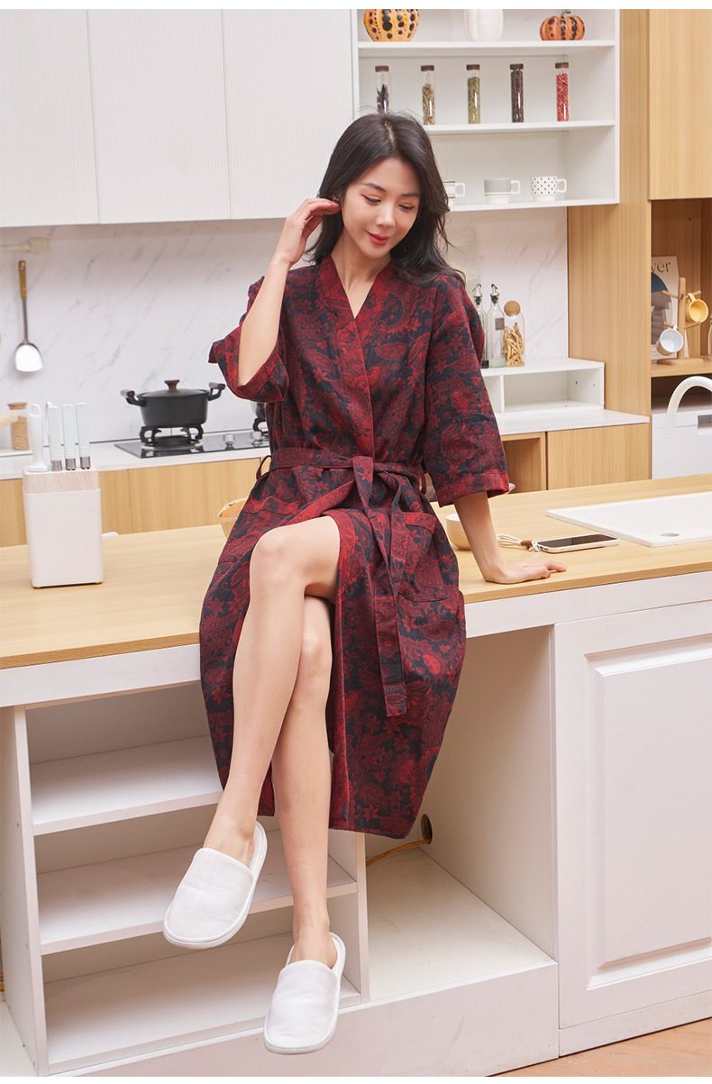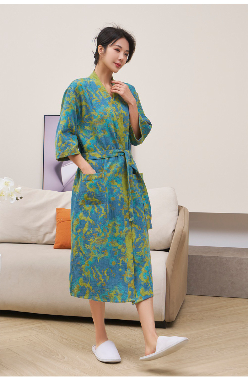 純棉雙層紗布浴袍A類春夏薄款睡衣家居服睡袍情侶款吸水速乾浴衣