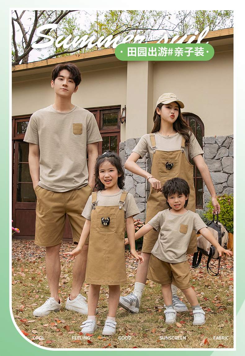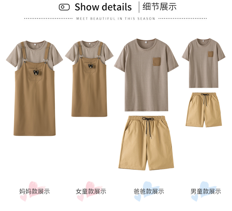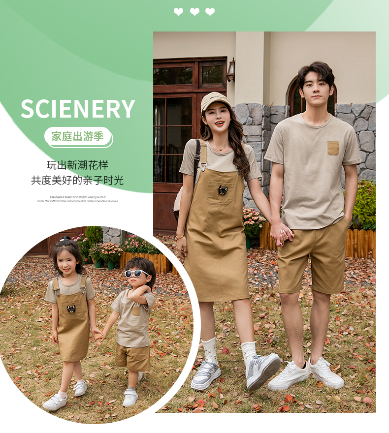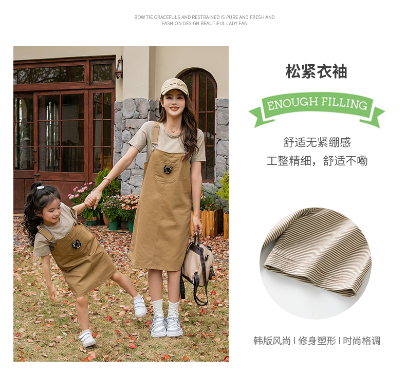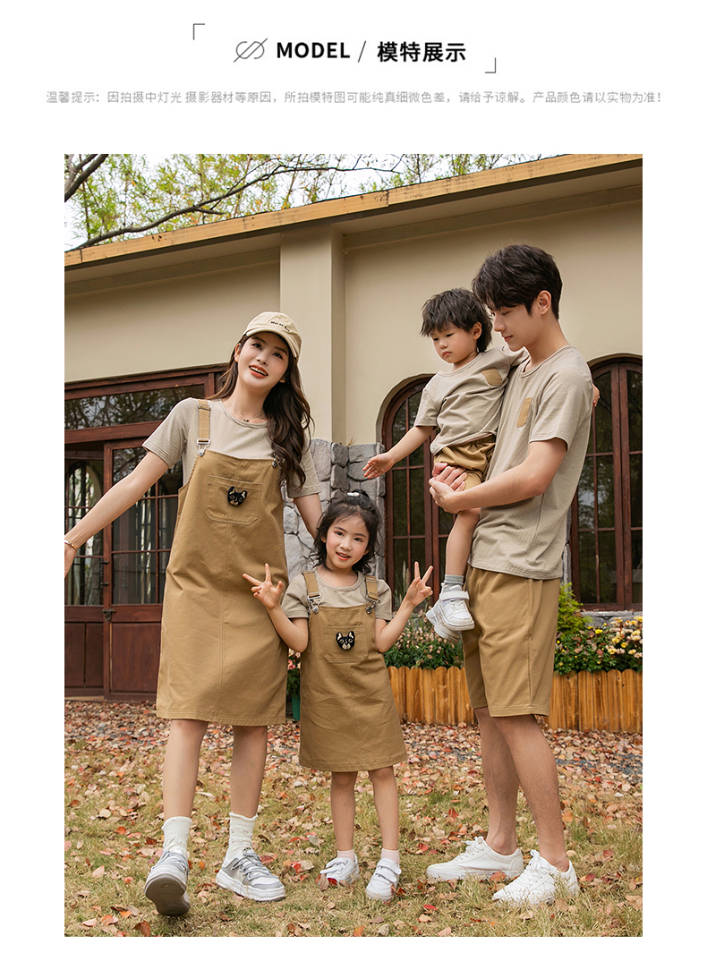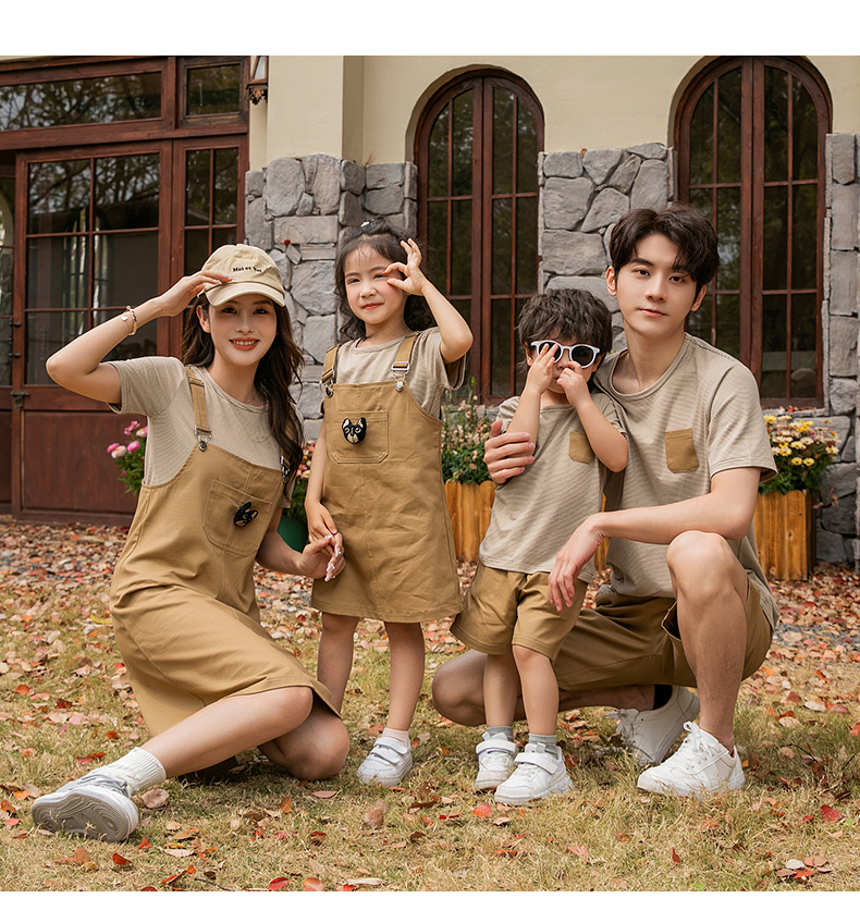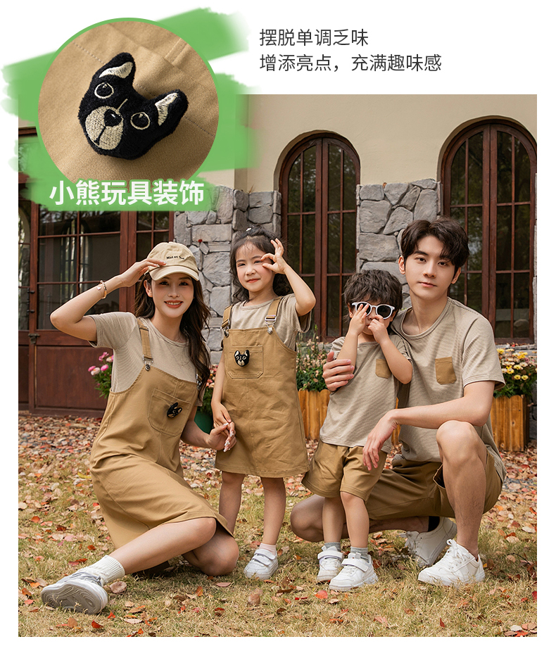 高級條紋親子裝夏季一家三口背帶套裝洋氣母子母女裝四口全家服潮