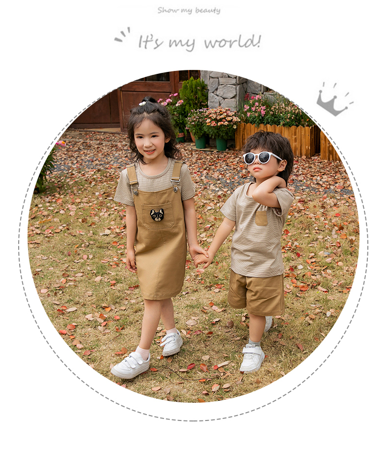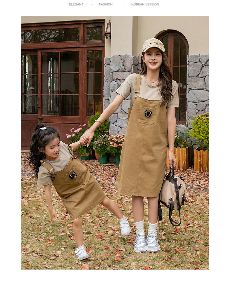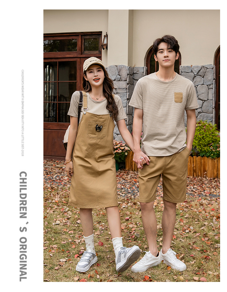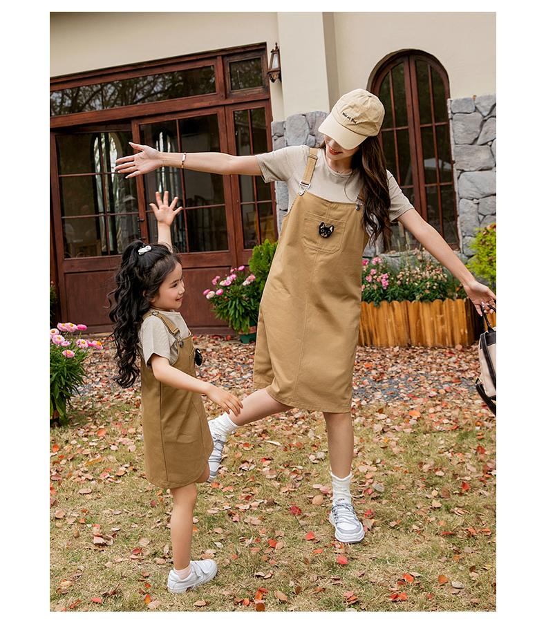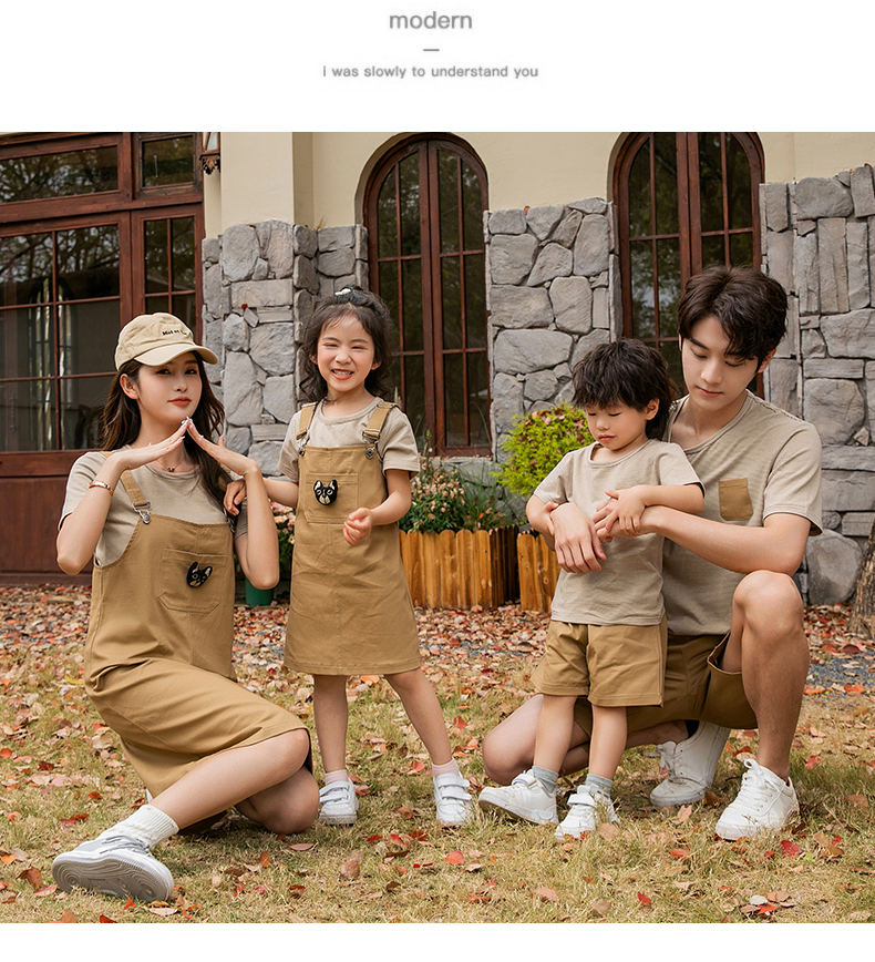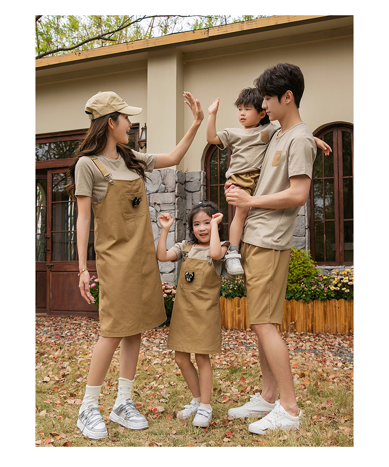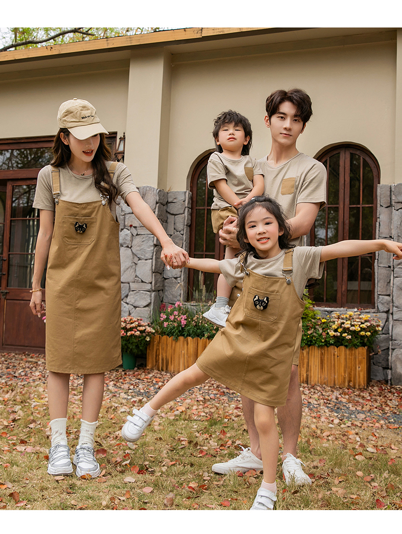 高級條紋親子裝夏季一家三口背帶套裝洋氣母子母女裝四口全家服潮
