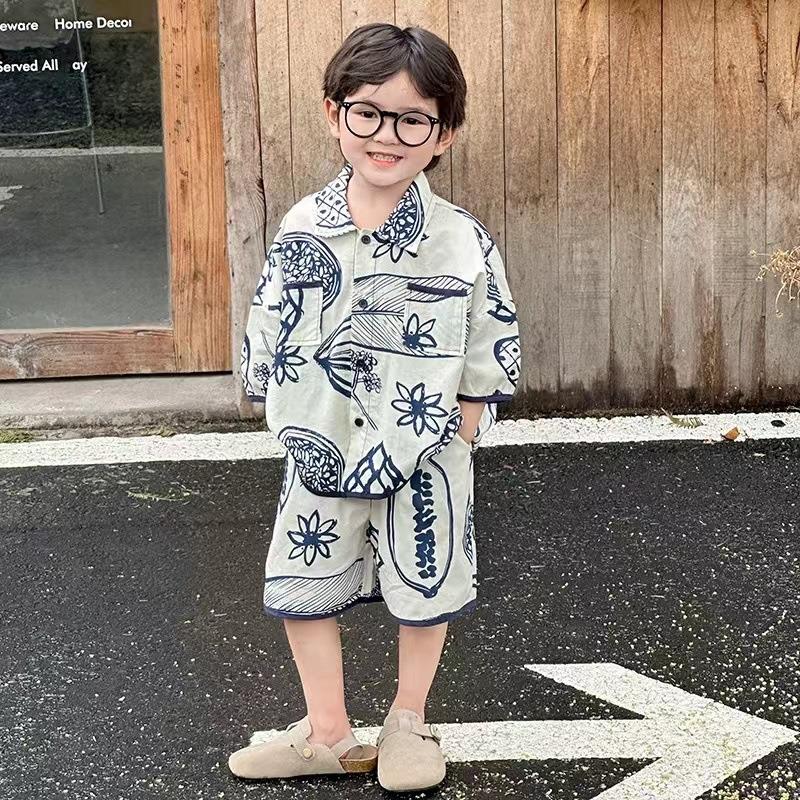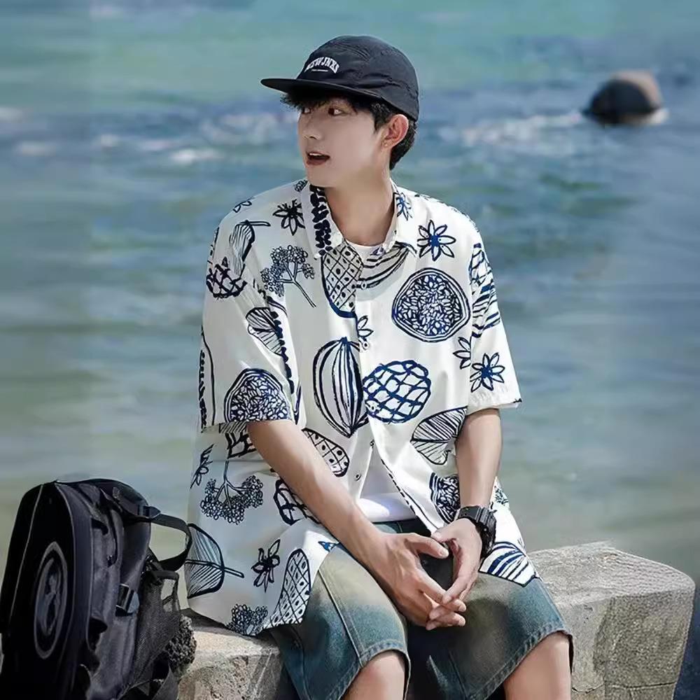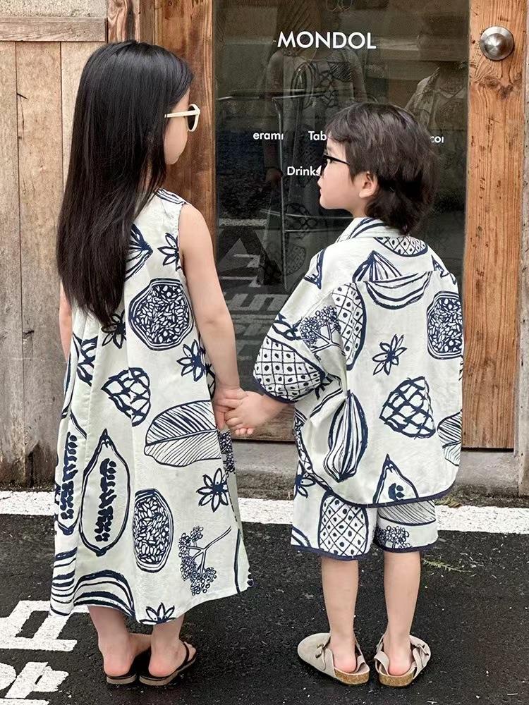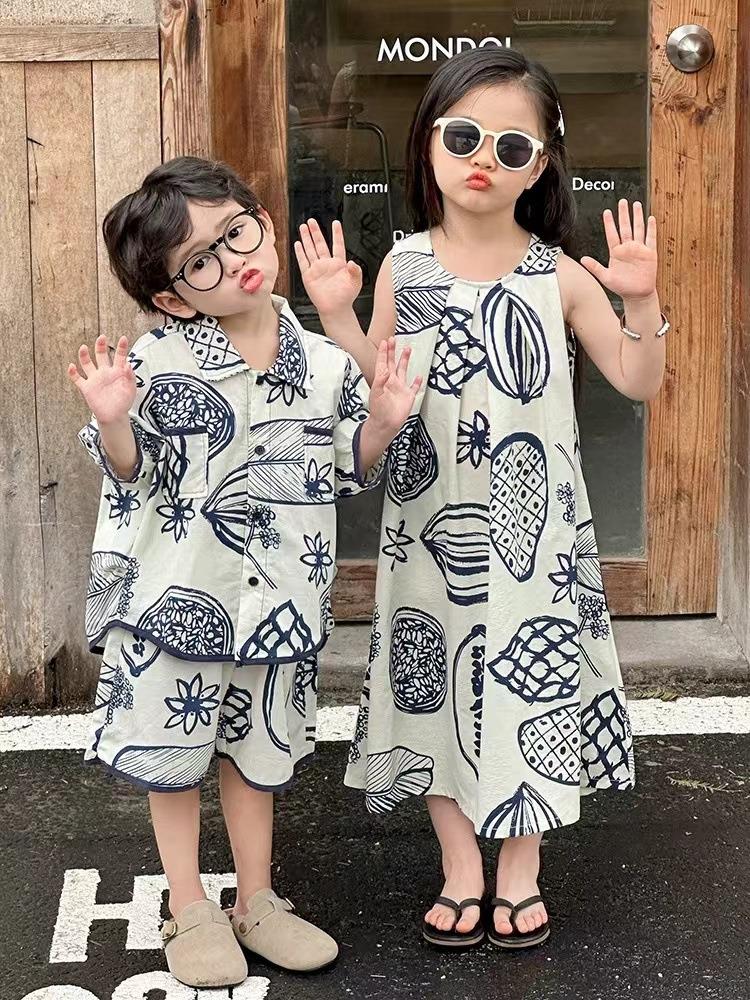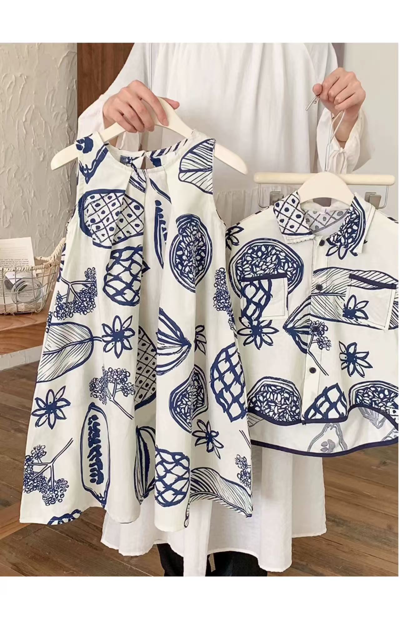 夏威夷親子裝夏裝花襯衫2025新款一家三口海邊度假母女寬松連衣裙