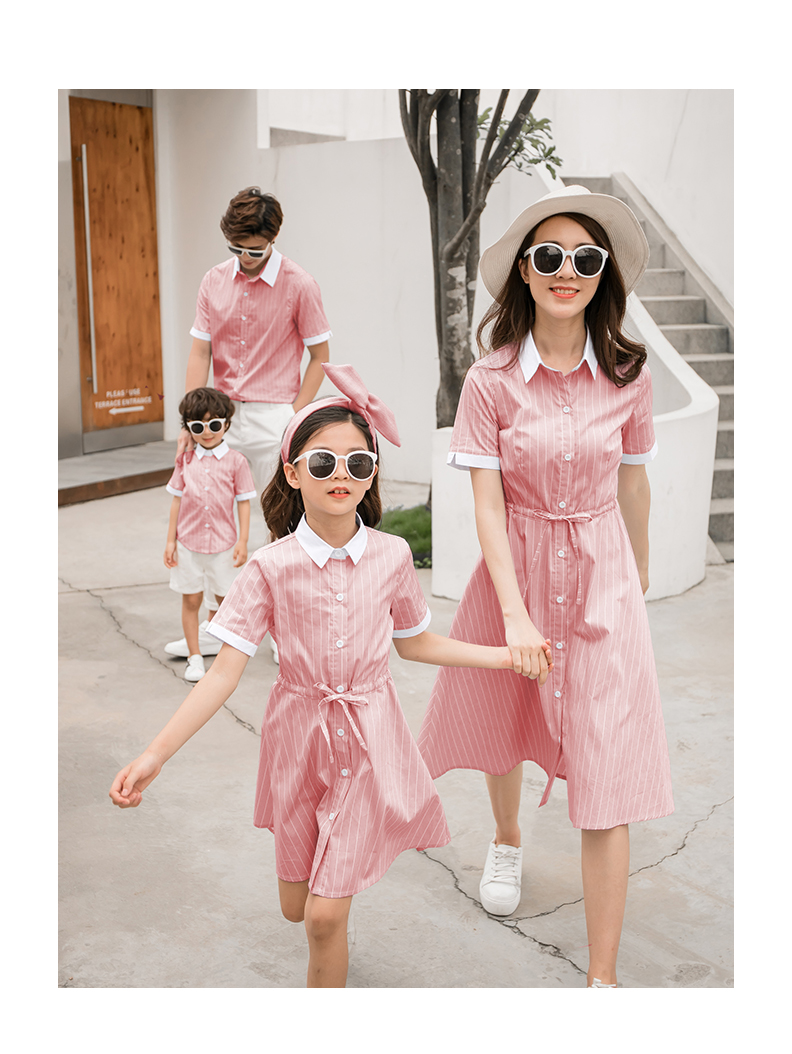 不一樣的親子裝一家三四口母子洋氣2023新款潮母女裝夏襯衫連衣裙